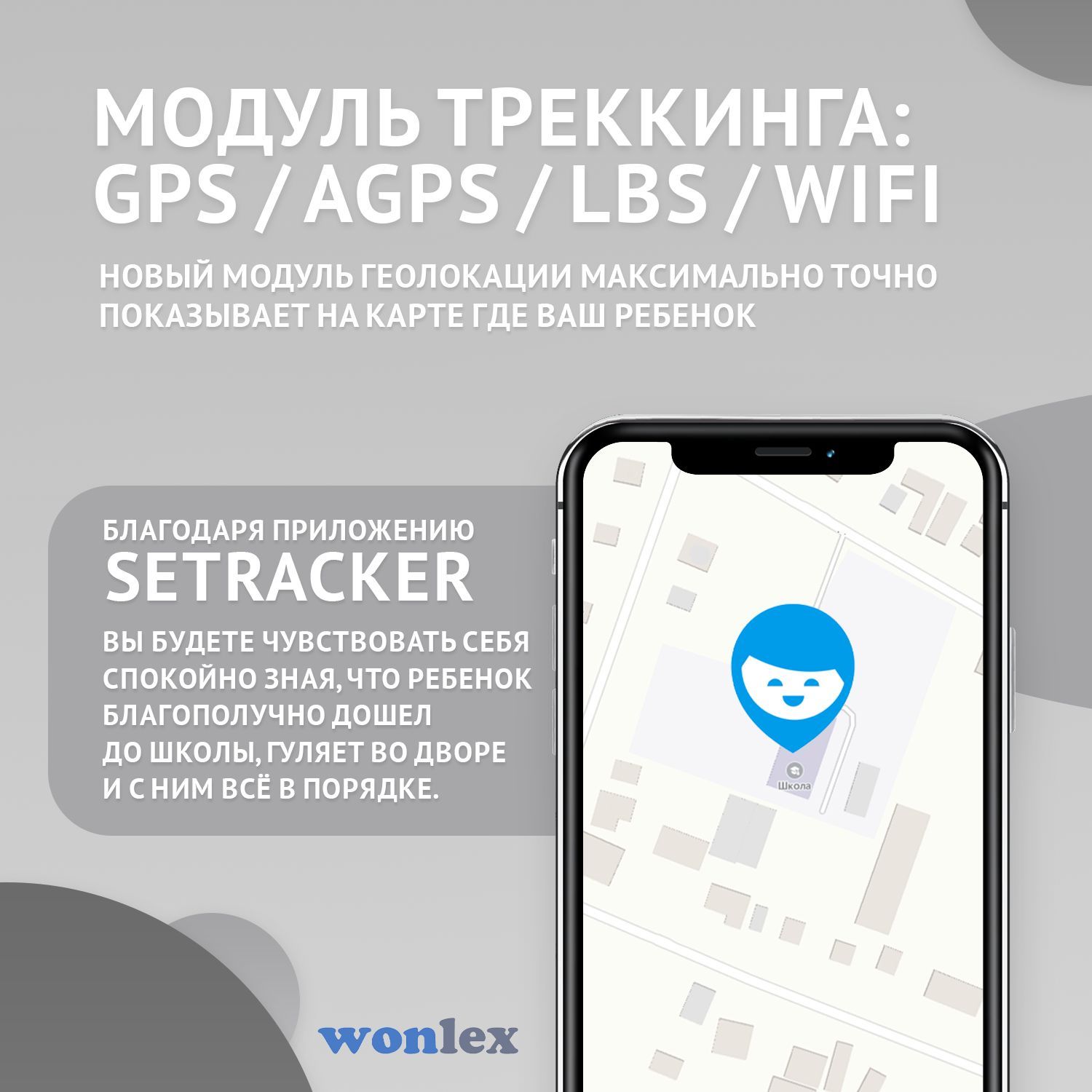 И самая главная функция, из-за которой все больше детей на улицах города носят смарт часы с GPS. В любой момент Вы видите местонахождение ребёнка с точностью до 3-х метров на карте через свой смартфон. Такая точность обеспечивается GPS+AGPS+LBS+WIFI модулями. Функция гео-зоны (дом/школа) оповестит Вас если ребёнок удалится на большее расстояние или свернёт с маршрута. Ребёнок в любой момент может связаться с Вами одним нажатием кнопки SOS, вызов будет идти на каждый из 3х внесенных телефонов, пока не дозвонится. В опасной ситуации можно включить аудио мониторинг, а через приложение совершать удаленный мониторинг по фотографиям.