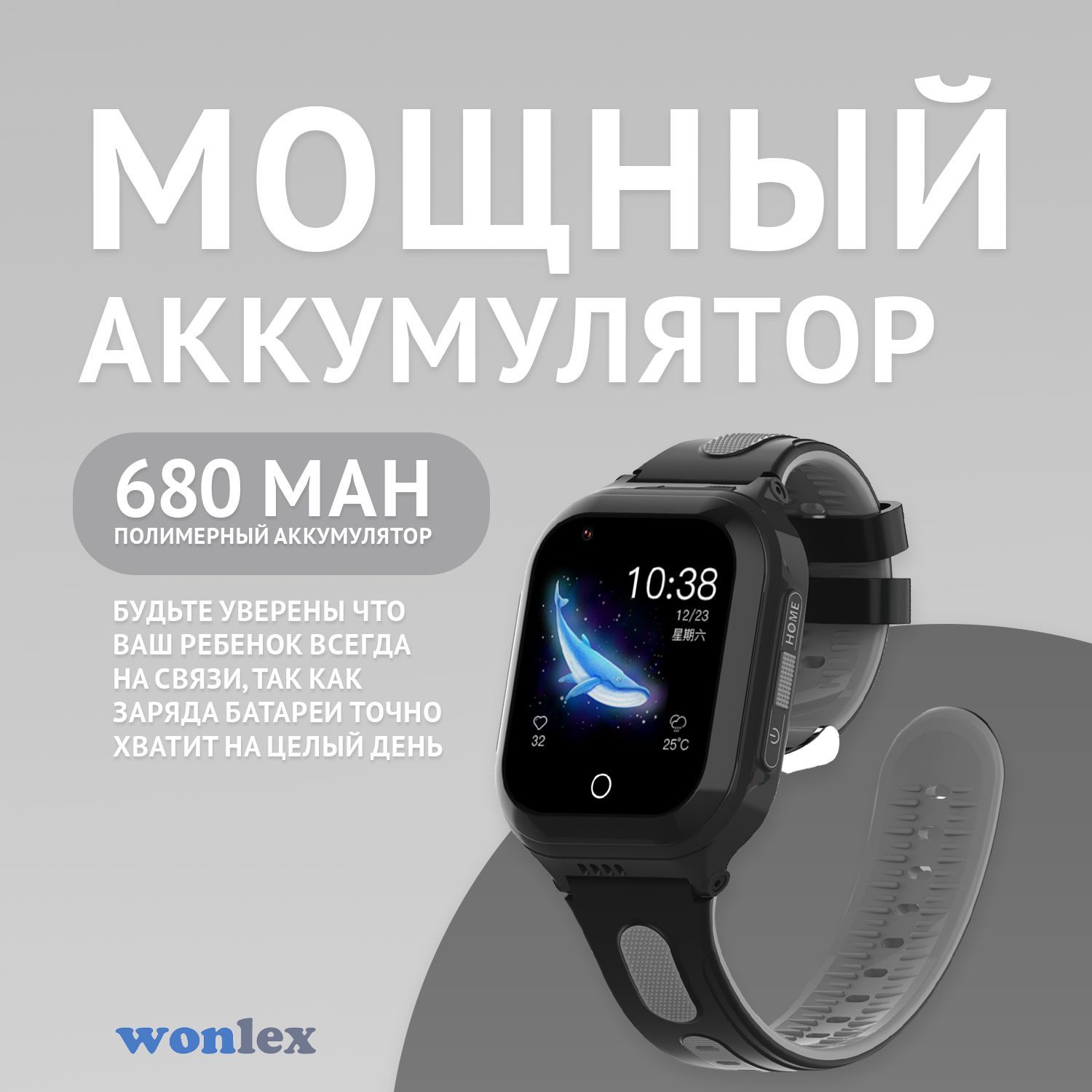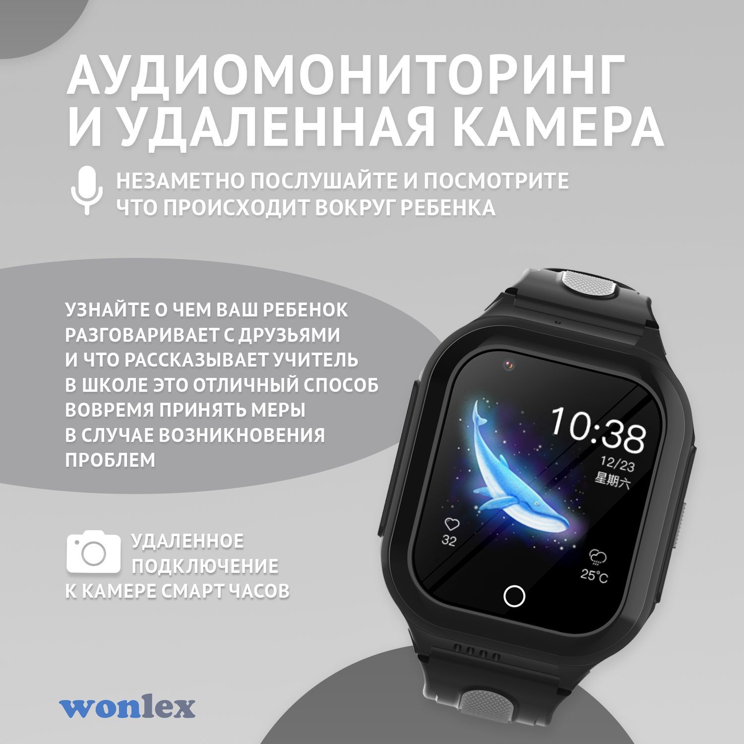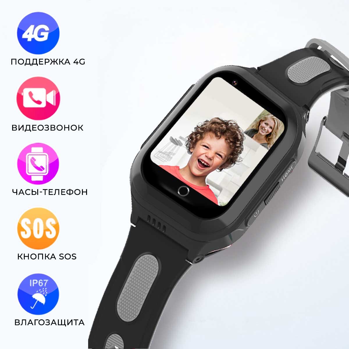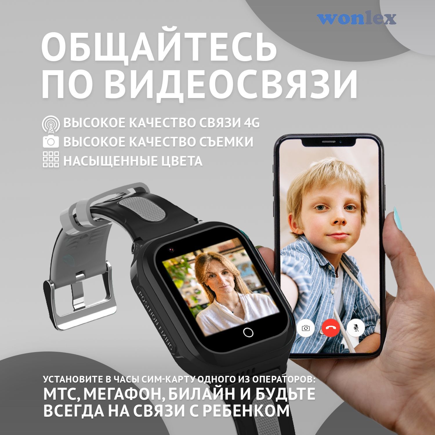 Детские смарт часы телефон с GPS и видеозвонком Wonlex KT24s, смарт часы для детей 4G, умные часы для детей с видеозвонком, смарт часы с сим картой, часы детские умные черные