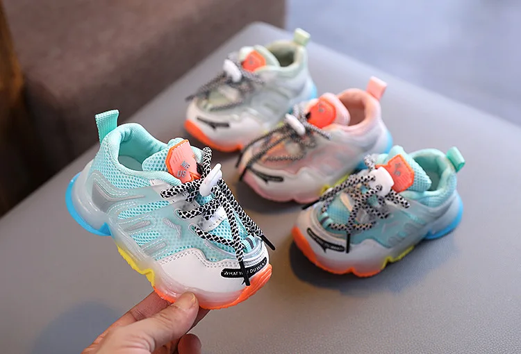 Детские сникерсы с подсветкой, детские кроссовки для маленьких девочек и мальчиков, сетчатые светящиеся спортивные кроссовки со светодиодной подсветкой, ботинки со светящейся подошвой