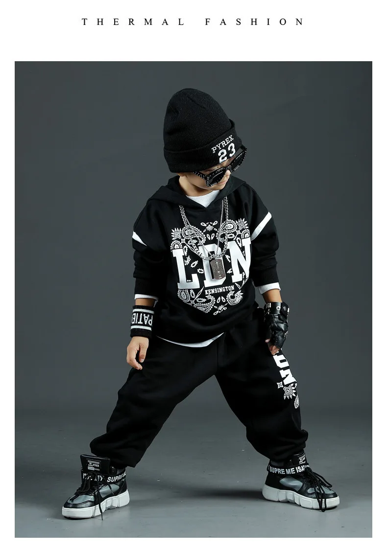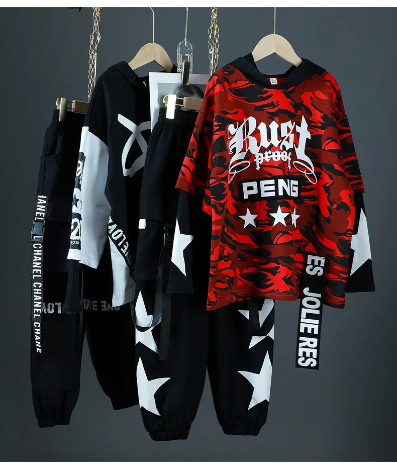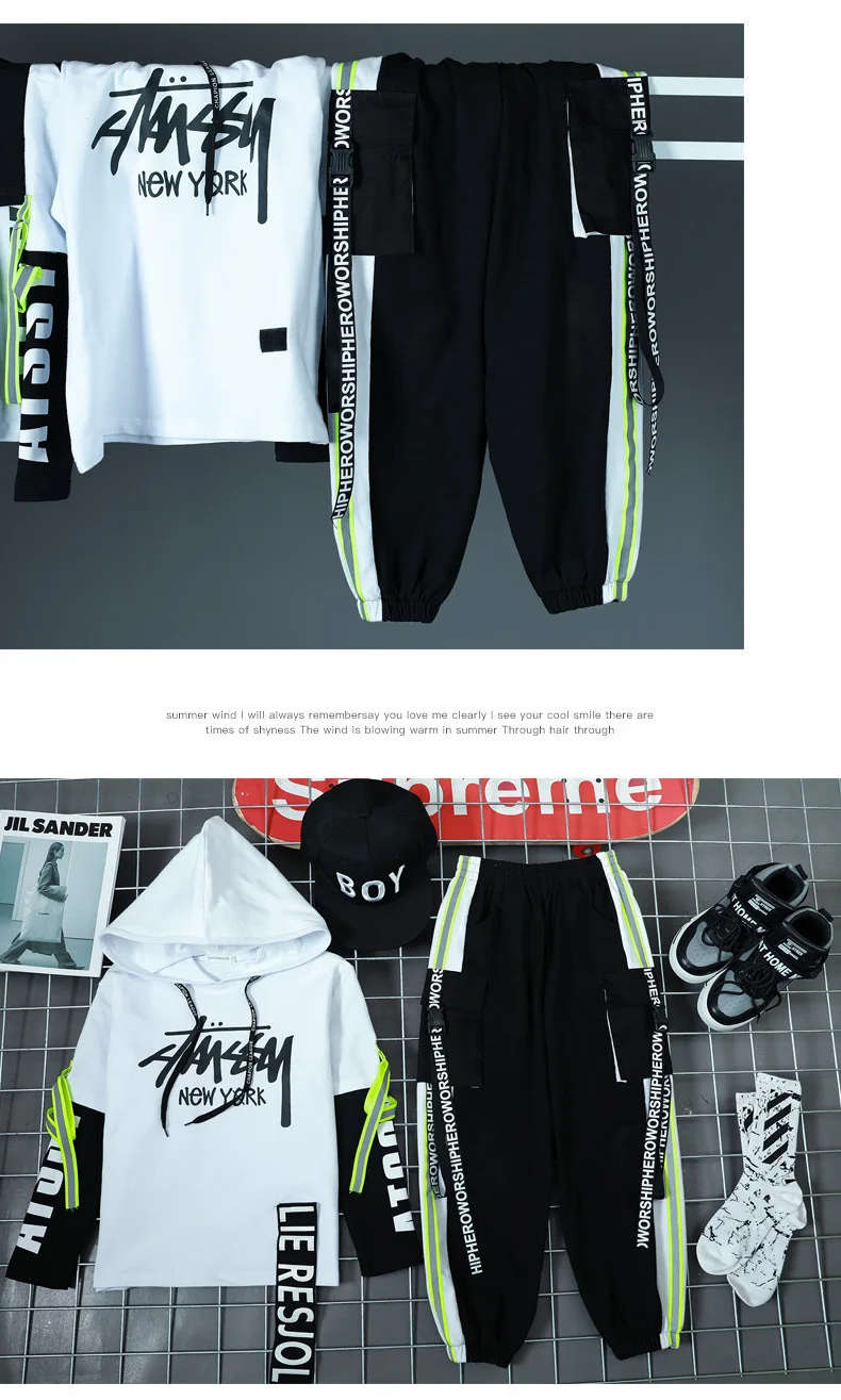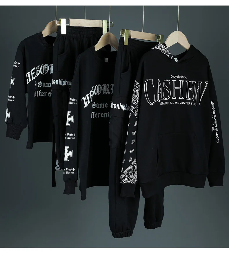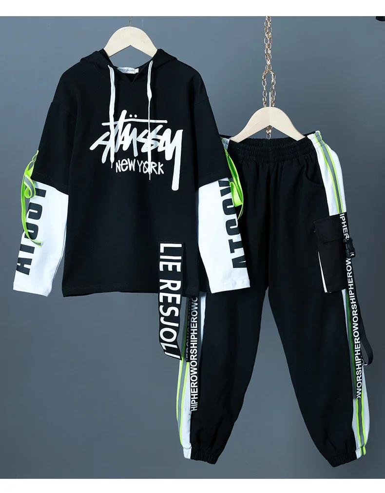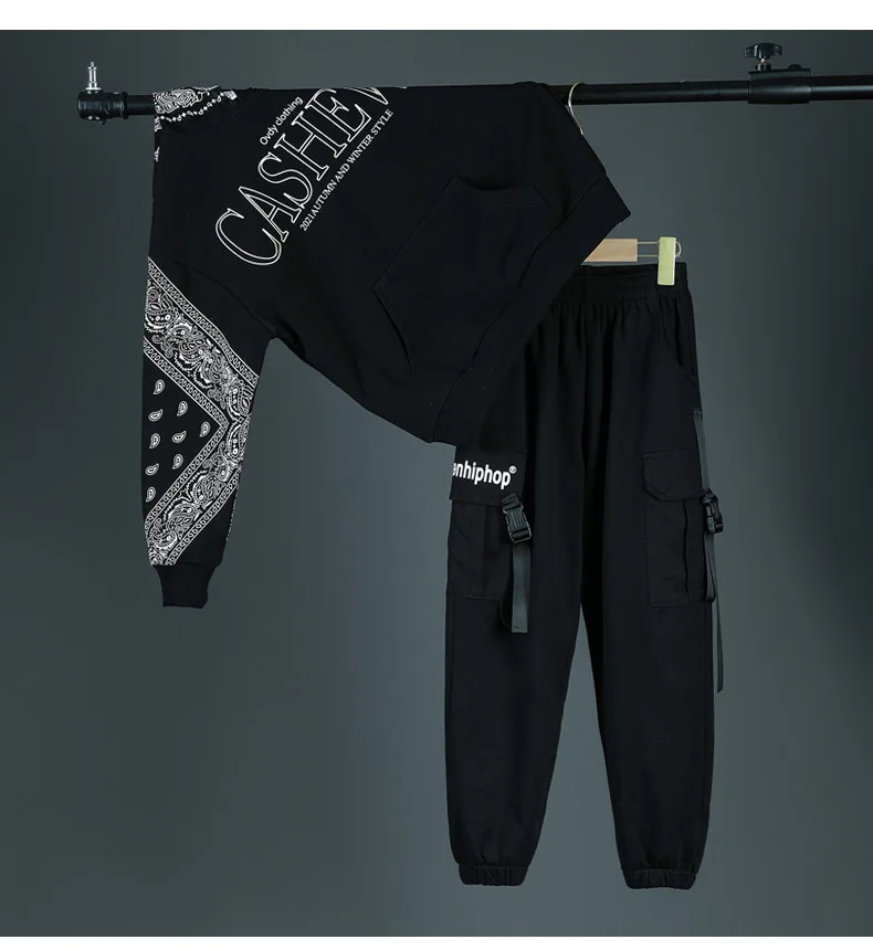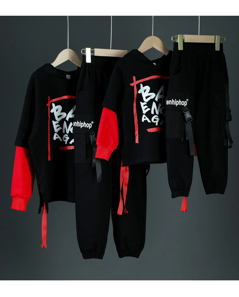 Детские спортивные комплекты, толстовка с капюшоном и штаны, уличная одежда для мальчиков и девочек, модный Свободный Повседневный свитшот в стиле хип-хоп, штаны, детский спортивный костюм