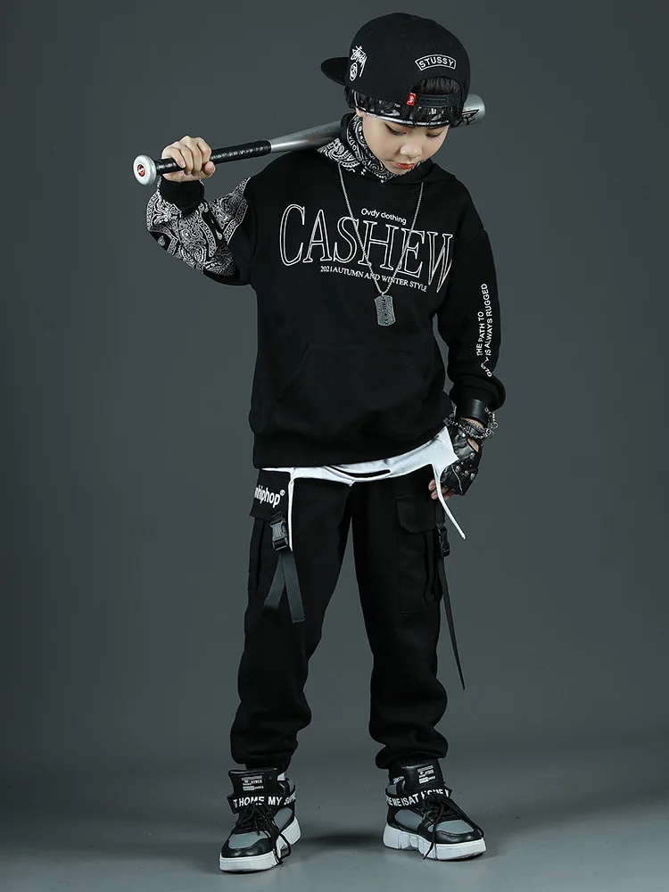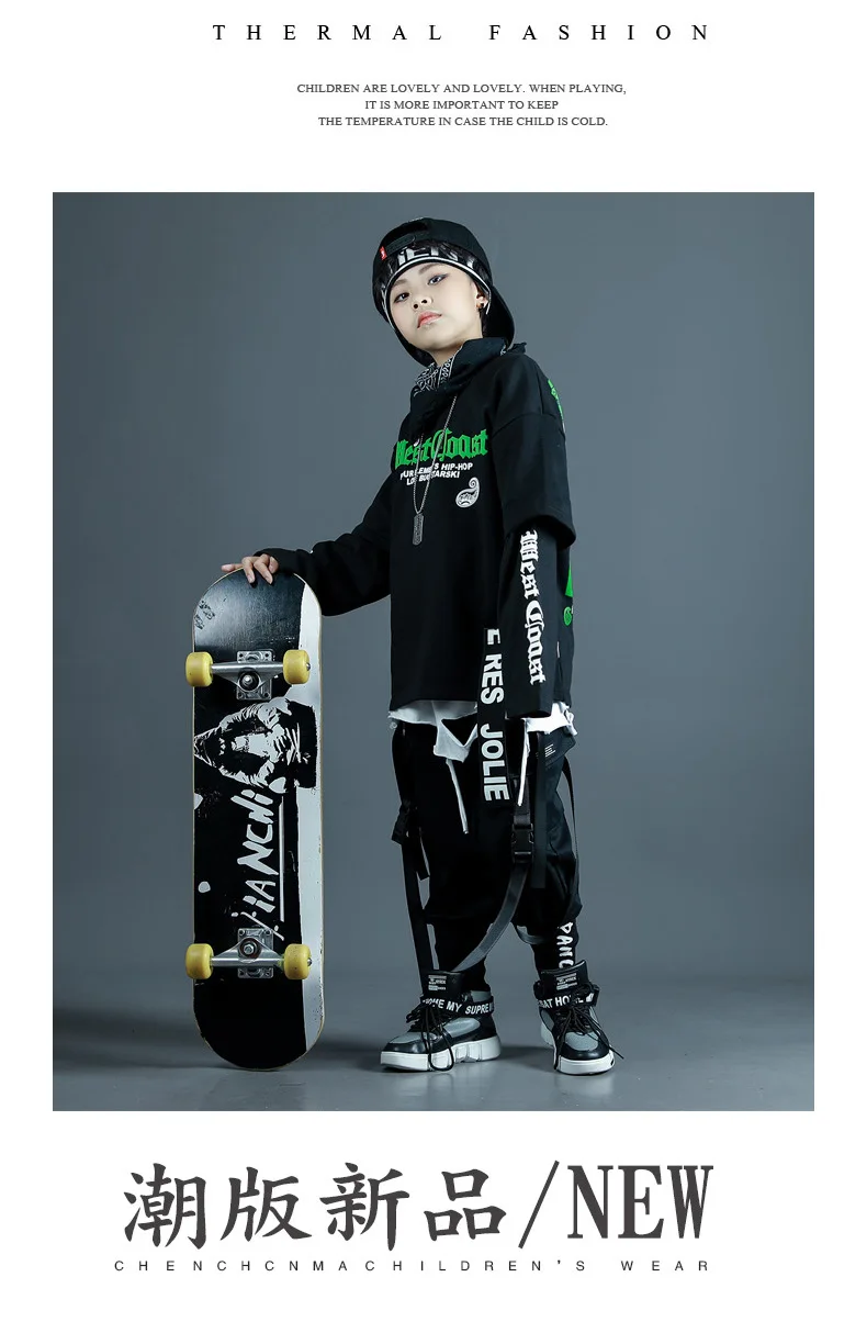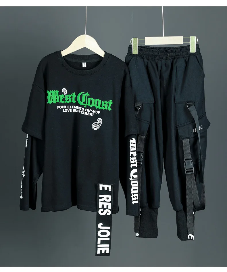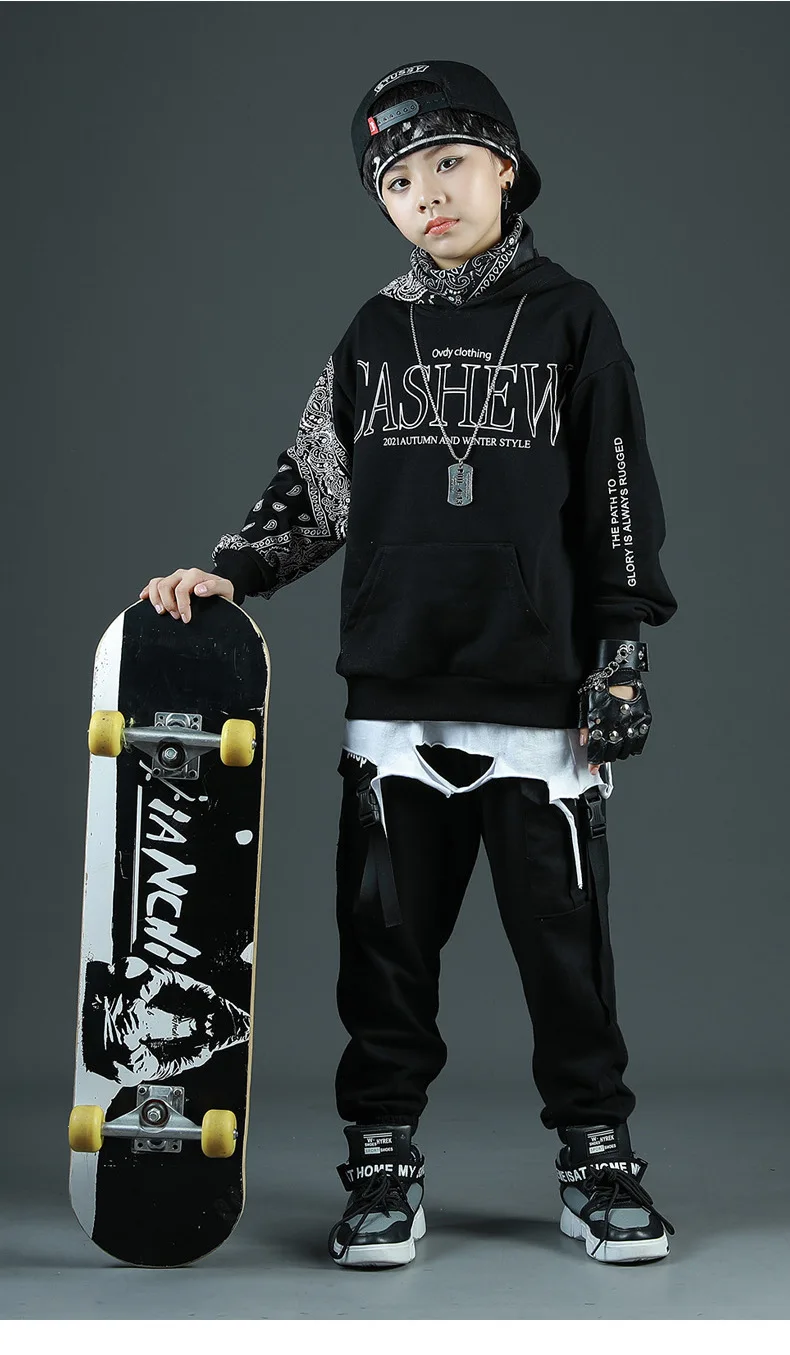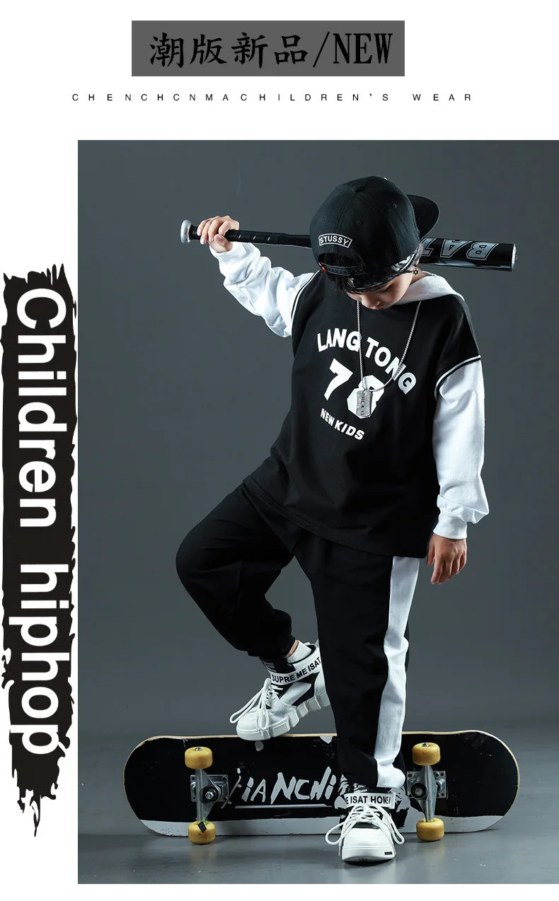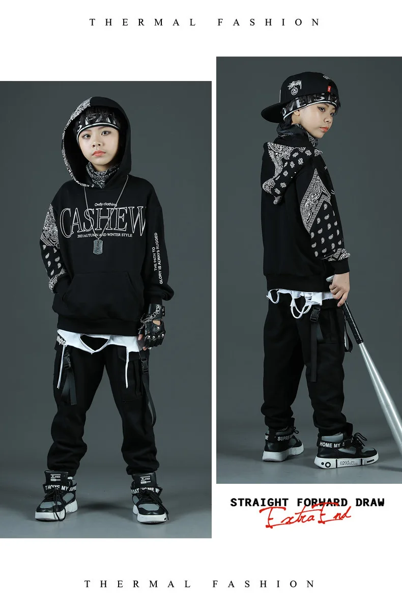 Детские спортивные комплекты, толстовка с капюшоном и штаны, уличная одежда для мальчиков и девочек, модный Свободный Повседневный свитшот в стиле хип-хоп, штаны, детский спортивный костюм