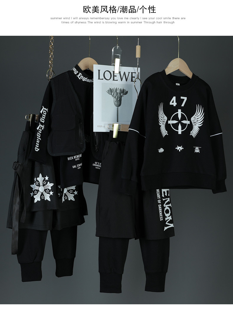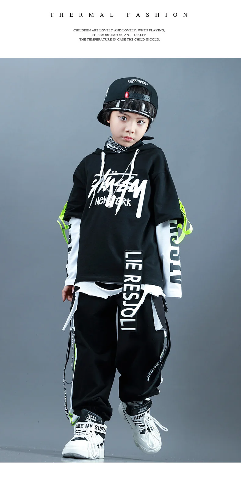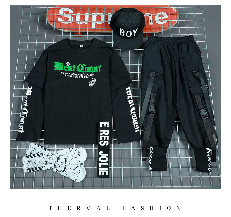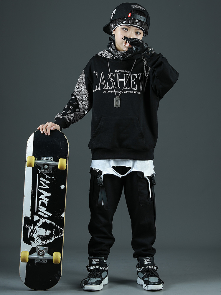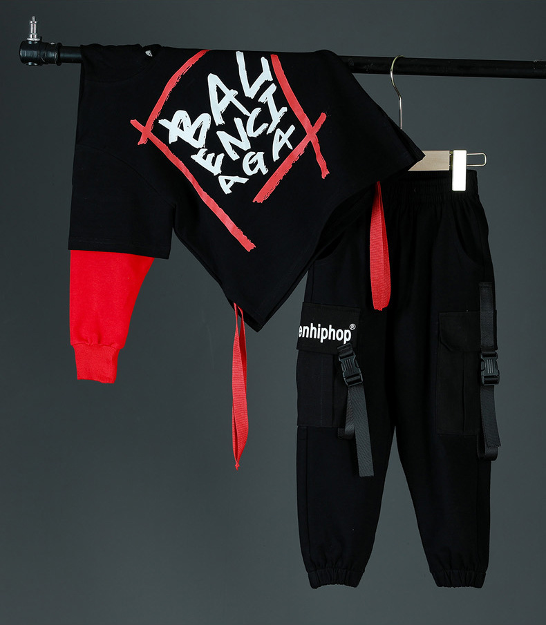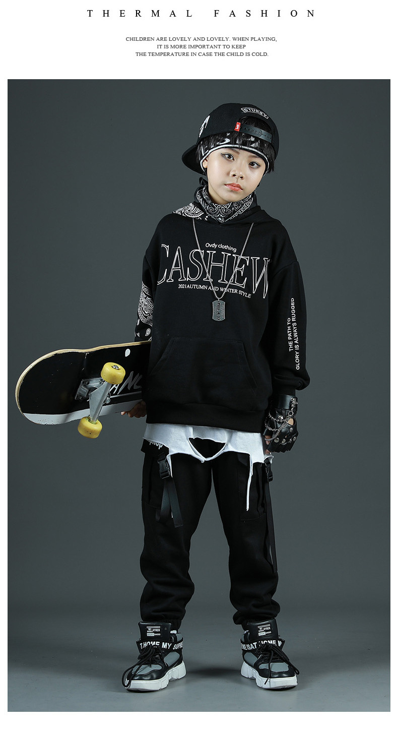 Детские спортивные комплекты, толстовка с капюшоном и штаны, уличная одежда для мальчиков и девочек, модный Свободный Повседневный свитшот в стиле хип-хоп, штаны, детский спортивный костюм