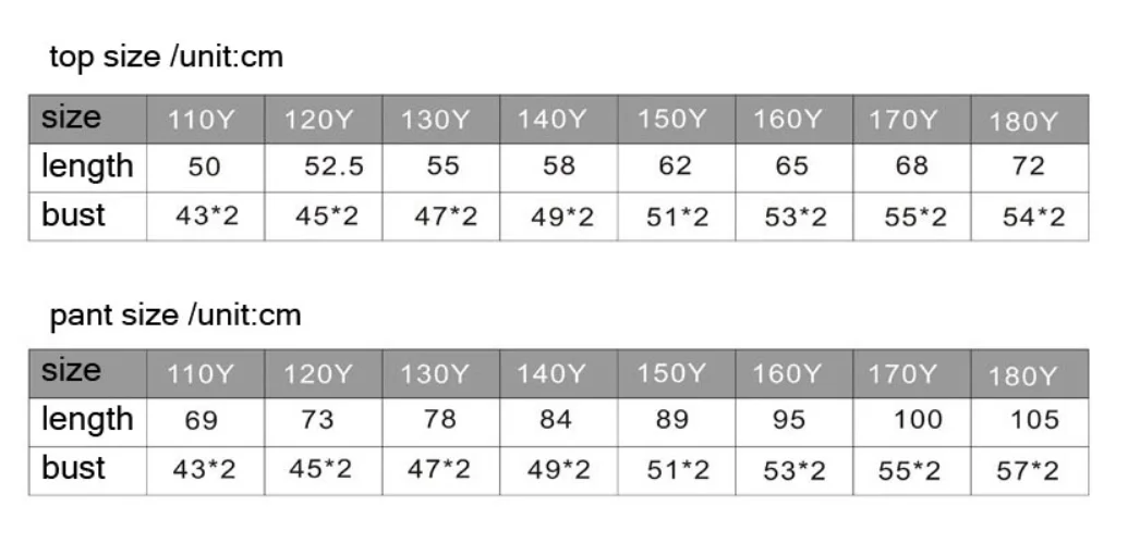 Sizes 2 110 120 130 140 150 160 170 180