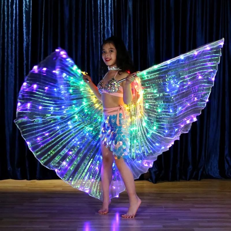 Детские Светодиодные Крылья для танца живота, Бабочка, светящиеся разноцветные флуоресцентные крылья для Хэллоуина, рождественские крылья для танца живота.