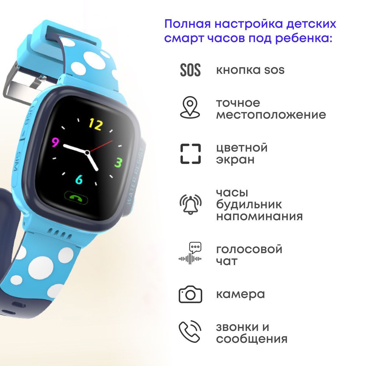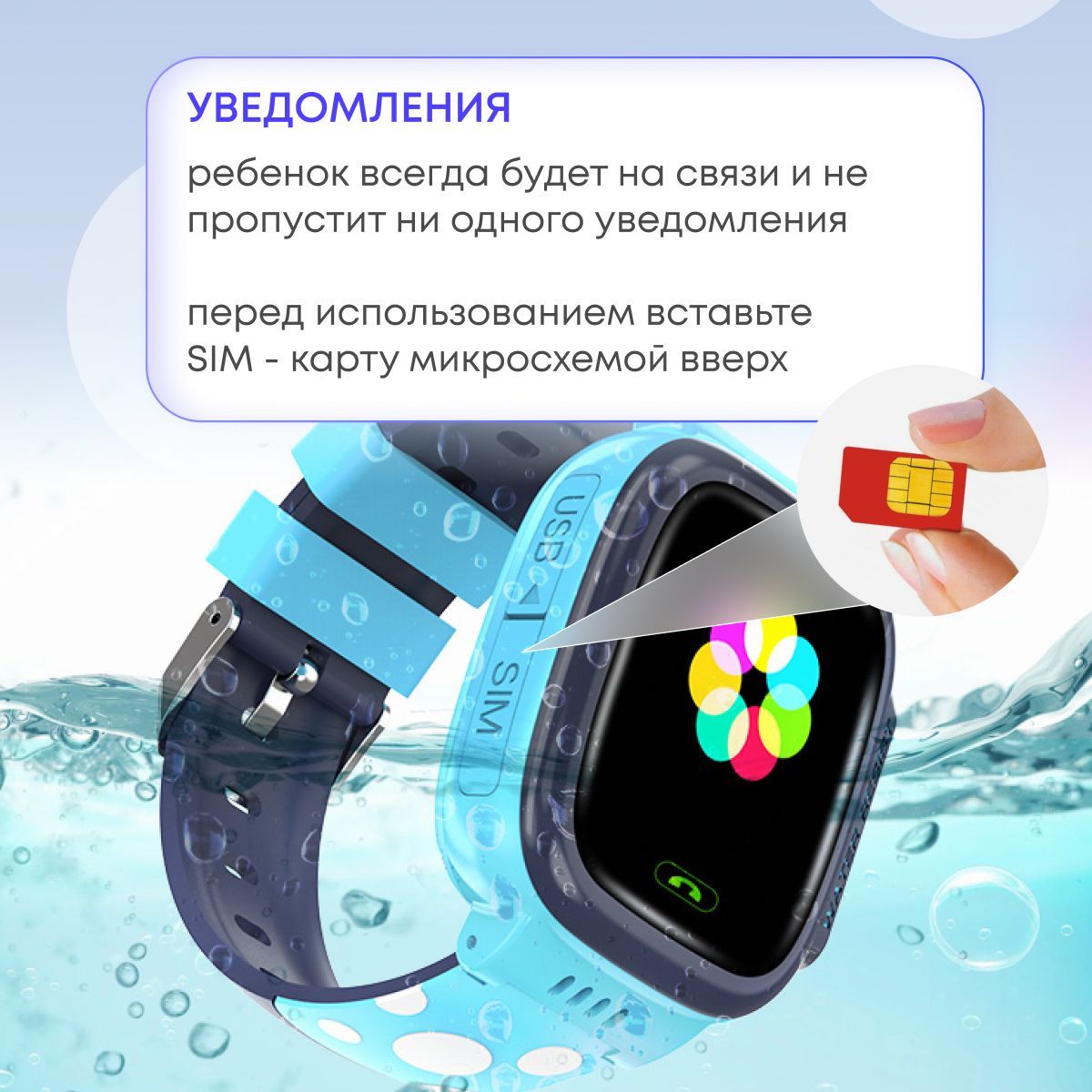 Описание: Детские умные часыВаш ребенок будет всегда на связи, а вы в любой момент сможете узнать где он и его состояние.- Поддерживают сим-карту