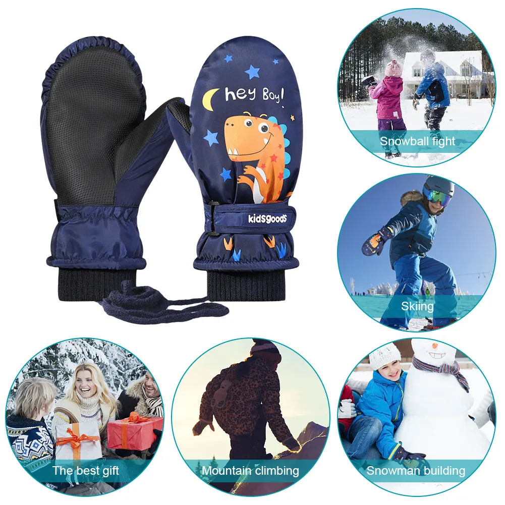 Детские теплые перчатки с противоскользящим покрытием, зимние варежки с полными пальцами, водонепроницаемая термоварежка со шнурком для альпинистской поездки