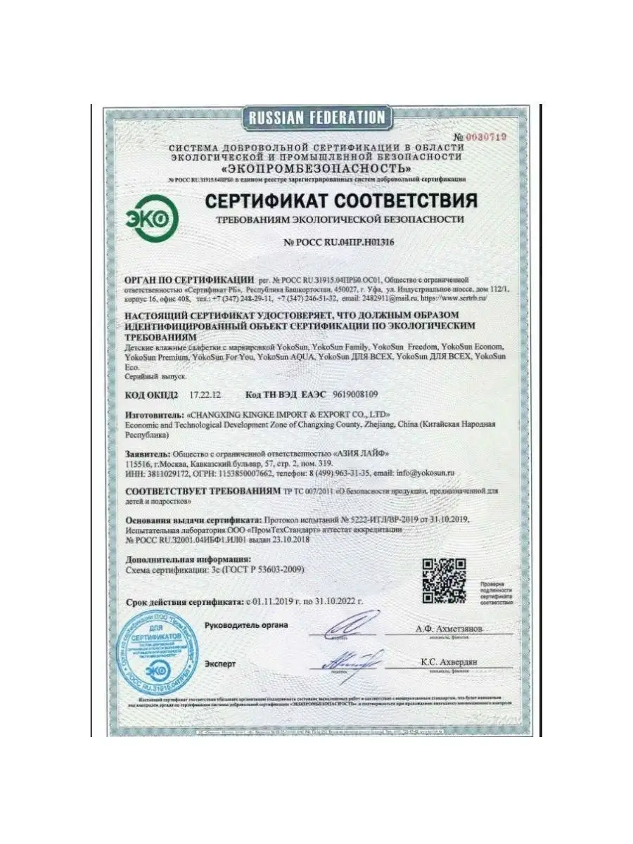 Описание: Детские влажные салфетки YokoSun специально разработаны для нежного очищения кожи малыша и одновременного эффективного ухода. Подходят для чувствительной кожи новорожденных. Имеют сертификат экологического соответствия "Эко".Делают ежедневную гигиену в любых условиях значительно комфортнее. Незаменимы дома, при смене подгузника, на прогулке, в поликлинике и путешествиях. В Мегабоксе 8 упаковок. Состав: нетканое полотно, пропитывающий лосьон. Состав пропитывающего лосьона: AQUA (Очищенная вода), Diglycerin (Диглицерин), Cetylpyridinium chloride (Цетилпиридиния хлорид), Chlorhexidine gluconate (Хлоргексидина глюконат), Ethylhexylglycerin (Этилгексилглицерин), Chamomilla recutita extract (Экстракт ромашки), Citric acid (Лимонная кислота).