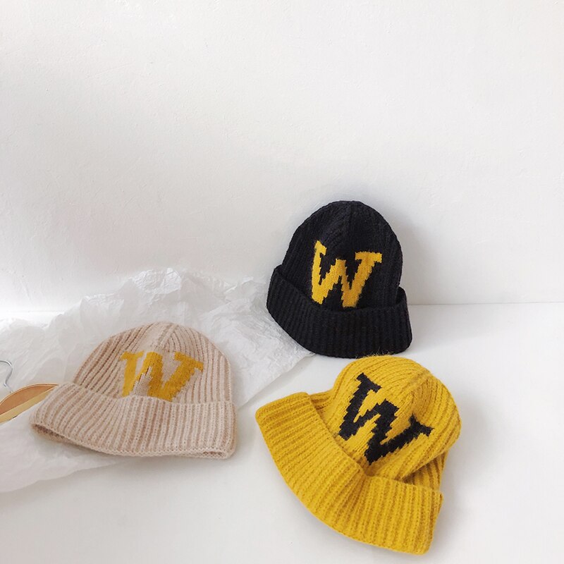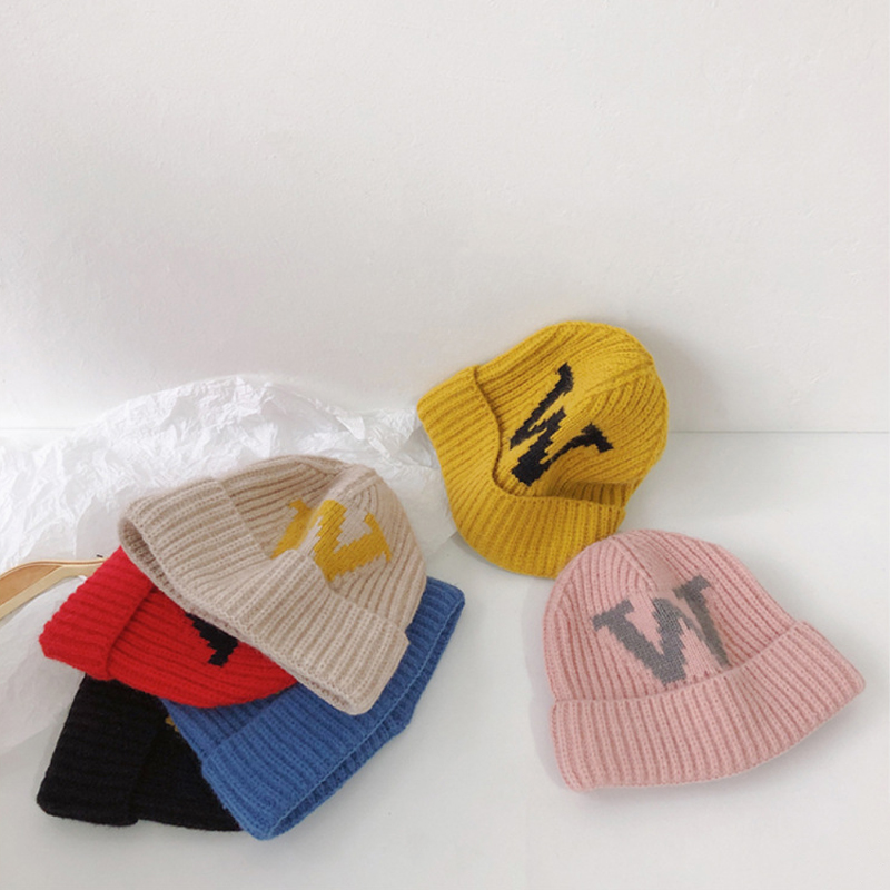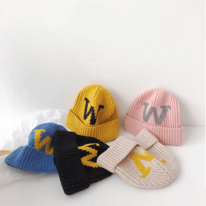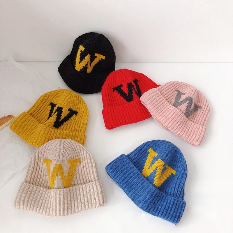 Детские вязаные шапки для мальчиков и девочек, шапки-бини с буквенным принтом для малышей, осенне-зимняя мягкая теплая повседневная детская шапка