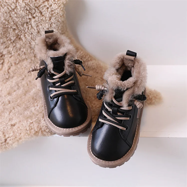 Детские зимние ботинки с шерстяным мехом, водонепроницаемые, нескользящие, размеры 21-30