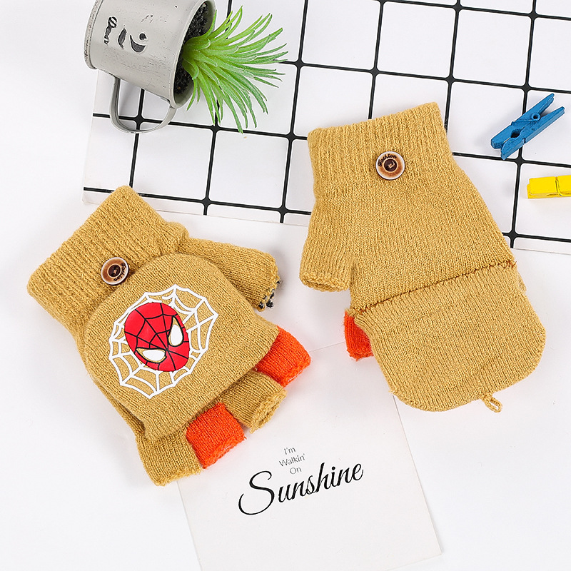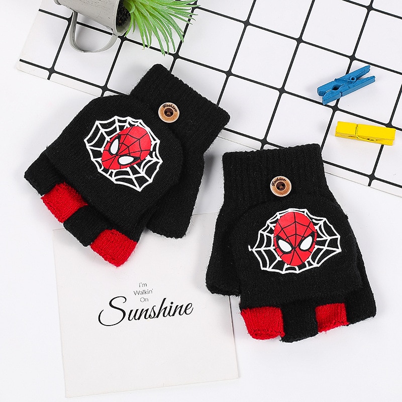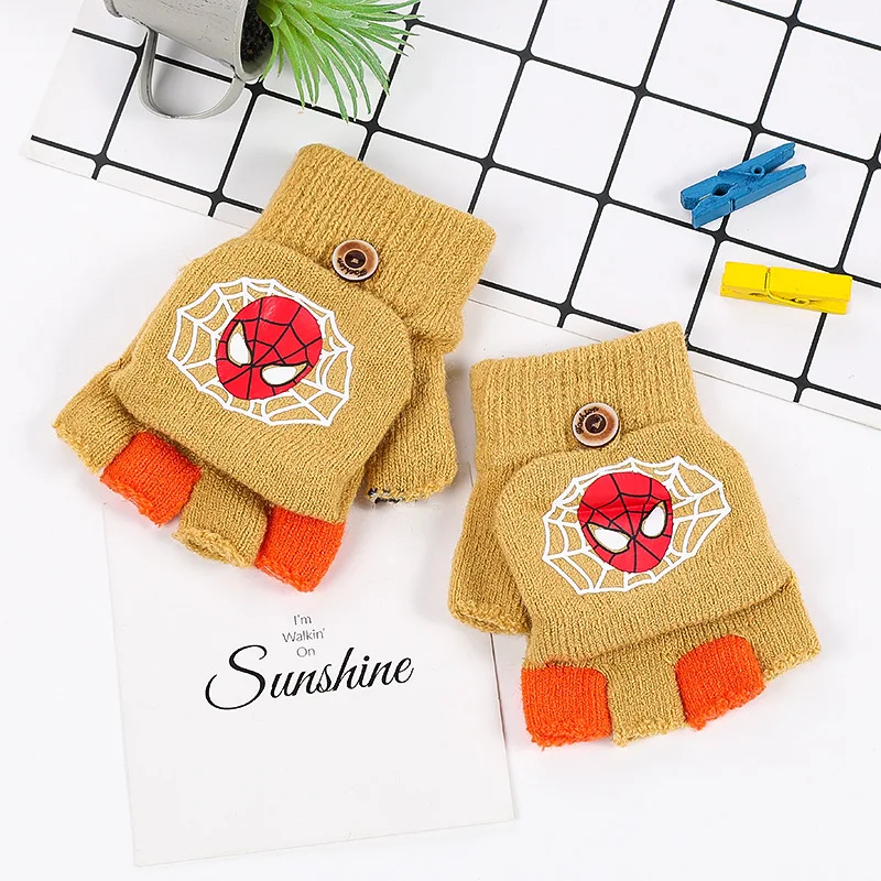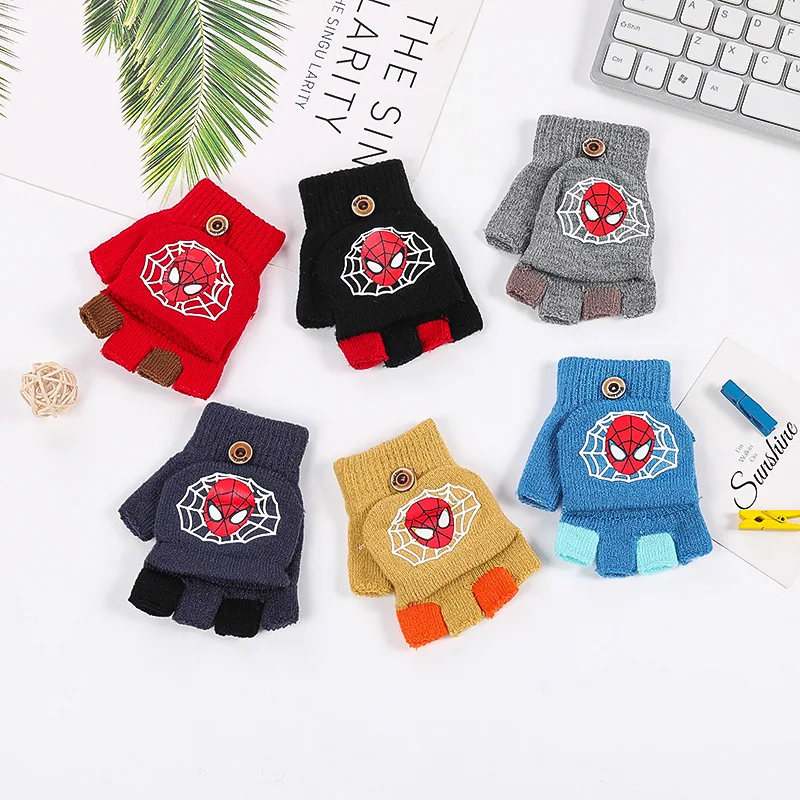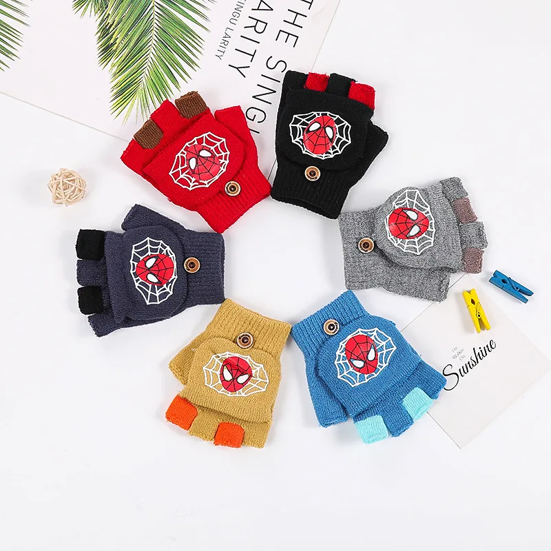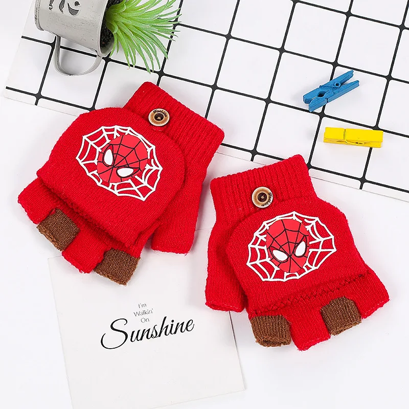 Disney, Человек-паук, мультфильм, аниме, рисунок, новинка, зимние детские перчатки, теплые, половина пальца, детские перчатки для мальчиков и девочек, рождественские подарки