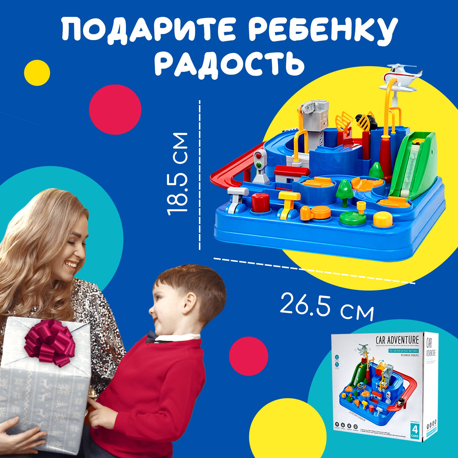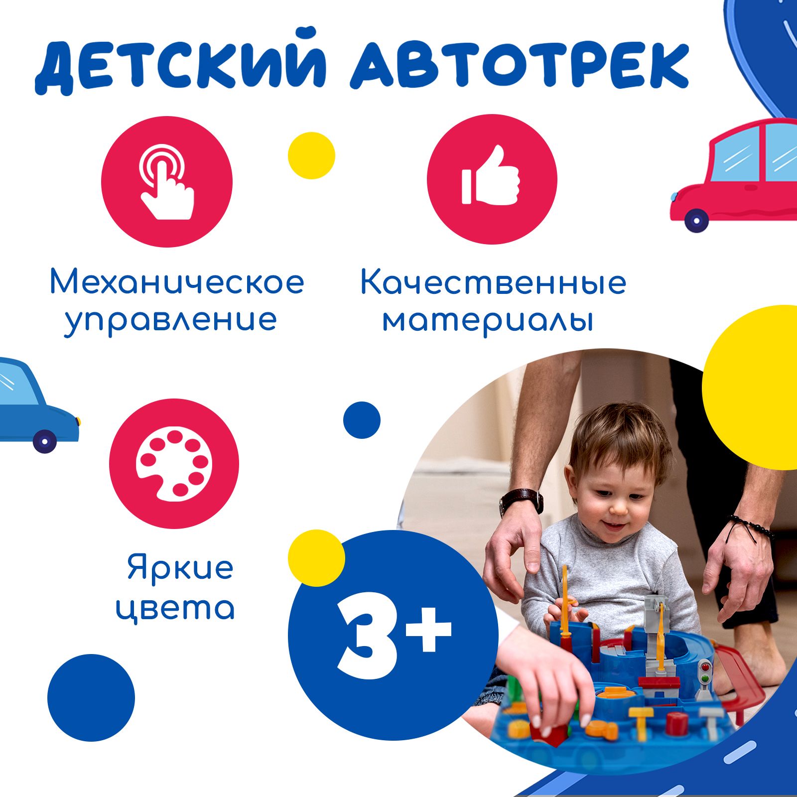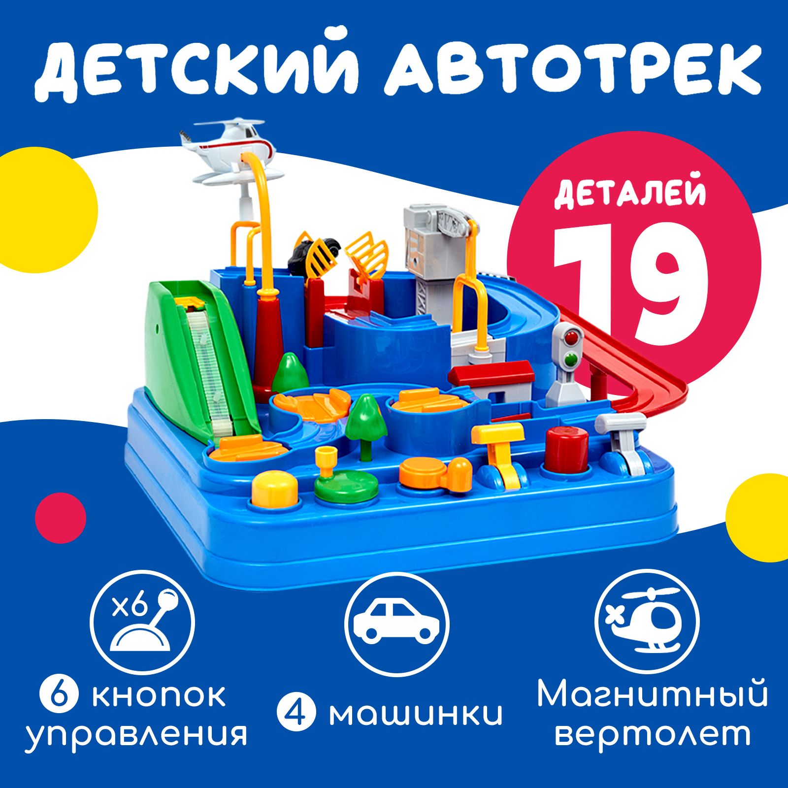 Детский автотрек / Игрушечный интерактивный развивающий "Город машин" с механическим управлением
