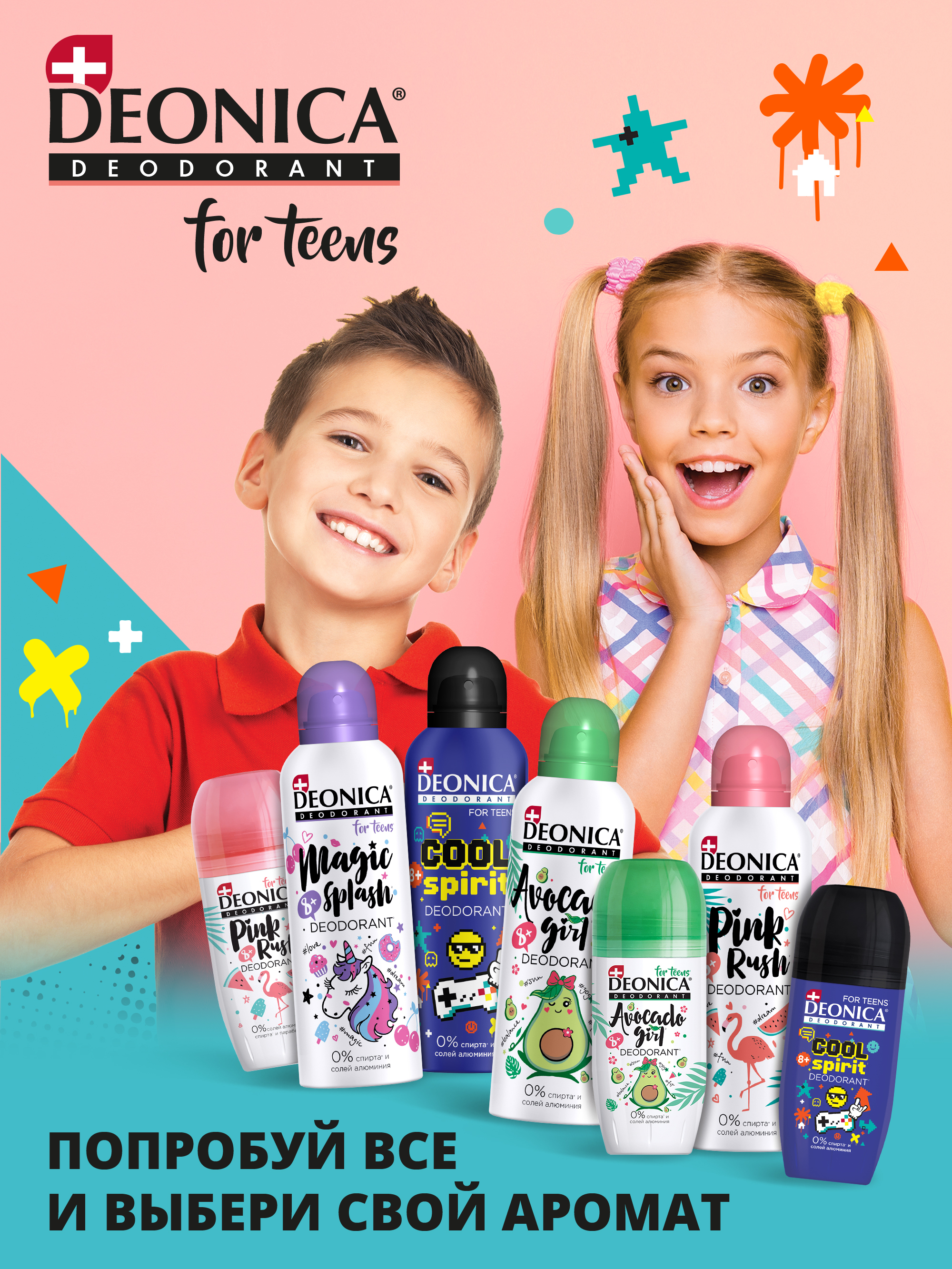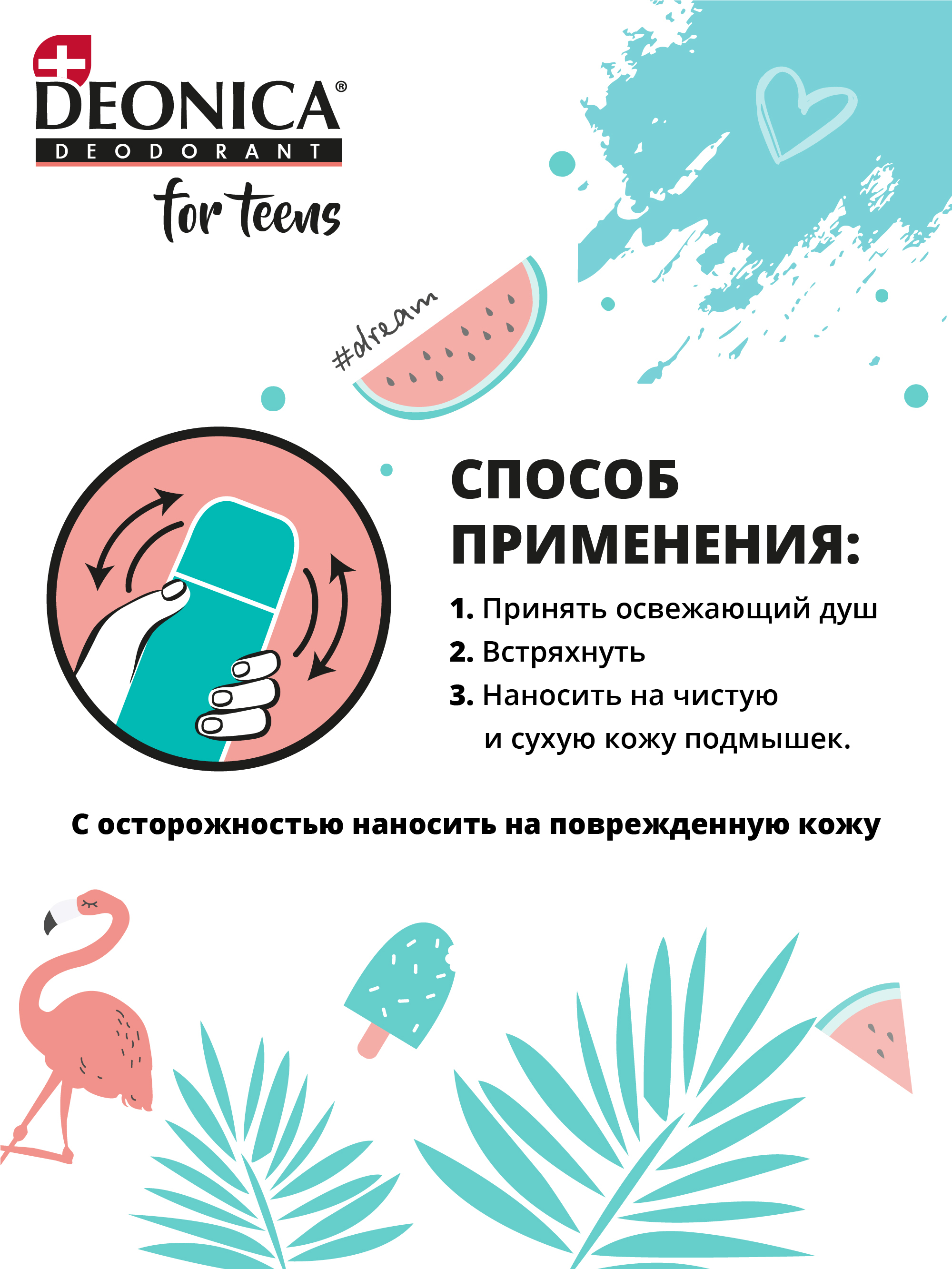 Описание: Текст при отключенной в браузере загрузке изображенийС заботой о нежной коже!Чудесный аромат и защита от пота и запаха с 8 лет.Текст при отключенной в браузере загрузке изображенийКомфортно!Забудь о неприятном запахе на весь день и задумывайся только о главном! Например о том как подготовиться к контрольной или как не забыть выученное вчера стихотворение.Текст при отключенной в браузере загрузке изображенийБезопасно!Дезодорант для детей и подростков с 8 лет содержит только натуральные компоненты, он не блокирует поры и надежно защищает от пота и запаха.Текст при отключенной в браузере загрузке изображенийНадежно!Бережная формула дезодоранта не содержит вредных веществ. Дезодорант деликатно воздействует на детскую кожу, защищает и ухаживает за ней.Текст при отключенной в браузере загрузке изображенийПопробуй их все!И выбери тот, что отражает твой стиль и твои желания!