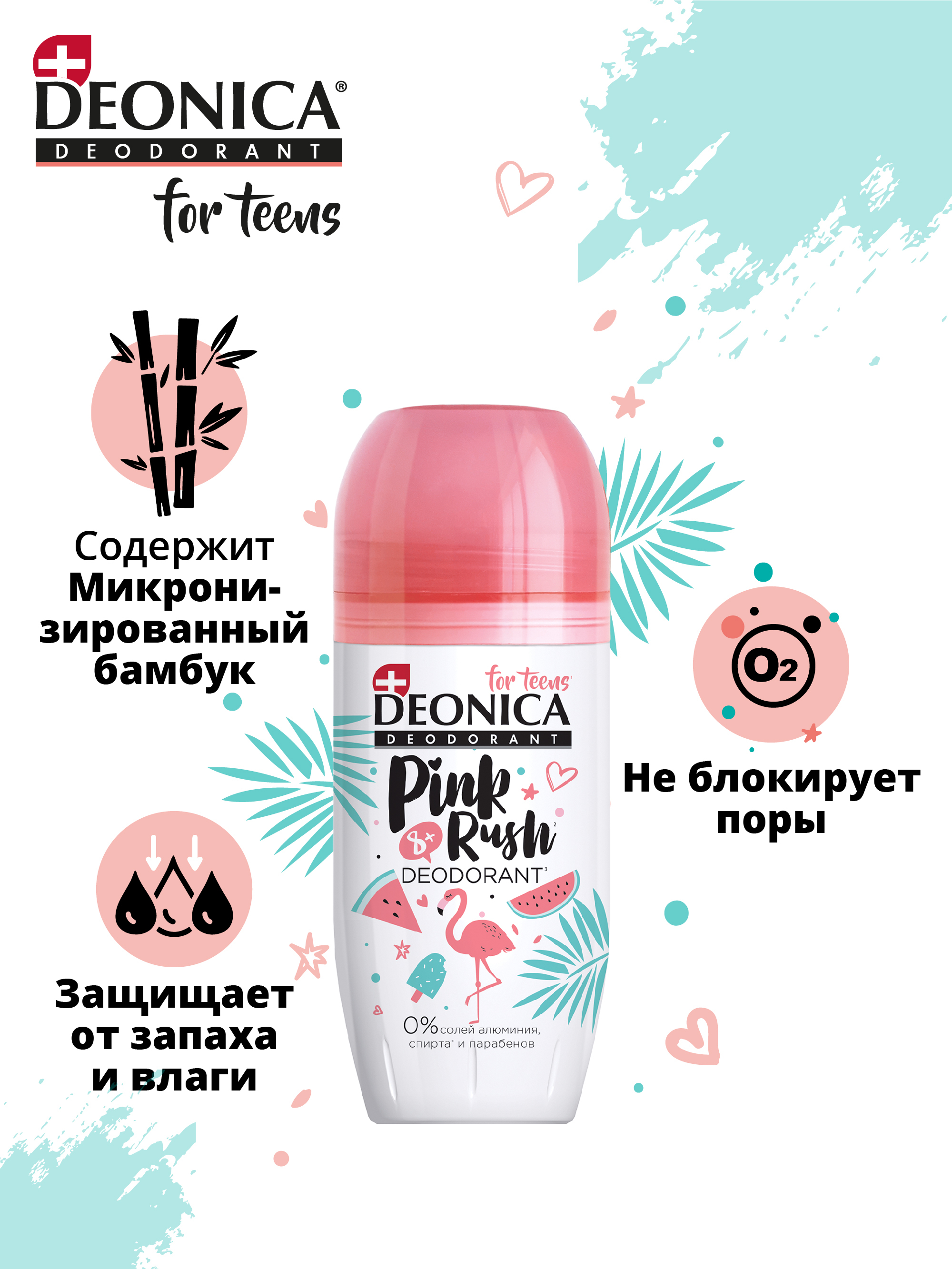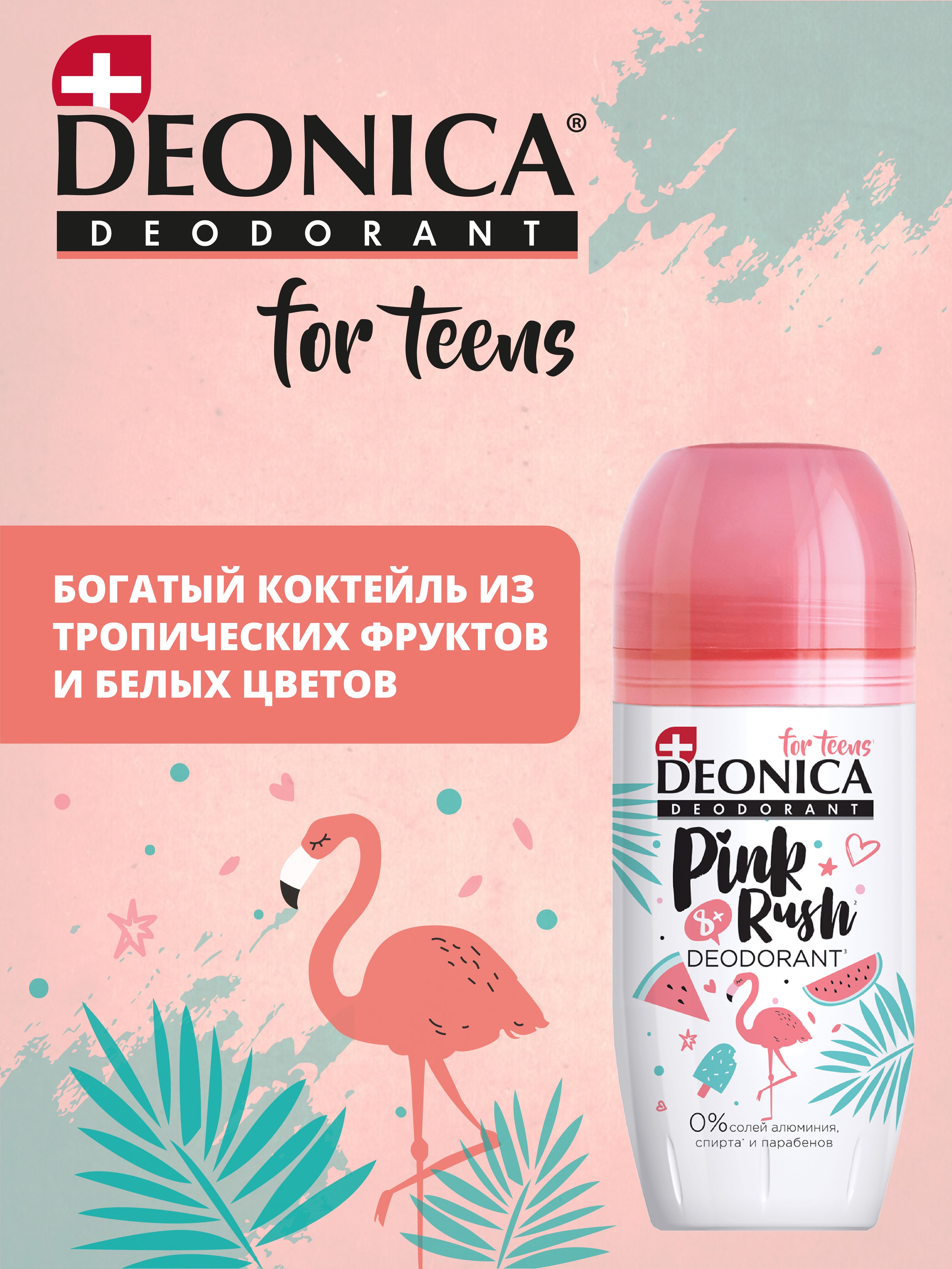 Детский дезодорант для девочек Деоника for teens Pink rush, шариковый - 50 мл