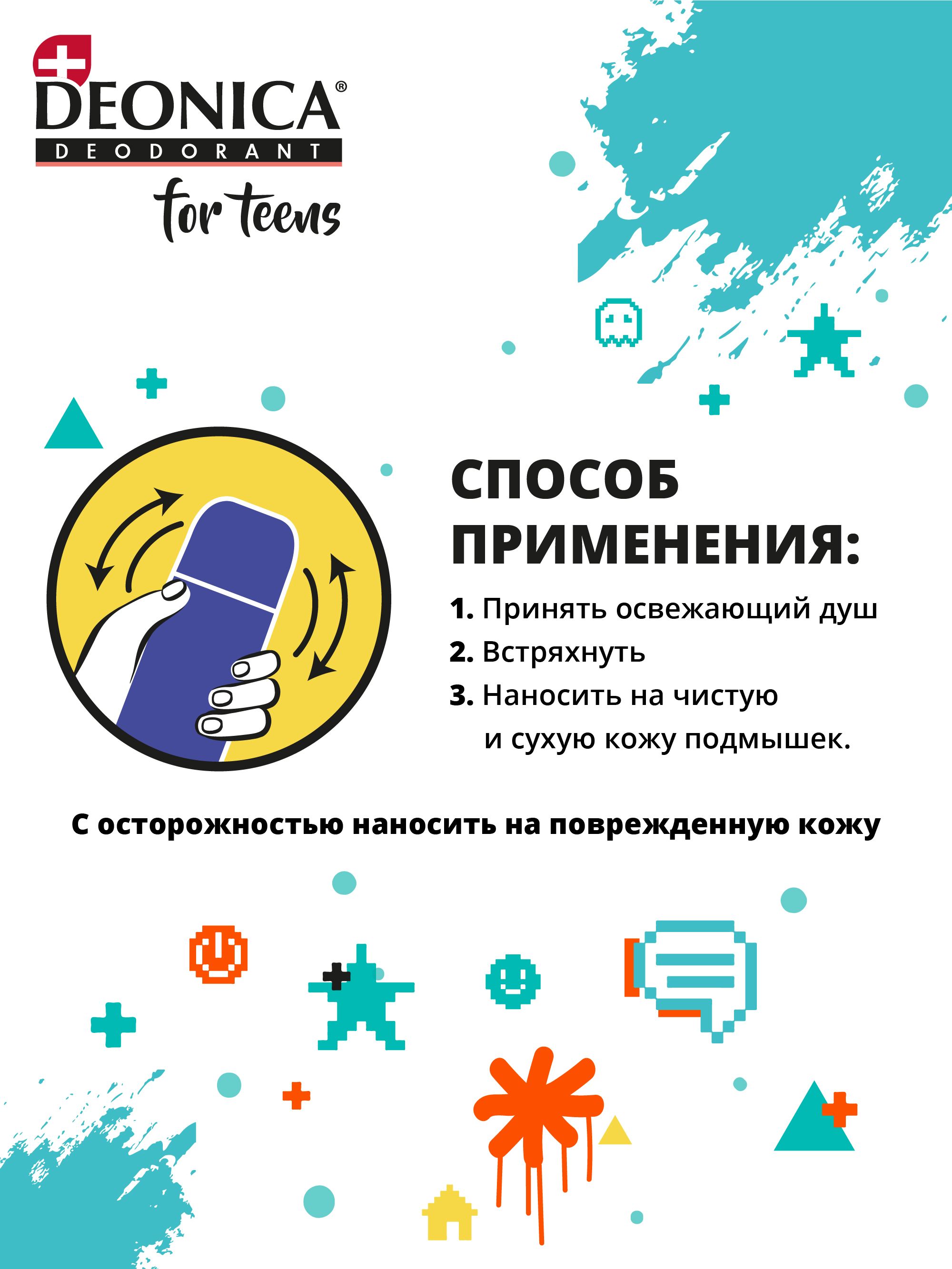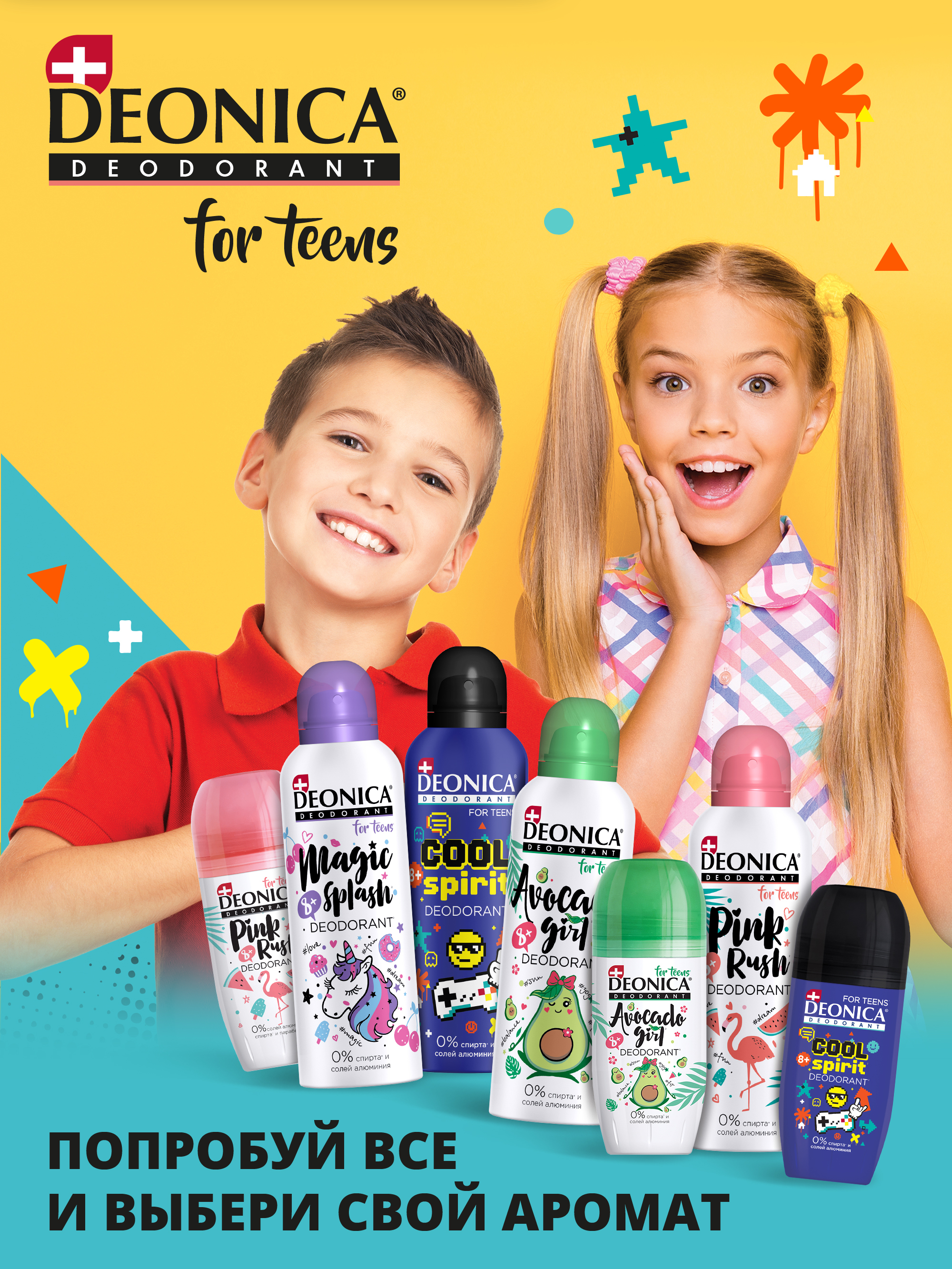 Описание: Текст при отключенной в браузере загрузке изображенийТвой стиль - твои правила!Будь уверен, что новая футболка или рубашка будут сидеть великолепно, а аромат дезодоранта останется с тобой даже после физкультуры в школе! Текст при отключенной в браузере загрузке изображенийНадежно!В течение дня можно заниматься своими делами: учиться, кататься на роликах или велосипеде и совершенно не думать о неприятном запахе. Текст при отключенной в браузере загрузке изображенийЭффективно!Безопасный дезодорант не оставит тебя наедине с потом. Ему можно поручить защиту от пота и неприятного запаха!Текст при отключенной в браузере загрузке изображенийБезопасно!Безопасную формулу оценит твоя мама. Ты можешь не заморачиваться, а мама точно знает что нужно купить!Текст при отключенной в браузере загрузке изображенийВыбери лучшее!Попробуй и выбери свой формат! И да прибудет с тобой защита от Deonica!