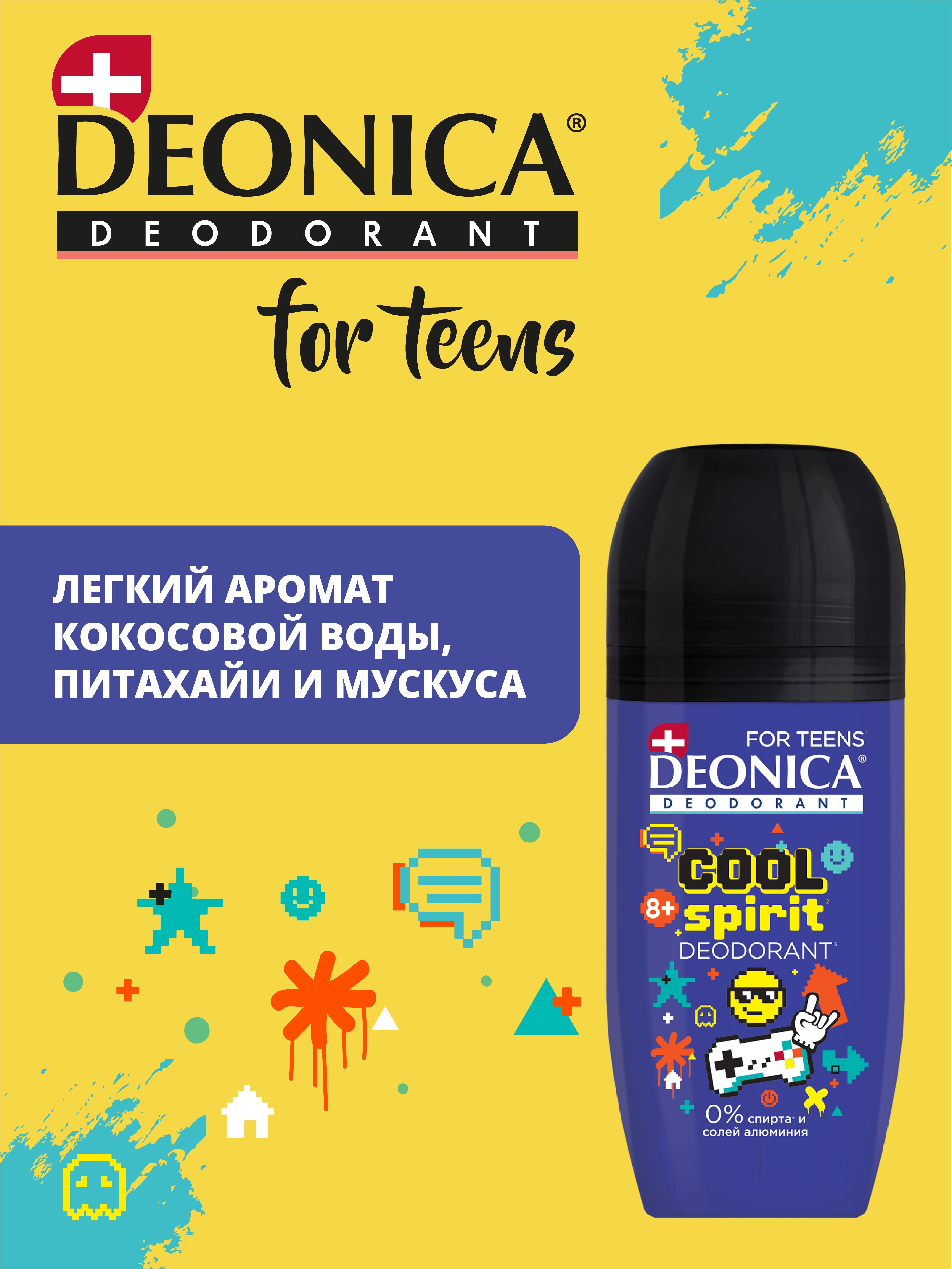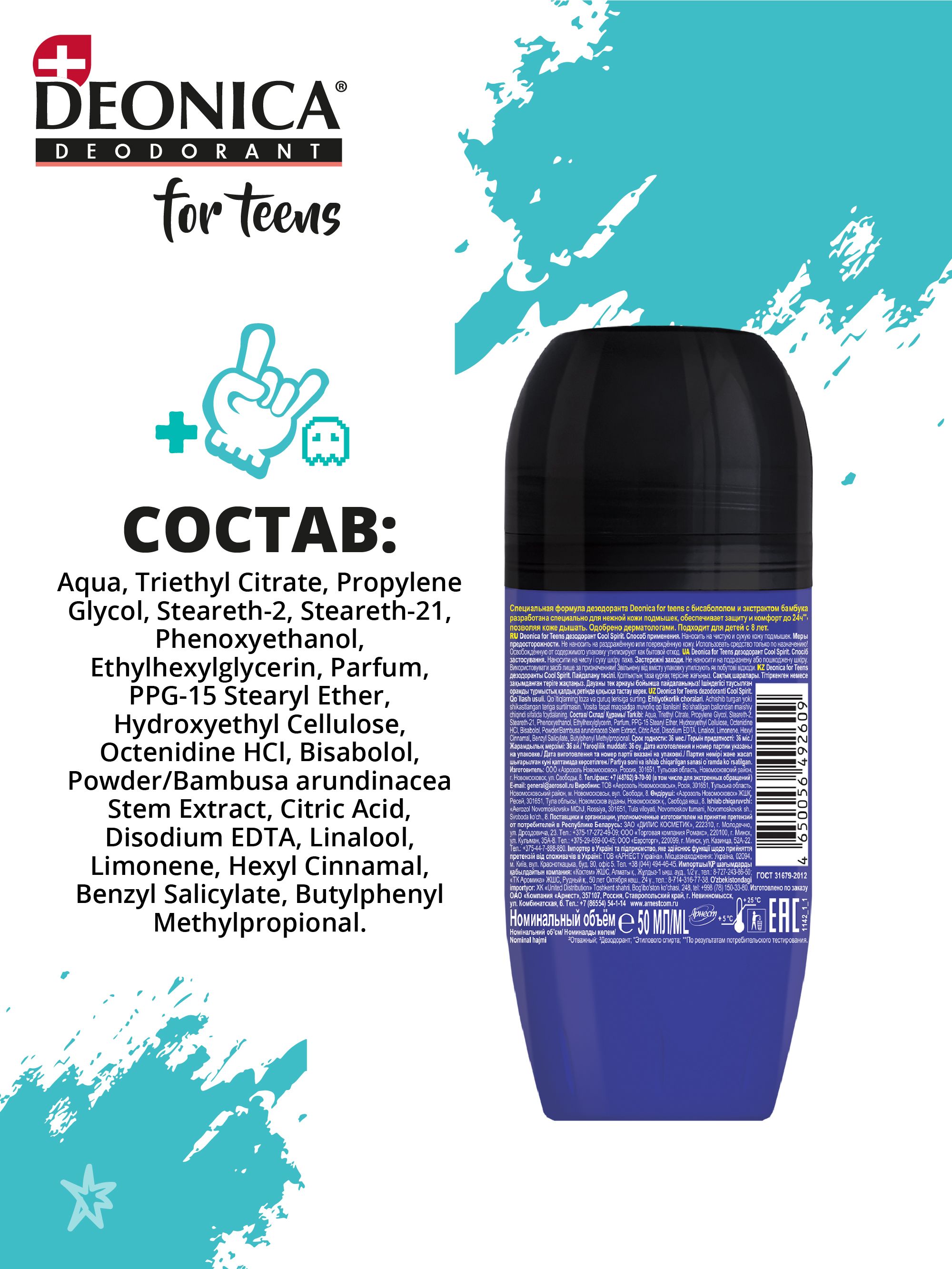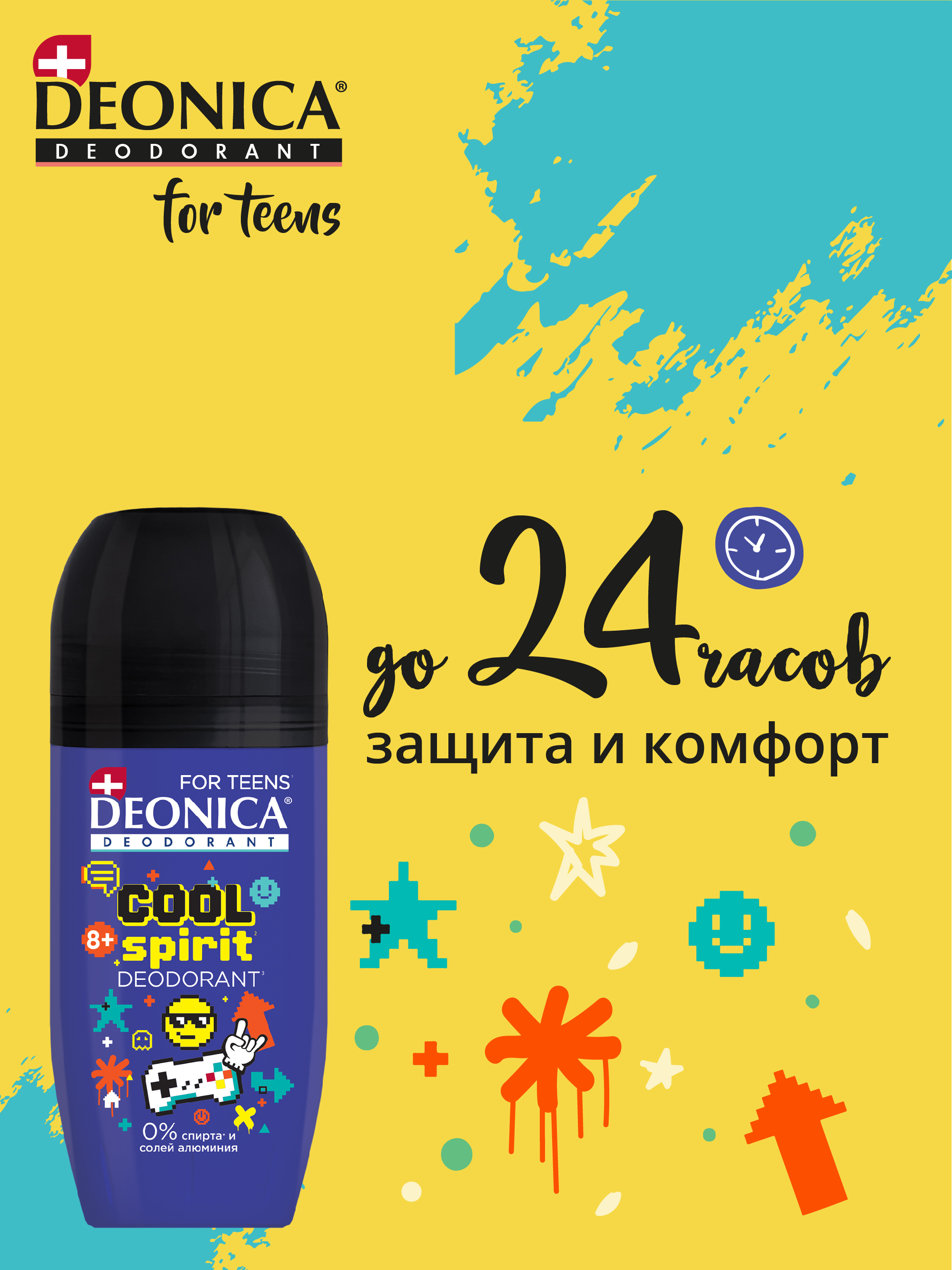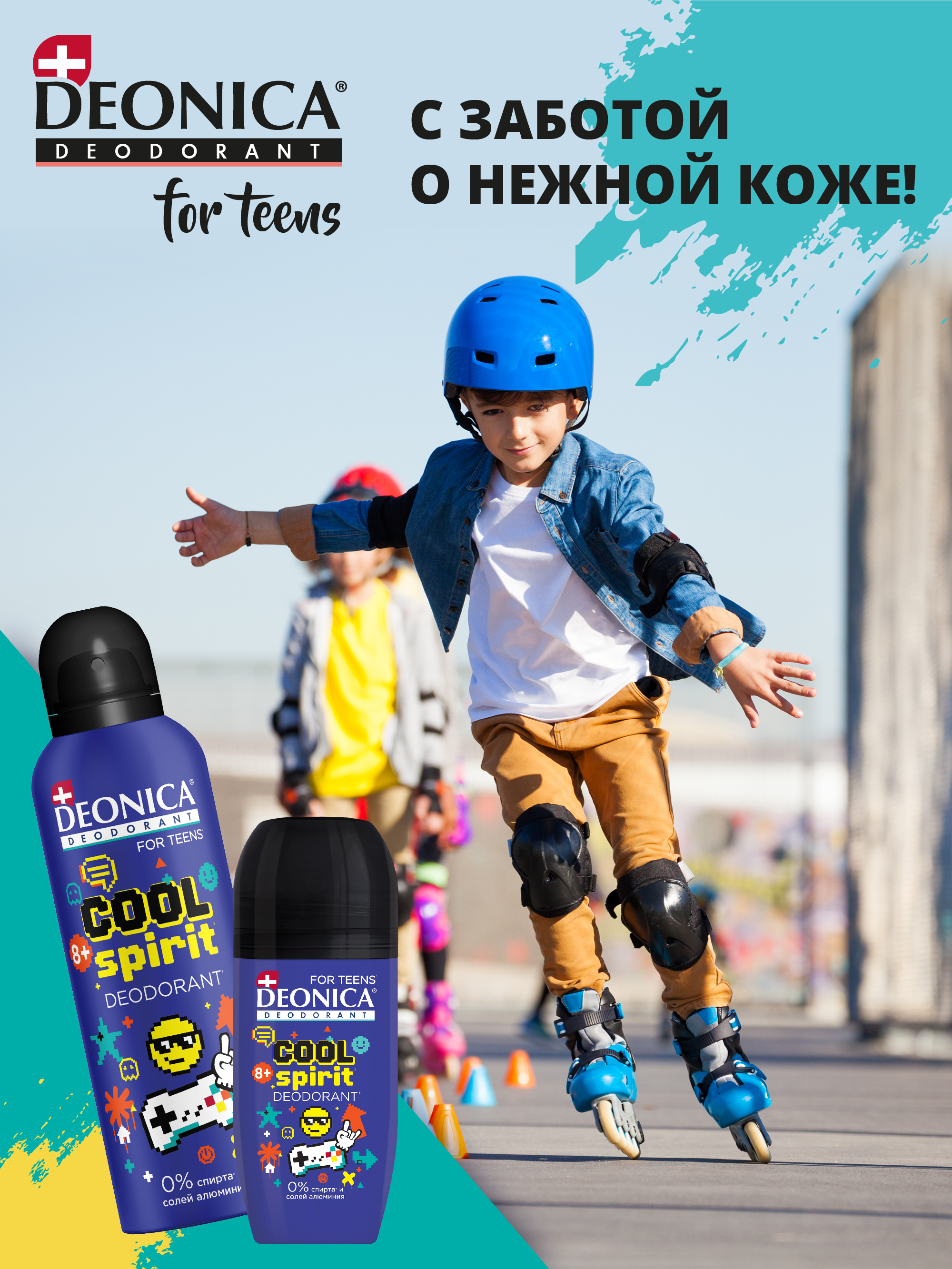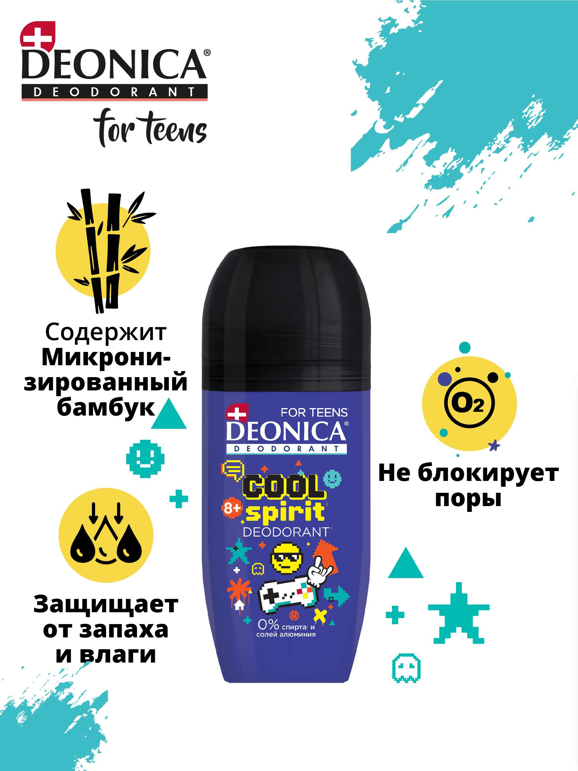 Детский дезодорант для мальчика Деоника for teens Cool Spirit, шариковый, до 24 часов защиты, подходит для детей с 8 лет - 50 мл