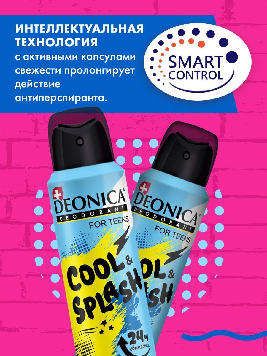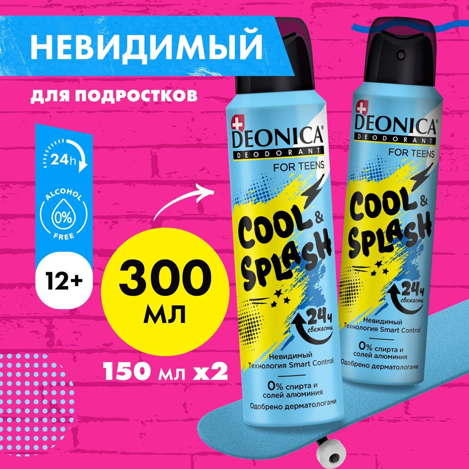 Детский дезодорант для подростков Deonica, 150мл х2шт, Cool Splash без спирта и солей алюминия невидимый от запаха пота, для мальчиков и девочек