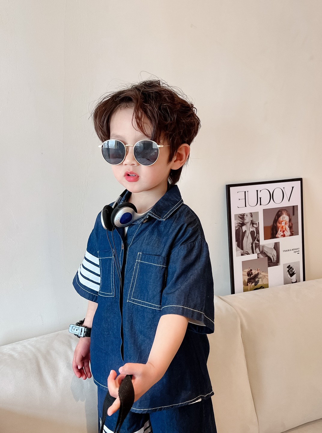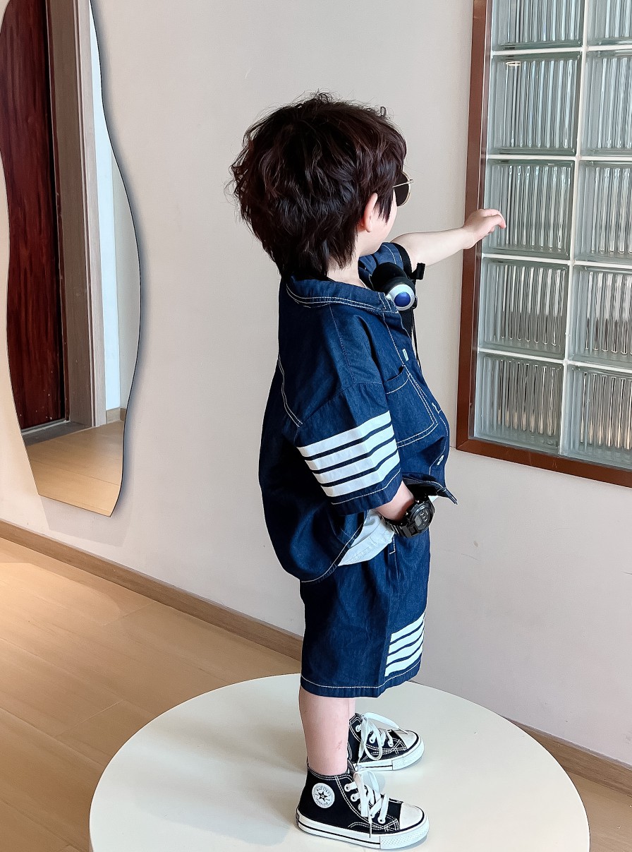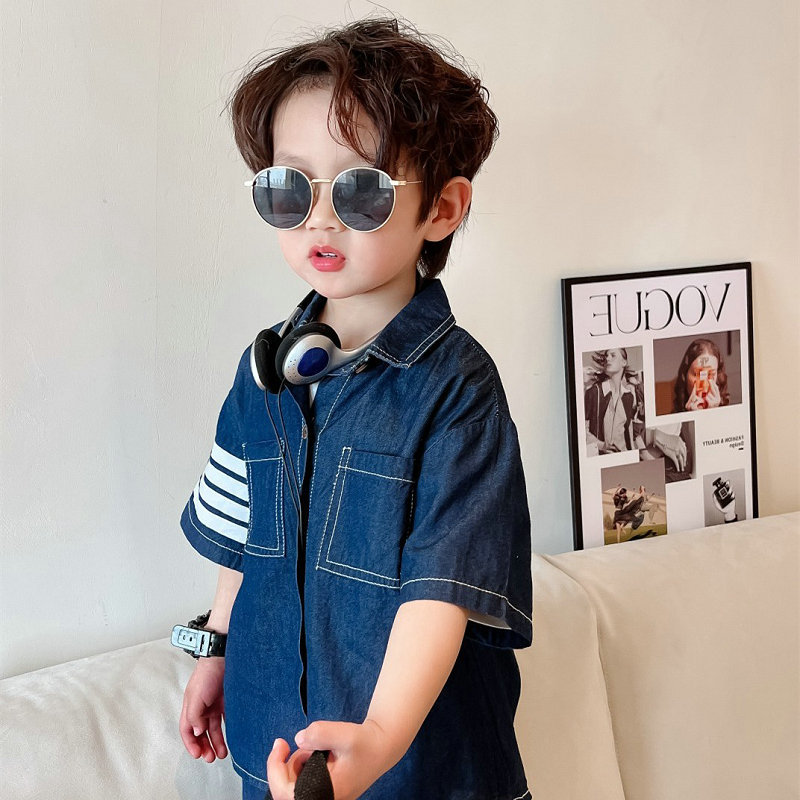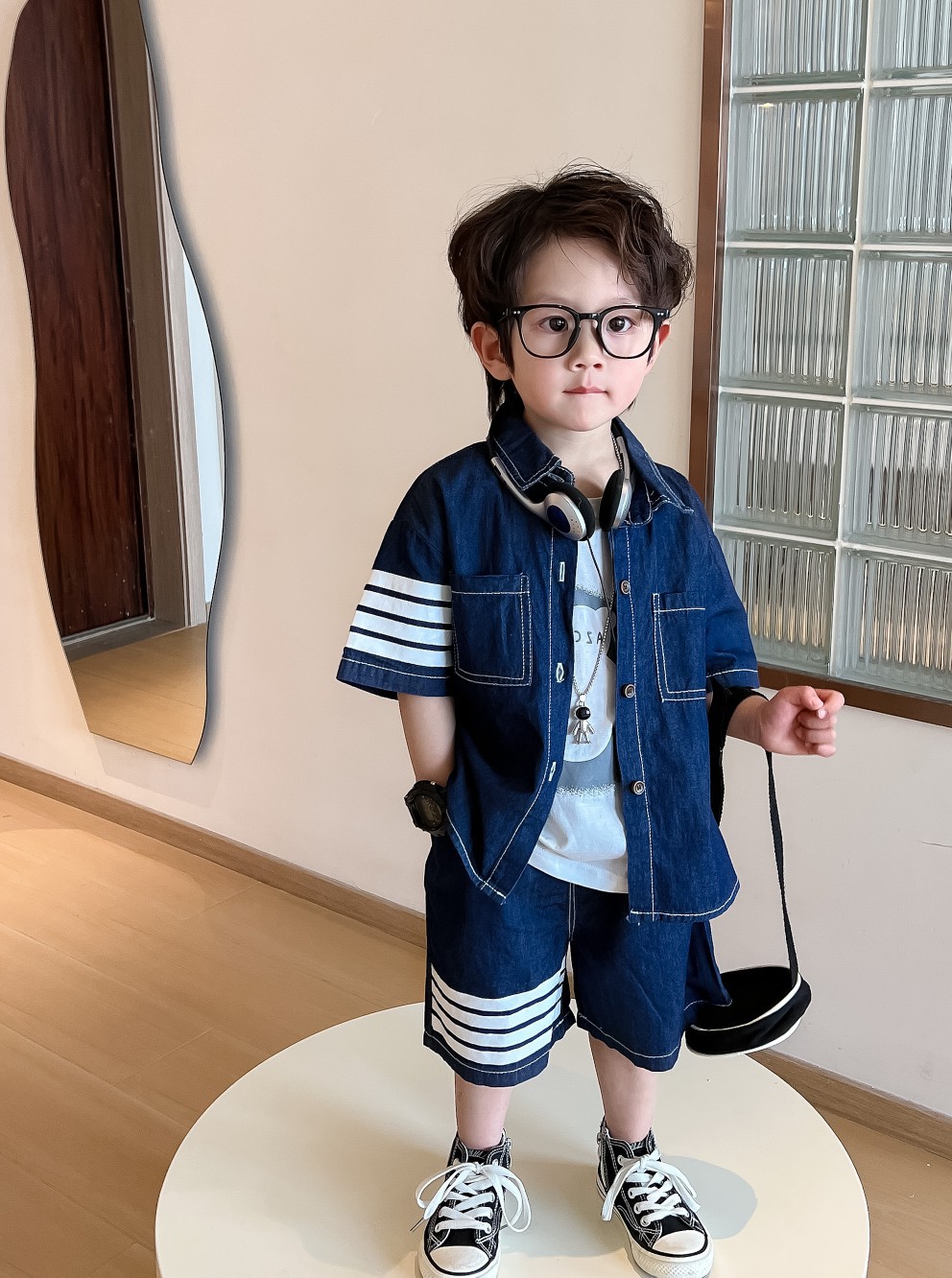 Детский джинсовый костюм для мальчиков, рубашка с коротким рукавом + шорты, комплект из двух предметов, одежда для мальчиков, детская одежда