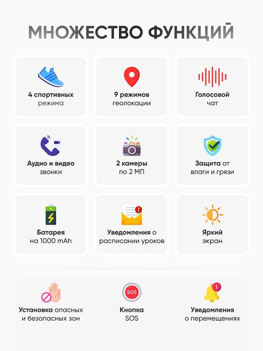 В умных часах для фитнесса широкий функционал для общения с членами семьи и друзьями. Можно отправлять смс, получать звонки и записывать голосовые сообщения в семейных чатах. На дисплей выводится клавиатура с цифрами, что позволяет легко набрать нужный номер или совершить звонок в экстренной ситуации.