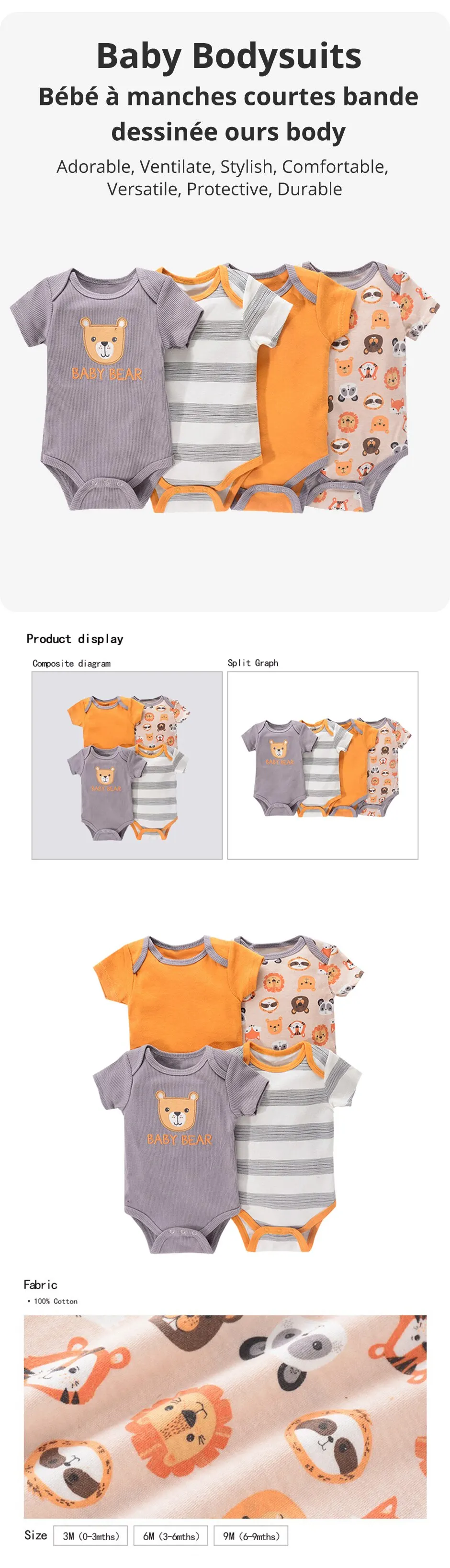 Детский хлопковый боди с коротким рукавом, 4 шт
