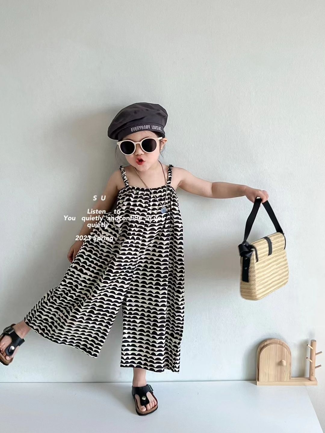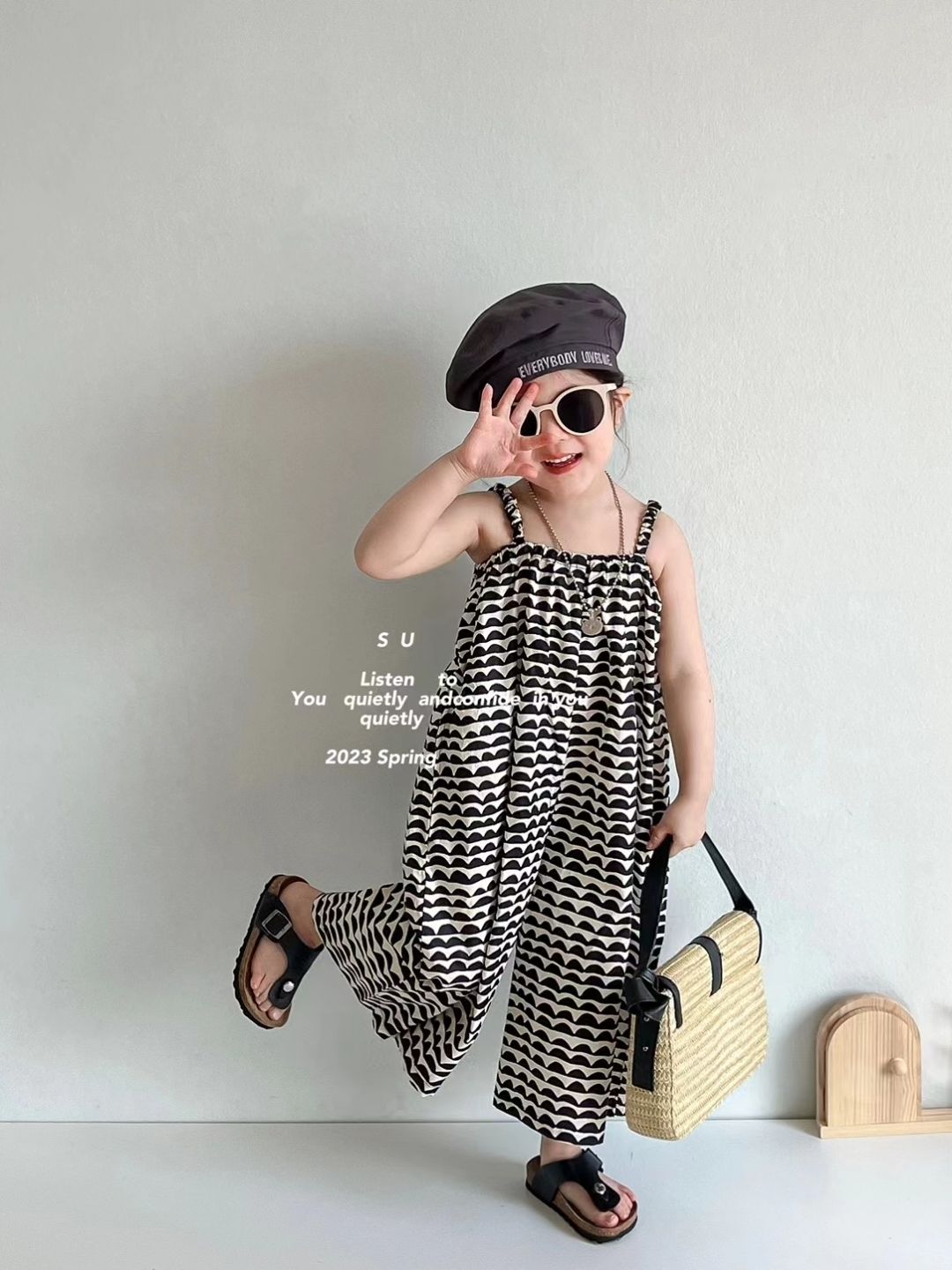 Детский хлопковый комбинезон без рукавов, свободные мягкие комбинезоны с широкими штанинами в Корейском стиле, лето 2023