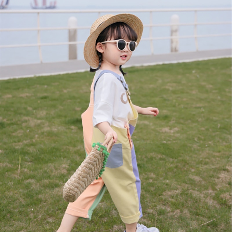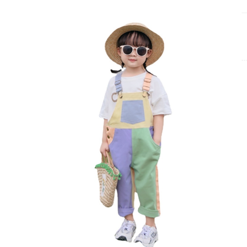 Детский комбинезон, хлопковый тонкий комбинезон на подтяжках, юбка, джинсовые брюки для маленьких мальчиков, контрастные повседневные свободные комбинезоны для девочек, детский комбинезон