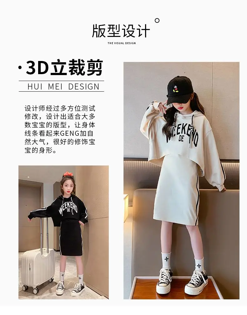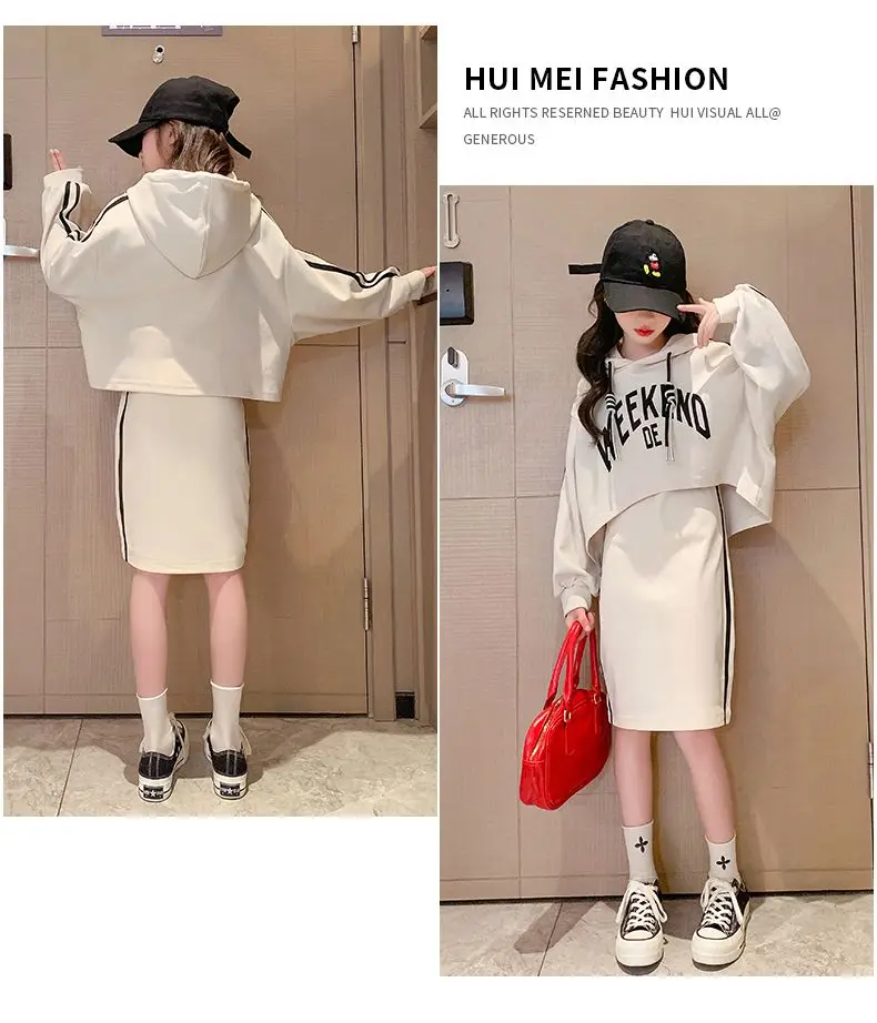 Корейская детская одежда комплект для девочек на осень и весну, толстовка с длинными рукавами + платье, детская одежда осенний комплект из 2 предметов для девочек 5, 6, 8, 10, 12, 14 лет