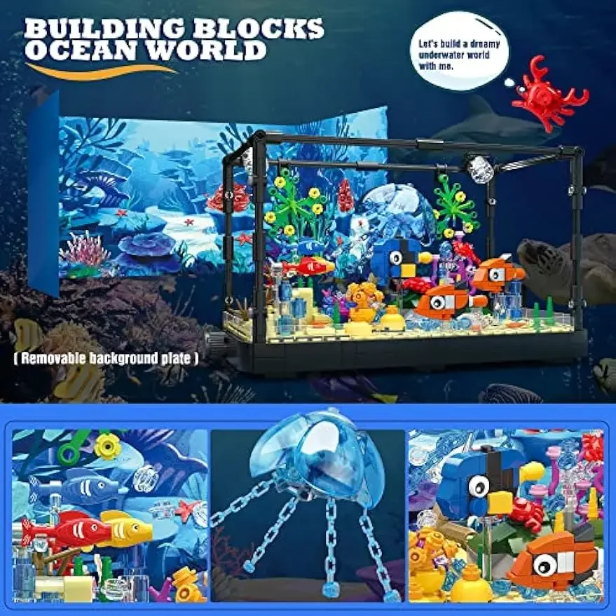 • 🐟【Совместимость со строительными блоками основных брендов】: Набор строительных блоков для аквариумов совместим с основными брендами и оснащен полноцветными инструкциями. А аквариумы из строительных блоков с множеством милых морских животных и растений, в том числе огромной осветительной Медузой, незаменимы как для любителей морской жизни, так и для энтузиастов строительных блоков.