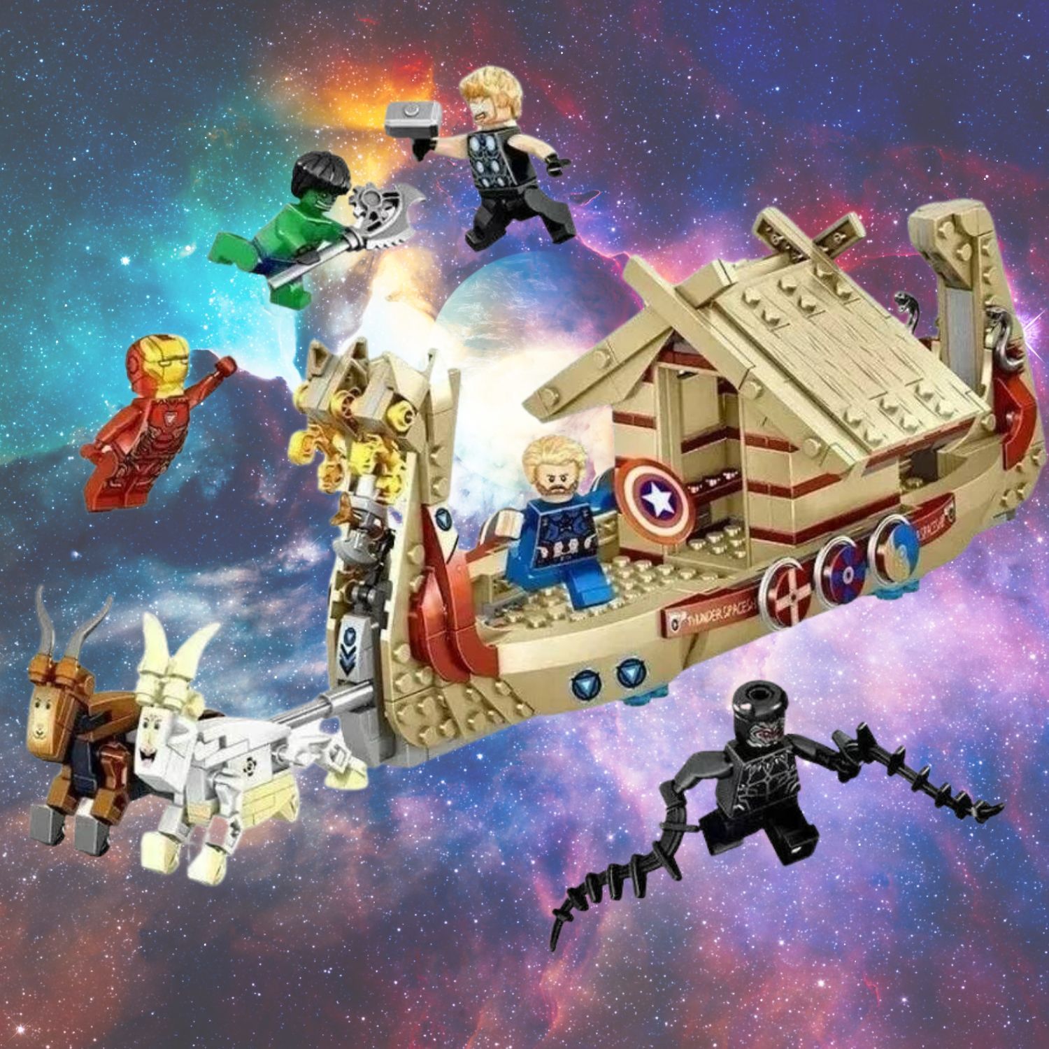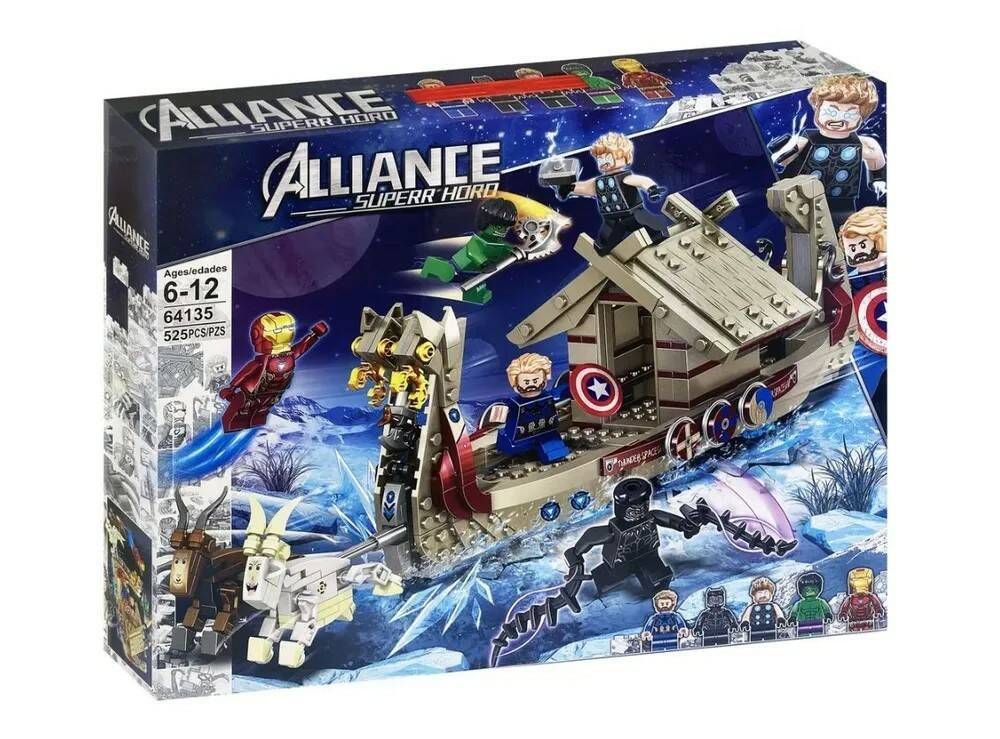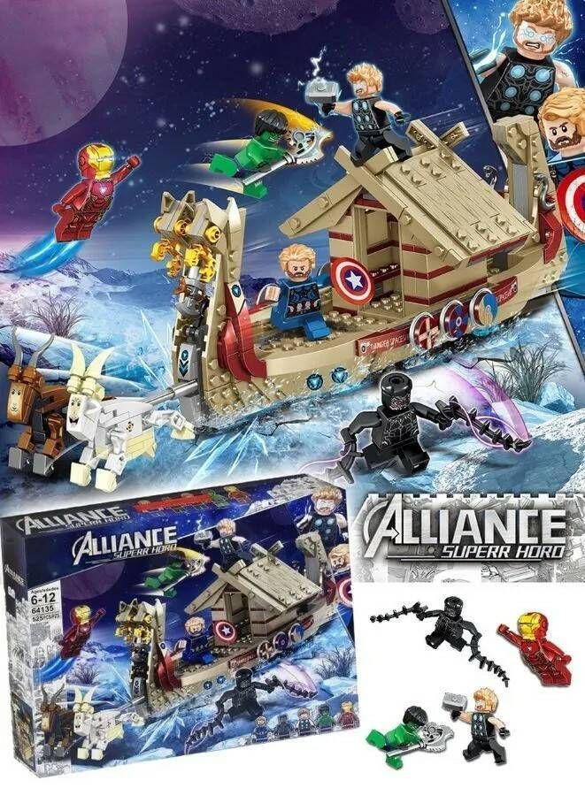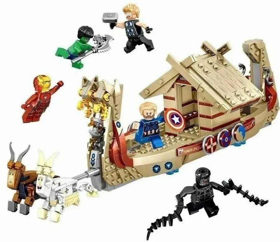 Детский конструктор для мальчика Марвел Marvel Мстители Супергерои Тор "Козья лодка", 525 деталей