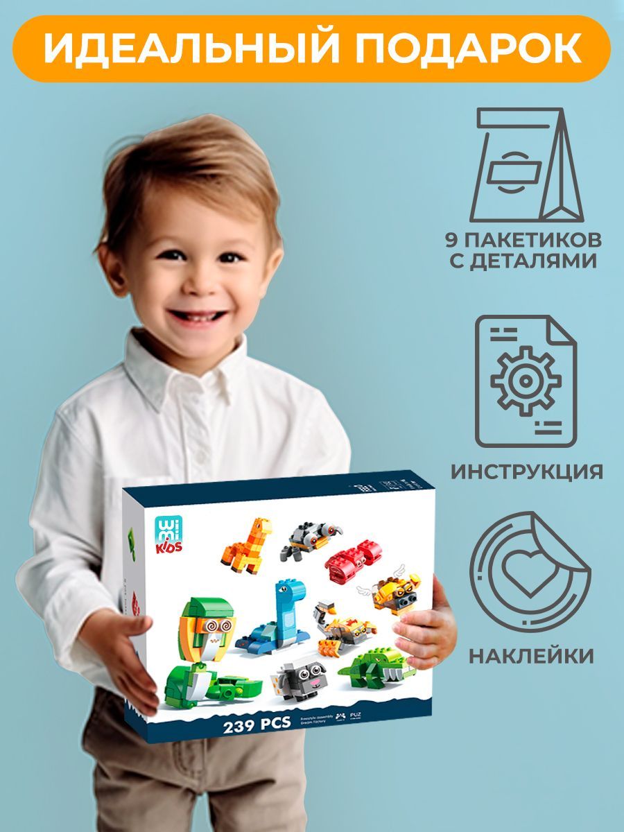 Детский конструктор для малышей WiMi, пластиковый блочный конструктор Зоопарк, сборные модельки животных Африки с наклейками, развивающий игровой набор для детей, 239 деталей