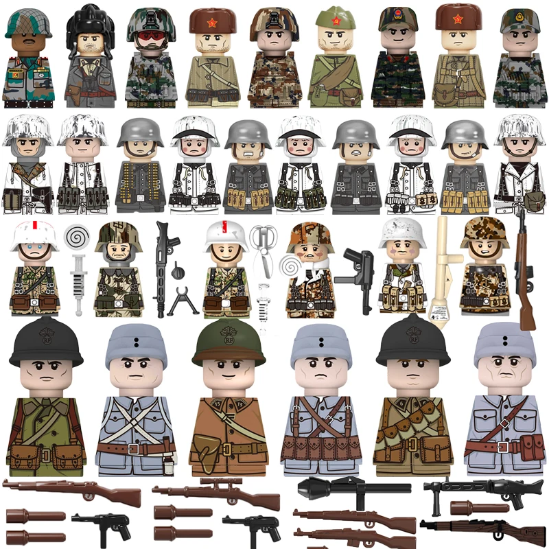 Детский конструктор, игрушки, Вторая мировая война, Военные солдаты, китайская, американская, советская, немецкая, двусторонняя фигурка с принтом, куклы, оружие, пистолет, кирпичи