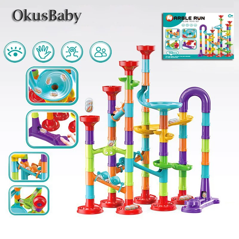 29/80/105/133 шт. Набор DIY строительство мрамор гонки бег лабиринт трек строительные блоки детские игрушки мяч