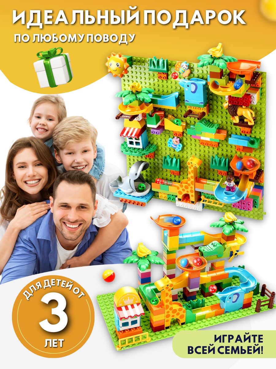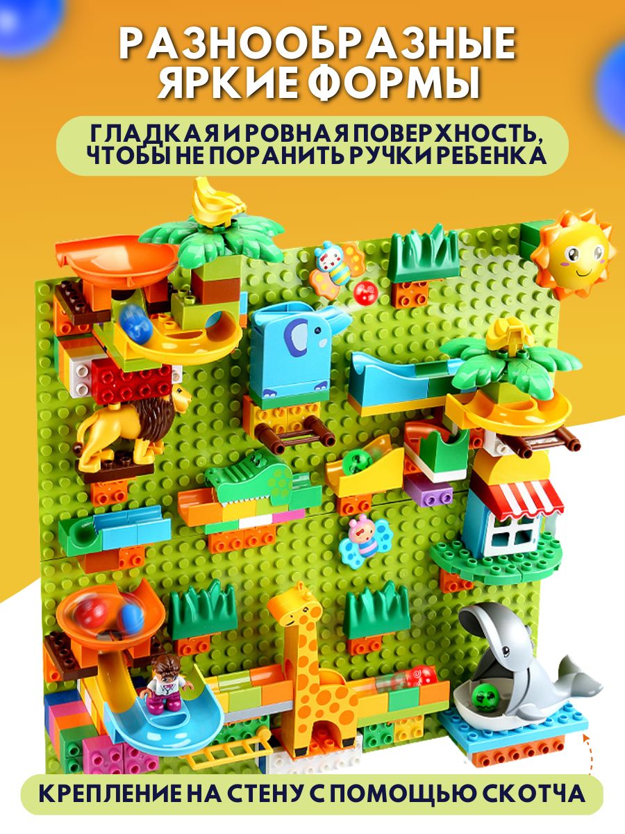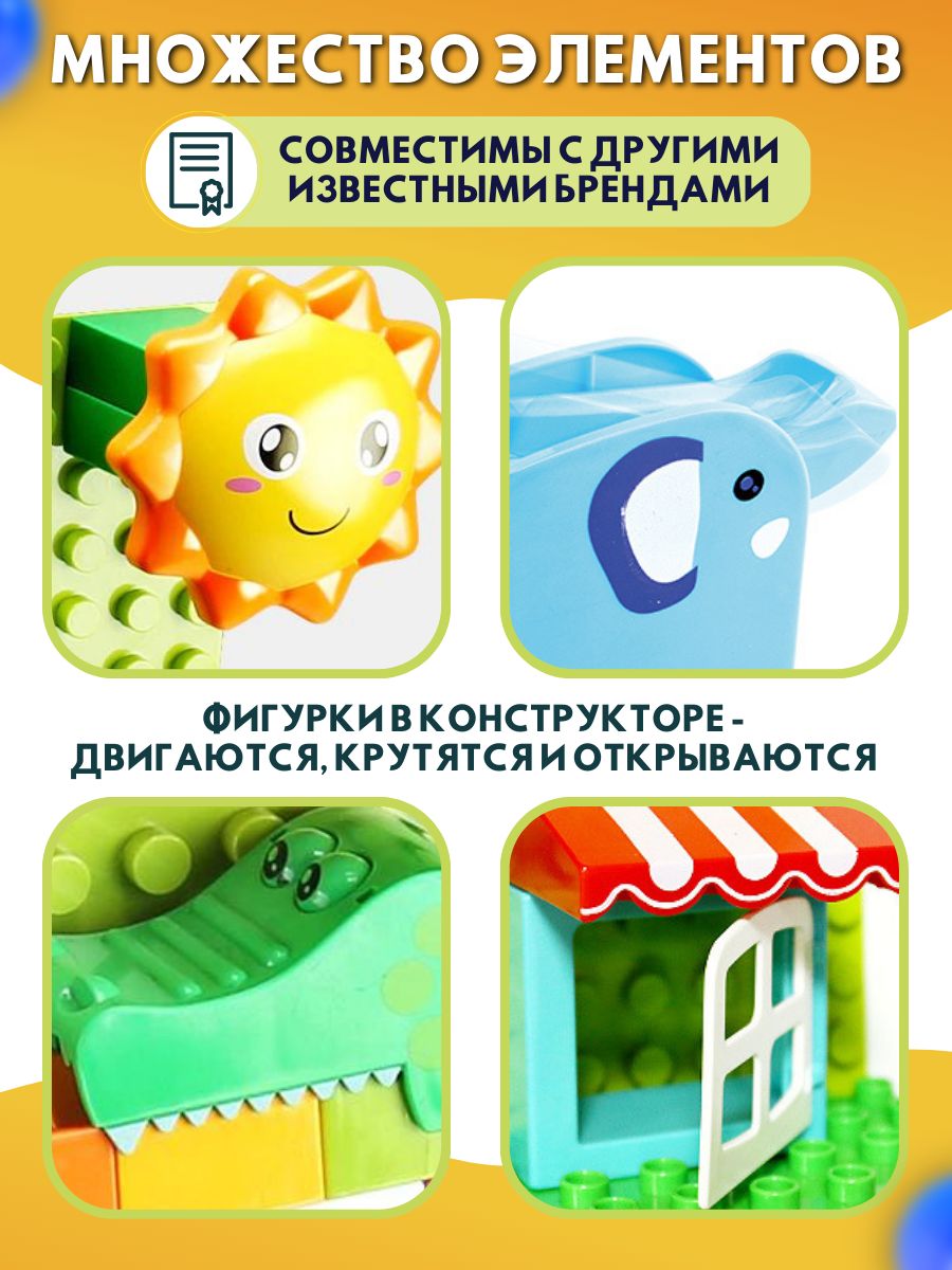 Описание: Детский конструктор, как и любое лего, приведёт в восторг вашего ребёнка! Множество интересных ярких деталей привлекут любого малыша и займут его внимание надолго. Лабиринт для мячиков будет интересен не только маленьким детям, но и подросткам и взрослым. В комплект детского набора могут входить такие элементы как: горка с шариками, различные животные (лев, слон, жираф, бабочки, бегемот, кит), растения, автотрек, туннель и строительные блоки. Динамический конструктор позволяет создать множество различных интересных игр. В свою очередь сборка и разборка конструктора само по себе является увлекательным занятием. Конструктор для малышей состоит из различных ярких деталей. Блоки игры можно собирать в различных комбинациях. Благодаря наличию в комплекте основы для сборки, детский конструктор-лабиринт можно собирать как в вертикальном, так и в горизонтальном положении. Игровой набор для мальчиков и девочек развивает воображение и пространственное мышление. Горка с туннелями способствует улучшению мелкой моторики, формированию усидчивости и концентрации внимания. Развивающая игрушка для детей выполнена в ярком красочном дизайне, что способствует развитию воображения у ребёнка. Сборная модель конструктора для малышей формирует усидчивость и другие полезные навыки. Разборный лабиринт включает в себя такие игровые элементы как: воронки для шариков, лабиринт-дрифтинг, туннели в виде животных, а также различные подвижные элементы. Горка для шариков универсальная игра, позволяющая каждый раз переставлять детали и менять способ передвижения шаров или машинок. Блочный конструктор имеет скруглённые углы, его детали легко соединяются между собой, изготовлен из безопасного пластика. Комплекс устойчив к износу и падениям. Конструктор представляет собой интересный лабиринт, по которому весело запускать шарики. Из такого детского набора можно сложить одну большую или несколько маленьких горок. Вариантов сборки конструктора очень много, всё зависит от фантазии ребёнка или его родителей. Так же детский игровой комплект, благодаря обилию различных деталей, например минифигурки животных, подойдёт и для игры в зоопарк, и для игры в гонки с гоночным треком. Данная развивашка подойдёт для малышей любого возраста, но особенно будет интересна детям от трёх лет. Такая игра в лабиринт отлично подойдёт в качестве подарка ребёнку на Новый год или день рождения. Интерактивная игрушка поставляется в разобранном в виде в прочной картонной коробке. Лабиринт с препятствиями станет самой любимой игрой вашего ребёнка на долгое время.