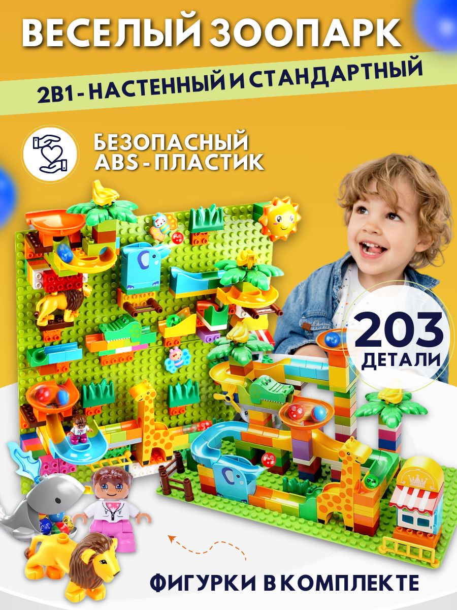 Детский конструктор лего, игрушки для детей, подарок для мальчиков и девочек, развивающий набор с животными, горкой, туннелем для машин