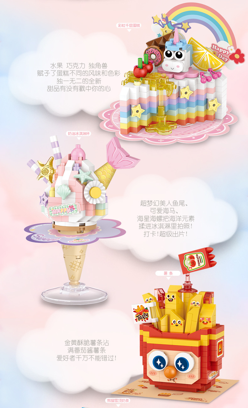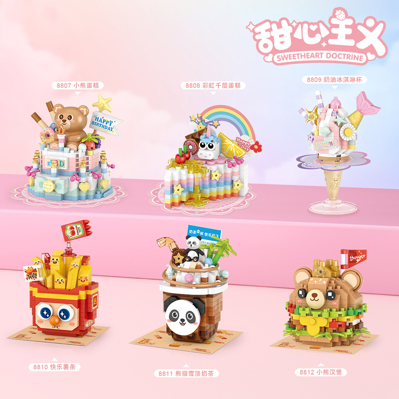 Строительные блоки Loz Panda, креативное сборочное украшение, десертные электрические мини-частицы, Развивающие детские игрушки для мальчиков и девочек