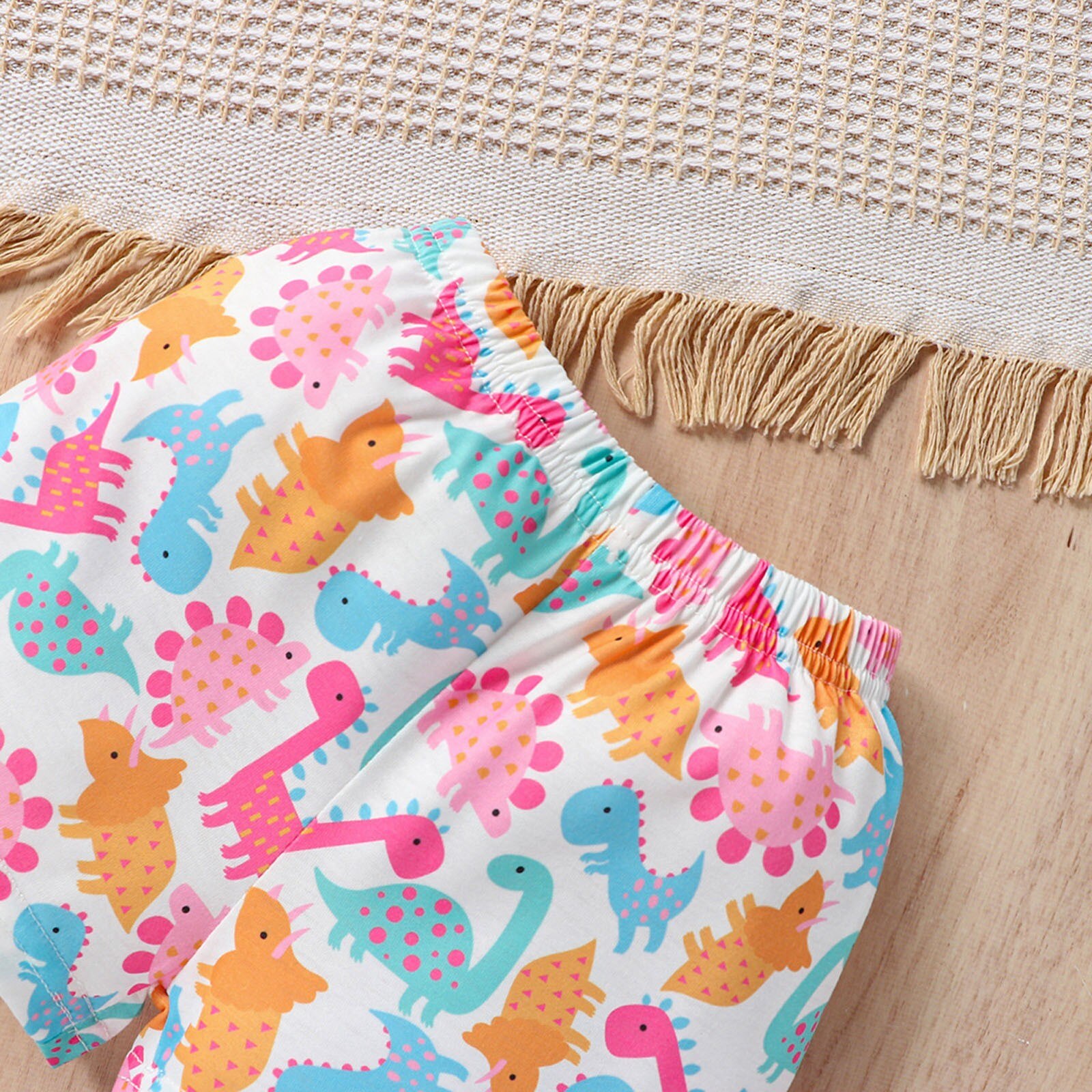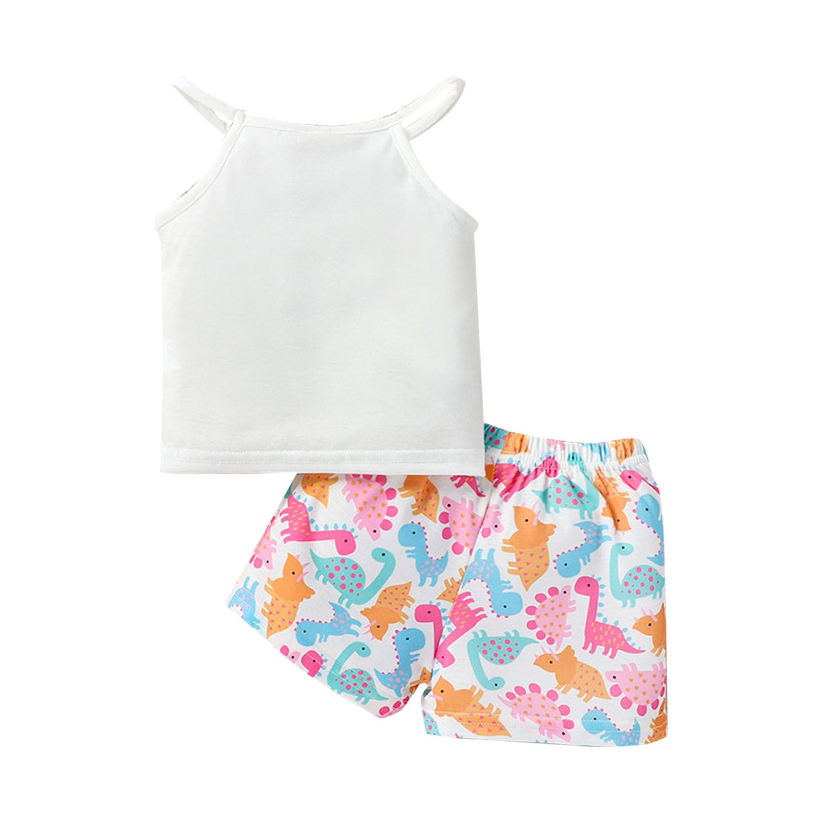 Костюм для маленьких девочек Топ без рукавов Брюки-Динозавры с буквенными подтяжками Многоцветный набор из двух предметов с принтом динозавров для девочек