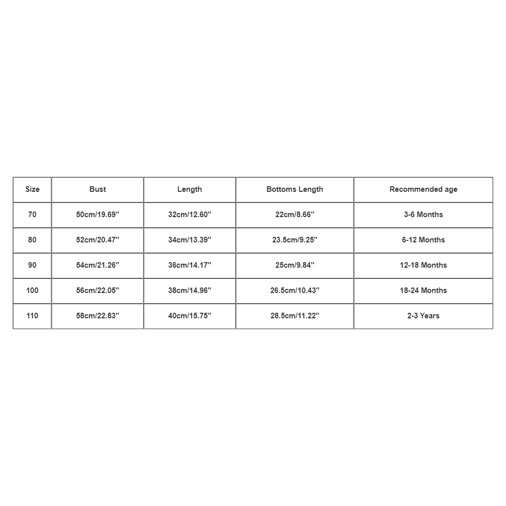 Размер: 70 Бюст: 50 см/19,69 дюйма Длина: 32 см/12,60 дюйма Длина низа: 22 см/8,66 дюйма Рекомендуемый Возраст: 3-6 месяцев
