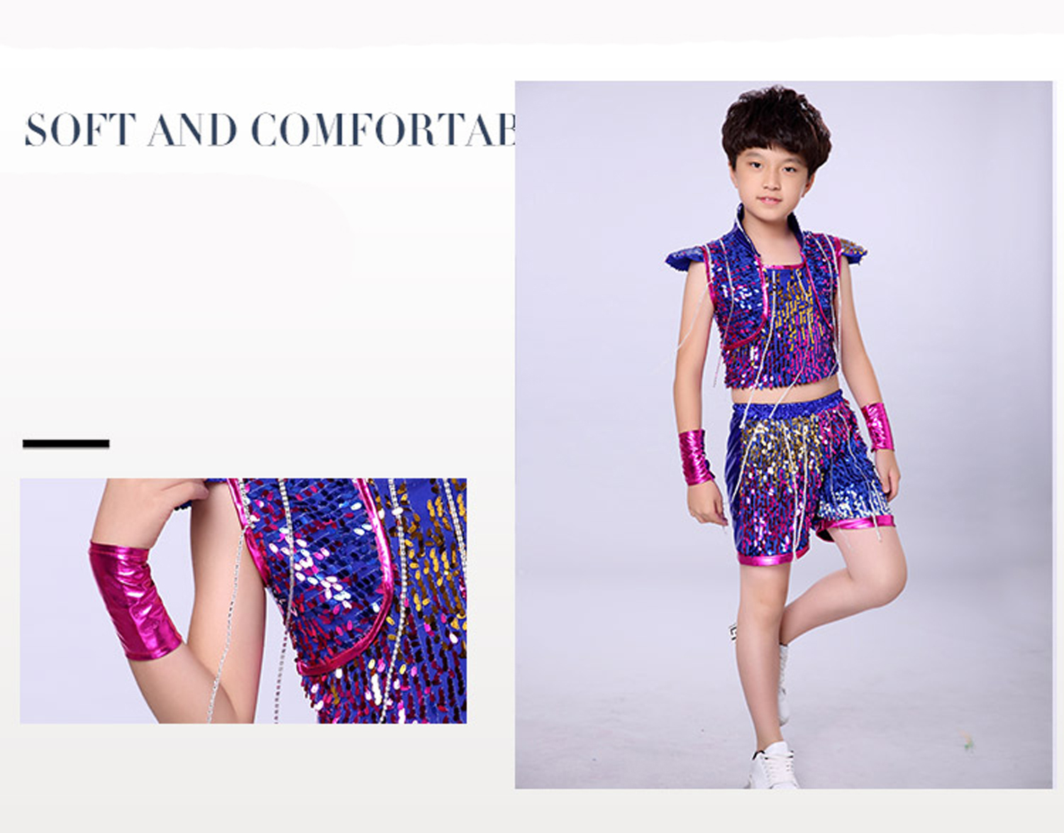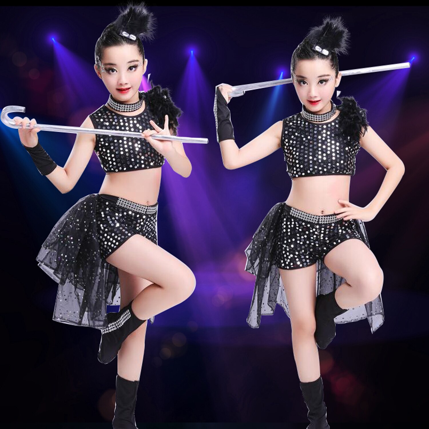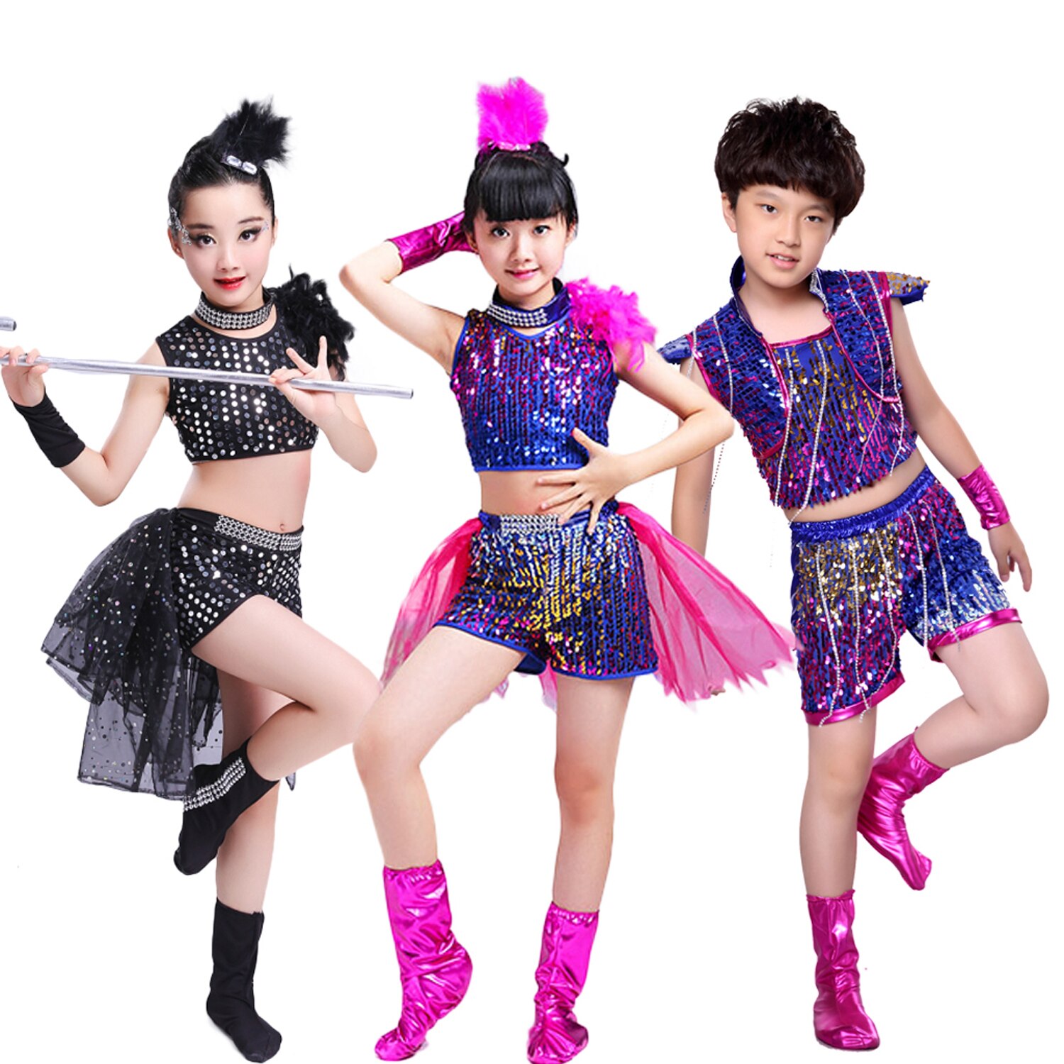 Детский костюм LOlanta для девочек, короткий топ с блестками и шорты, одежда для мальчиков, розово-красный джазовый костюм для выступлений