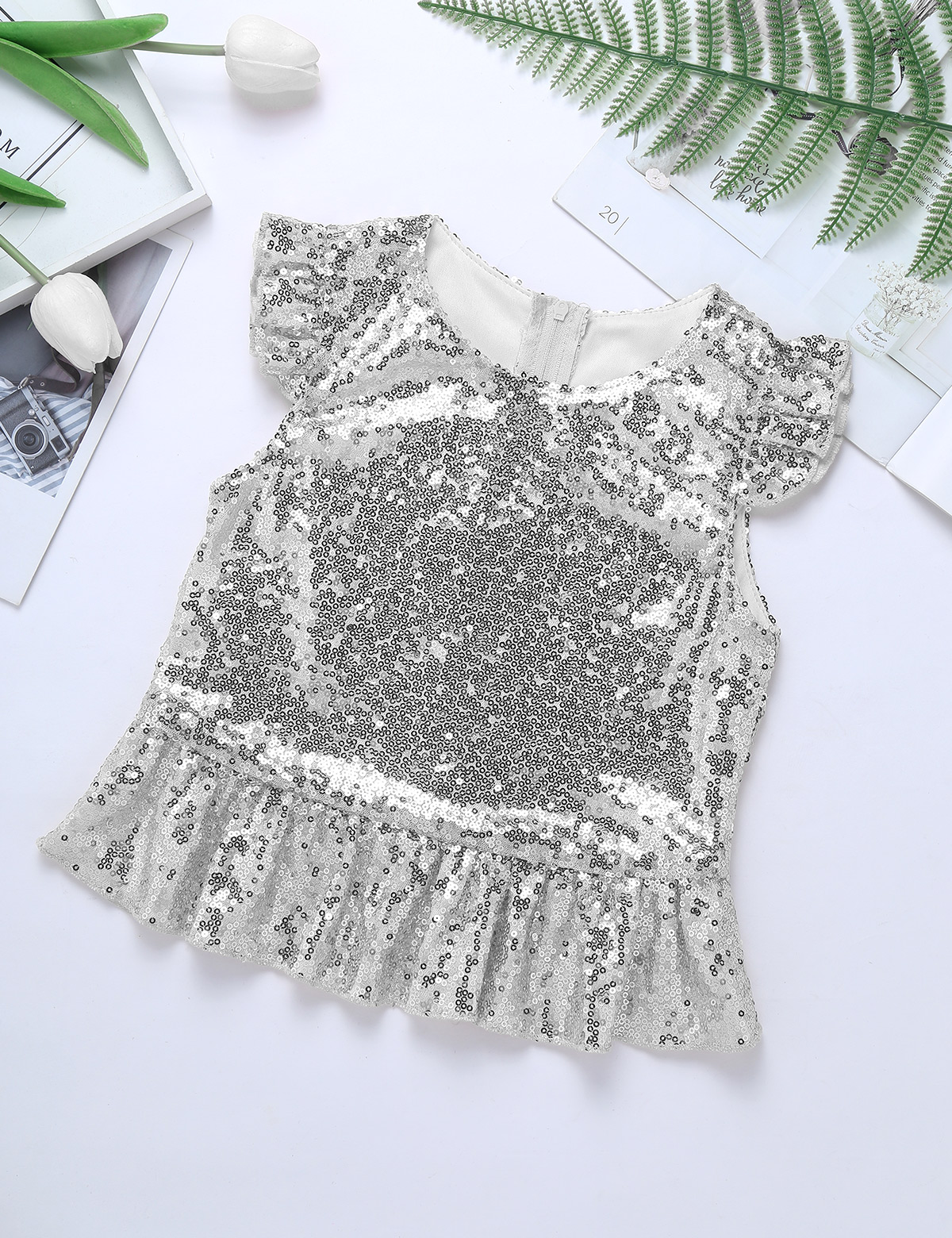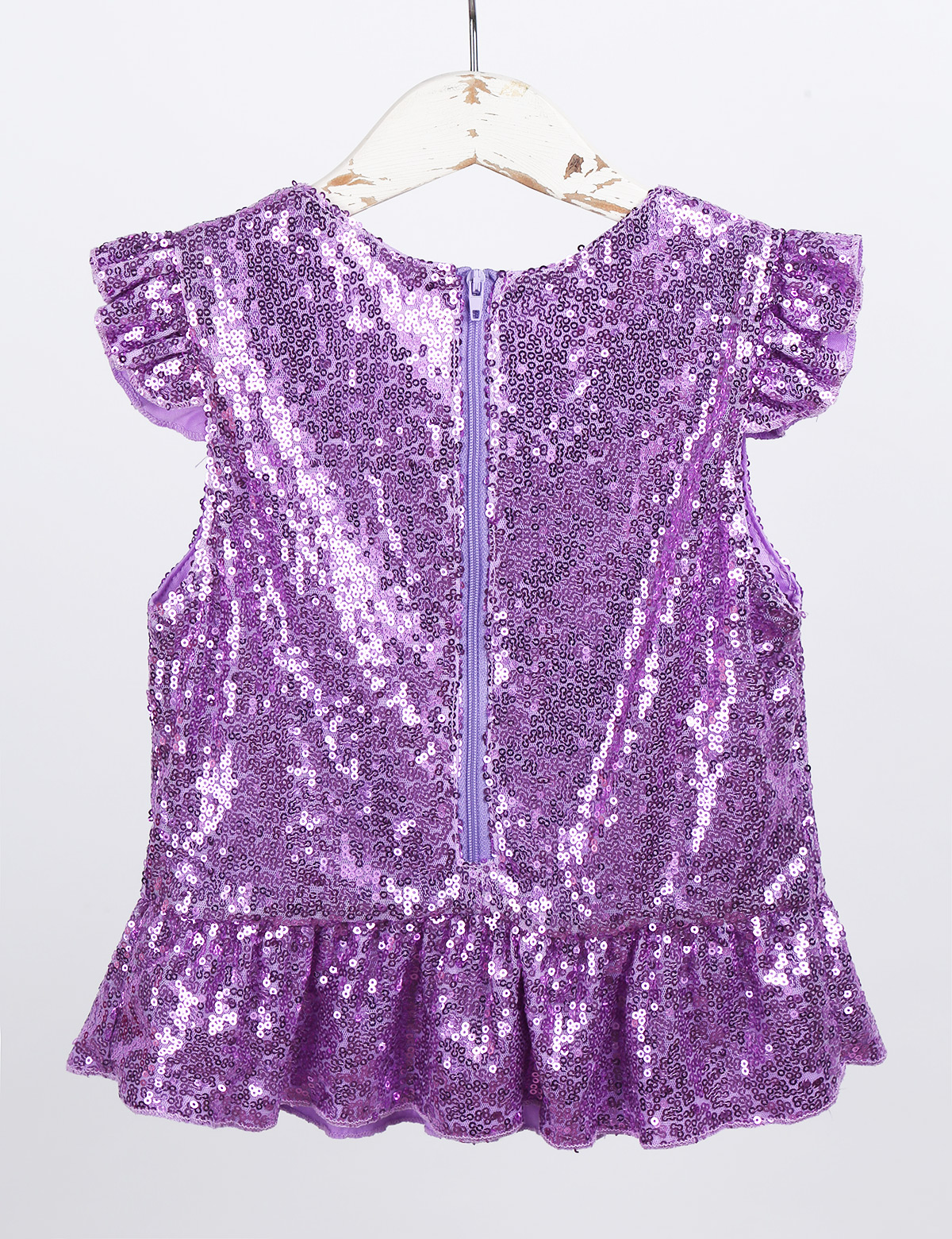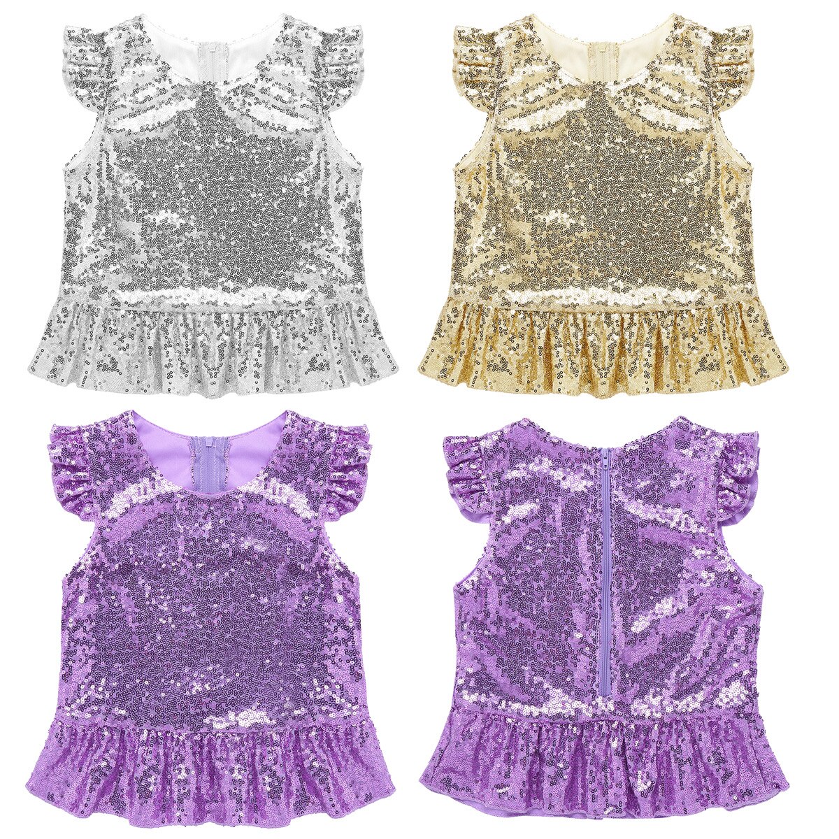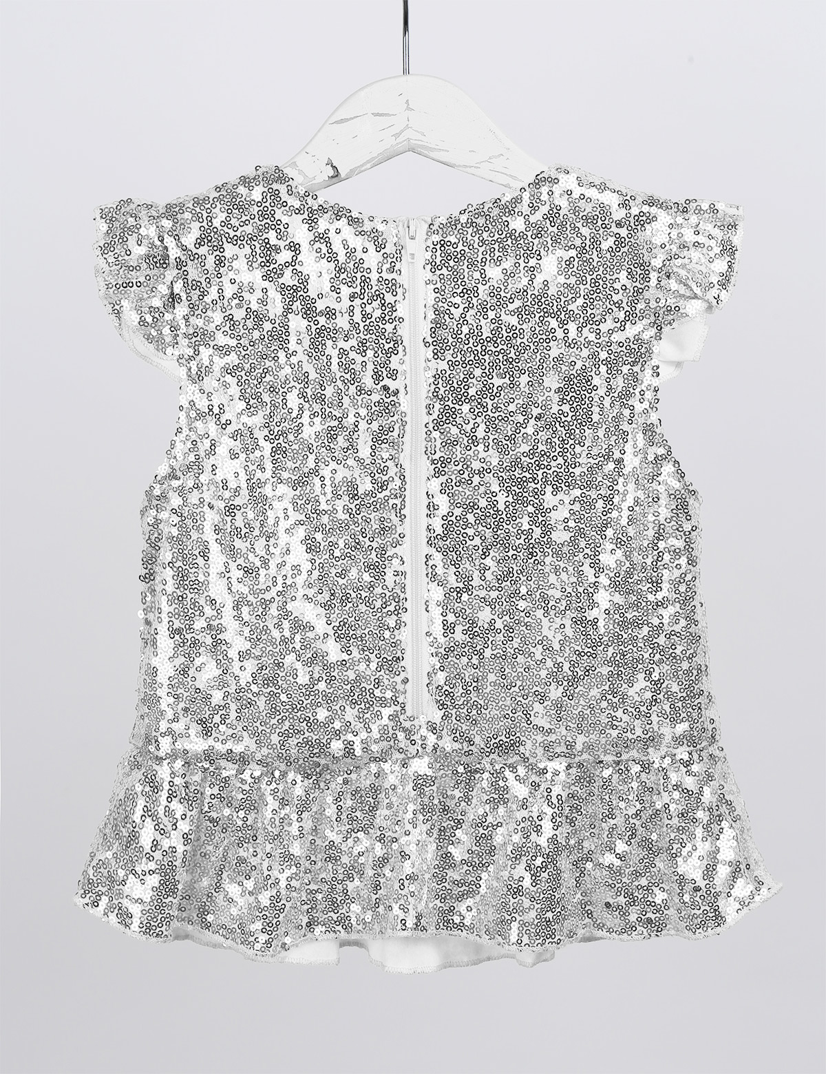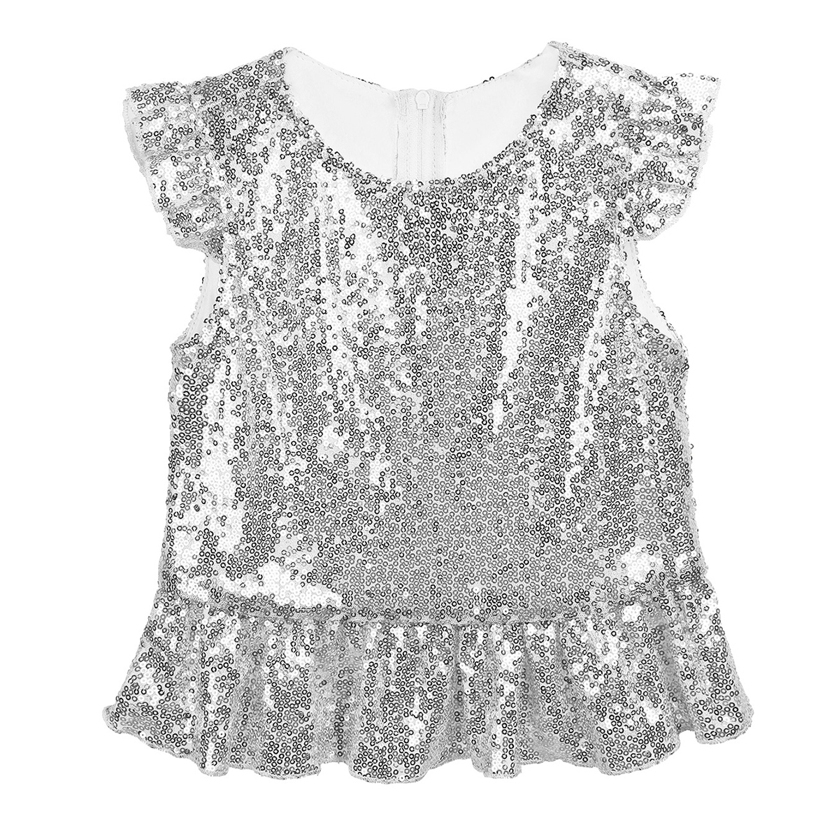 Застежка-молния сзади для удобного надевания. Полная подкладка для удобного ношения. Блестящий Топ для вашей девочки.