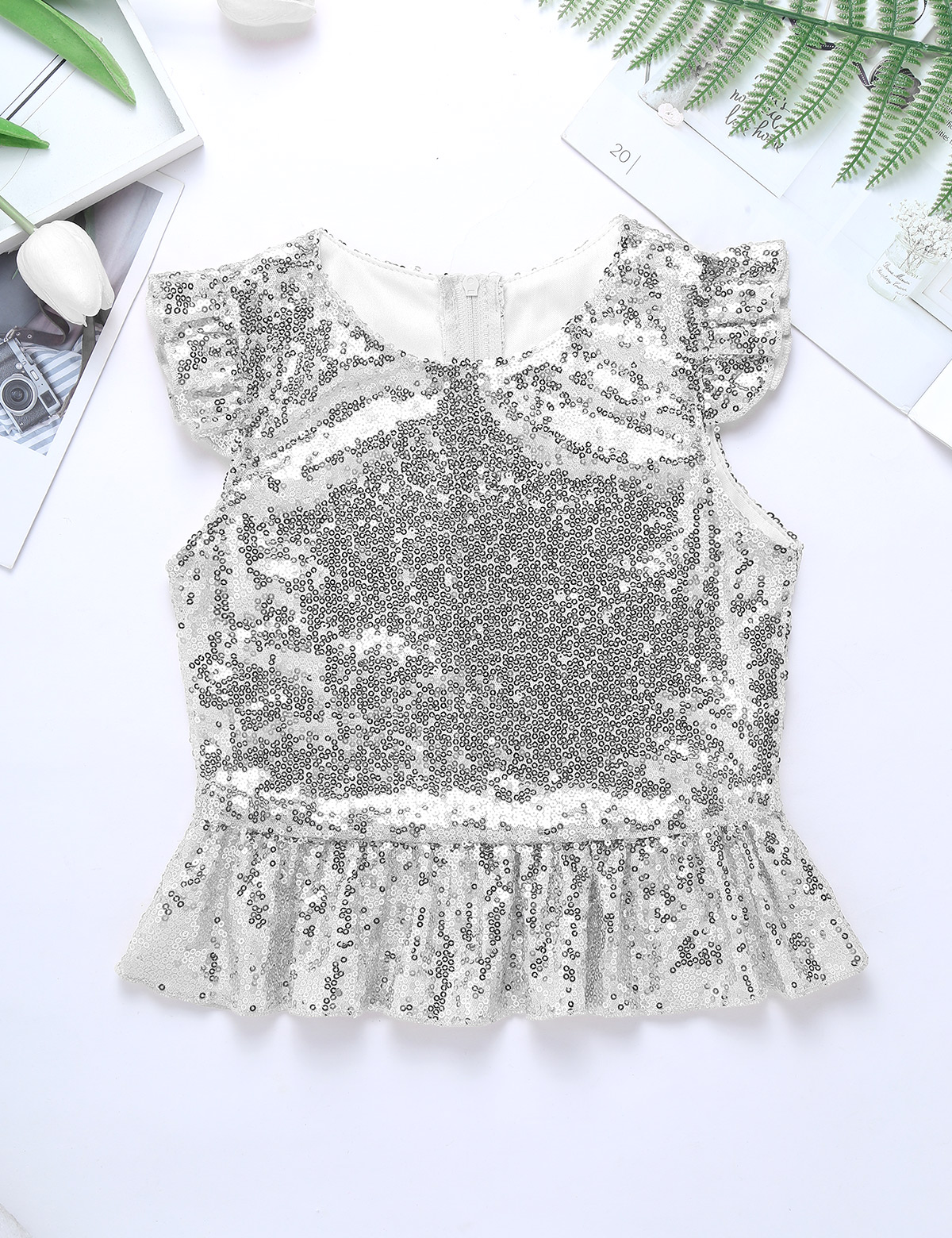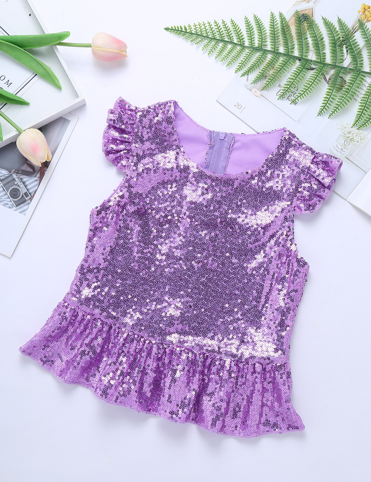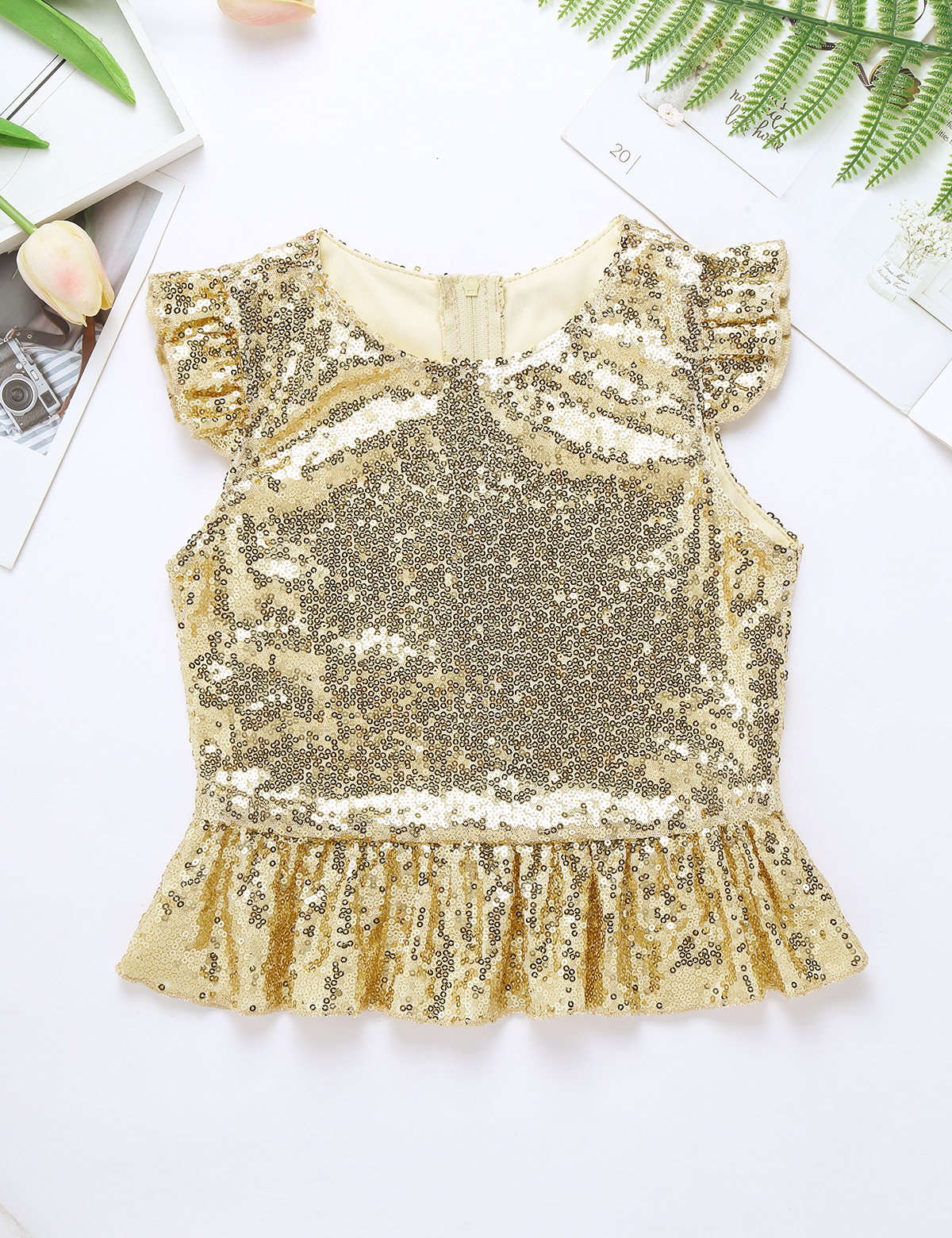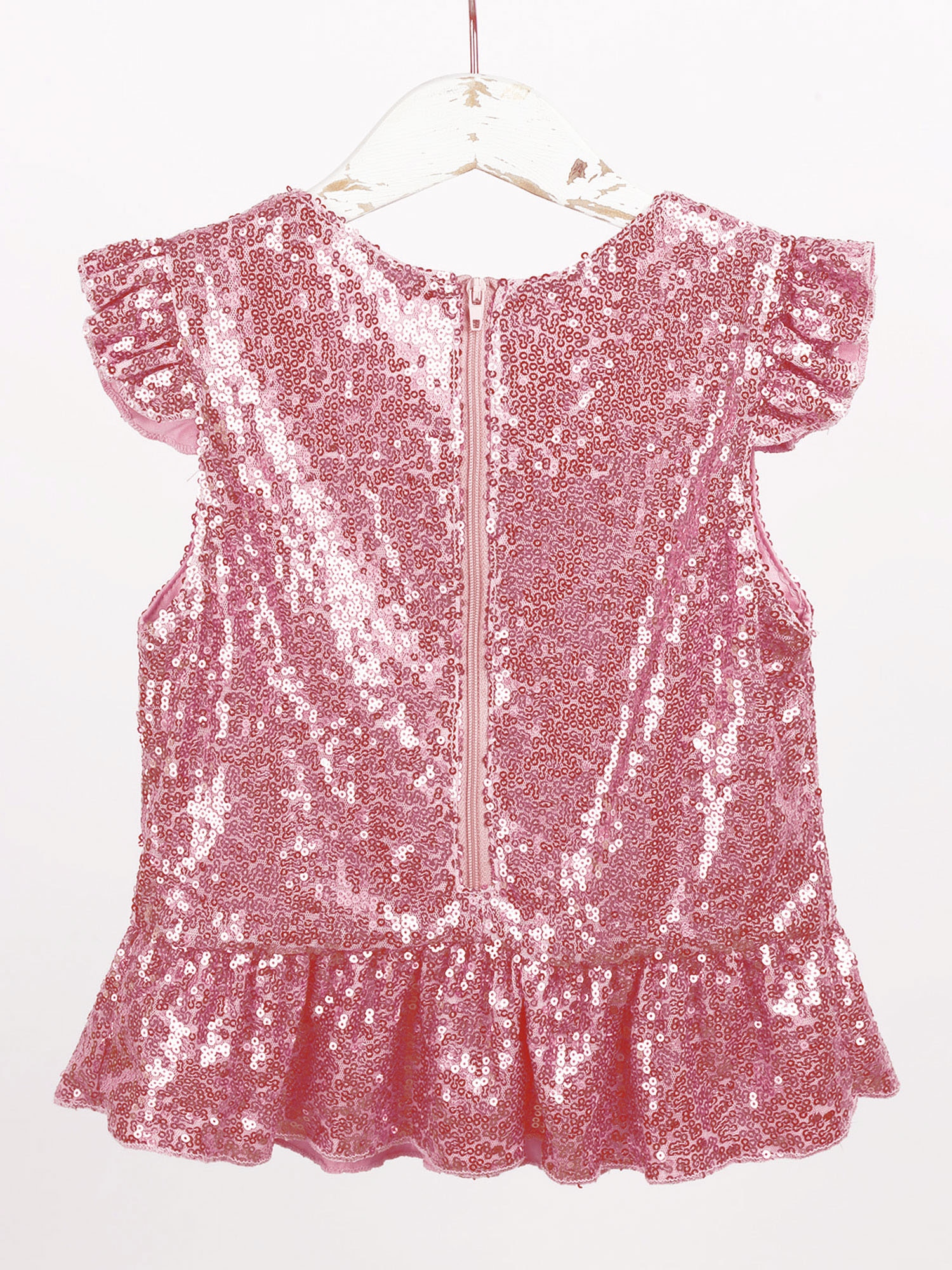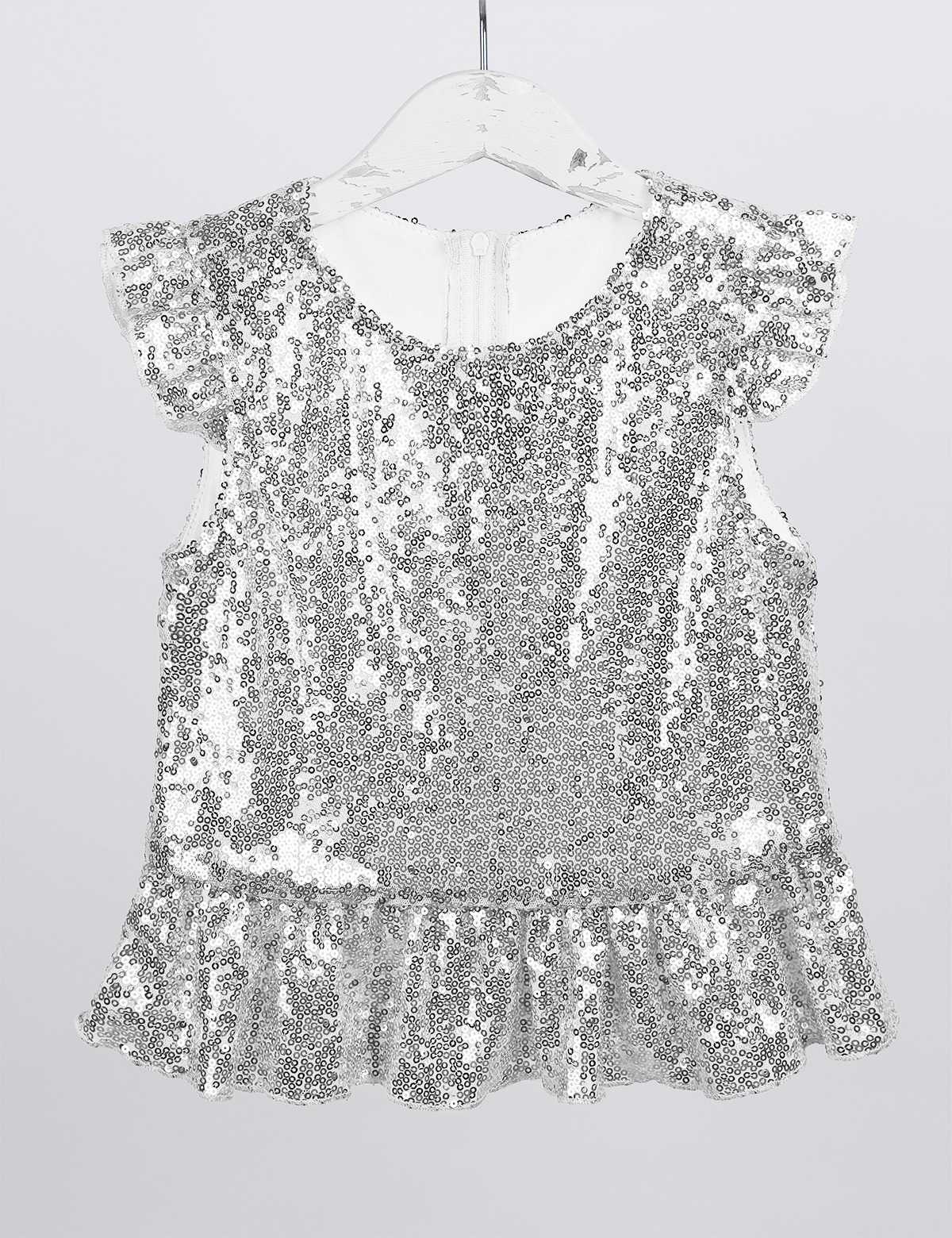 Застежка-молния сзади для удобного надевания. Полная подкладка для удобного ношения. Блестящий Топ для вашей девочки.