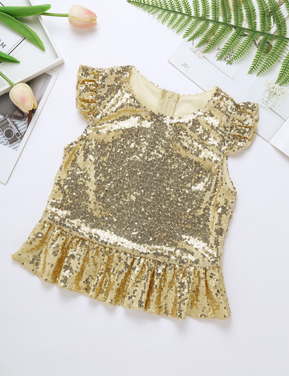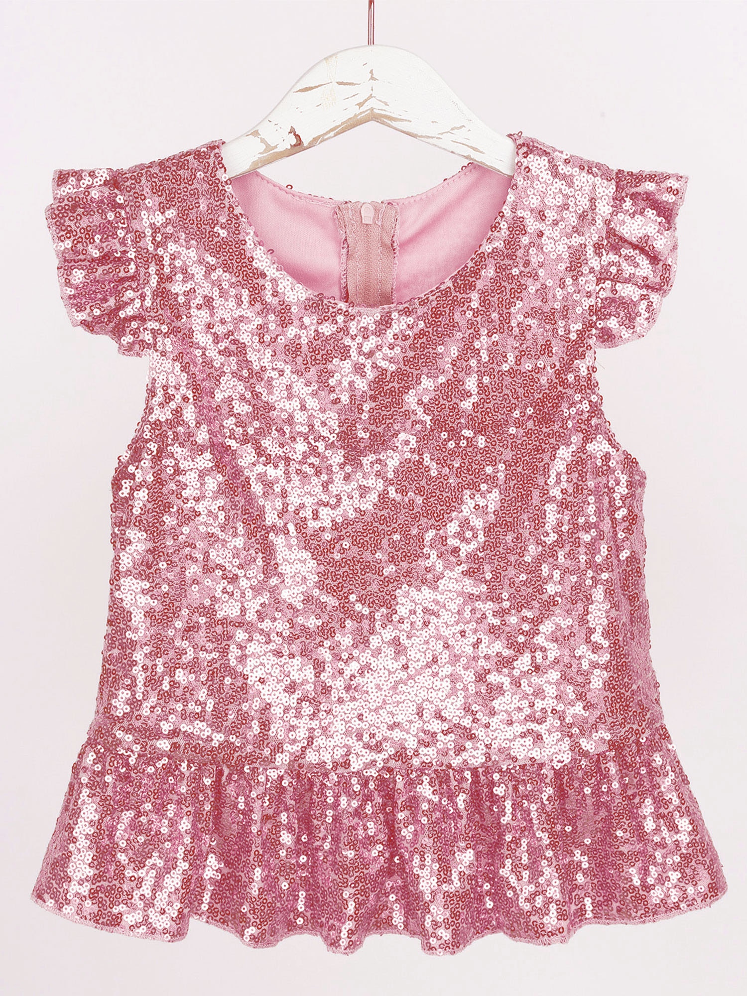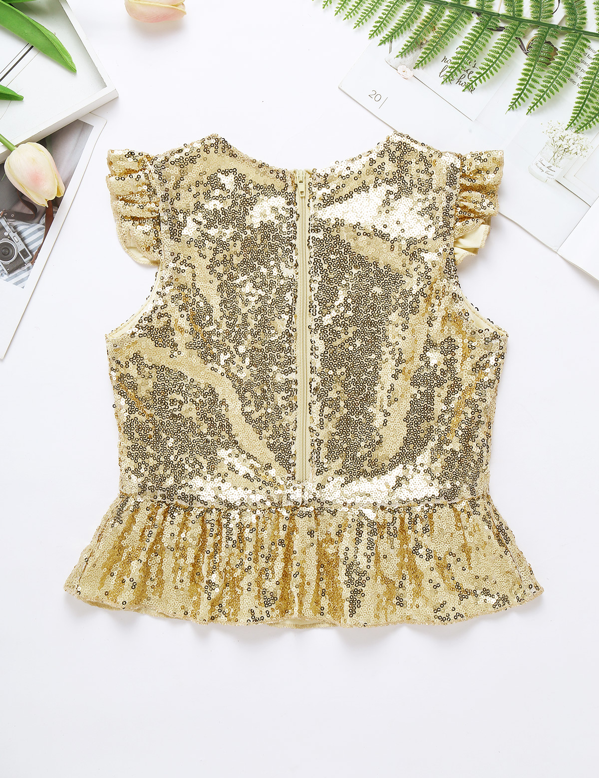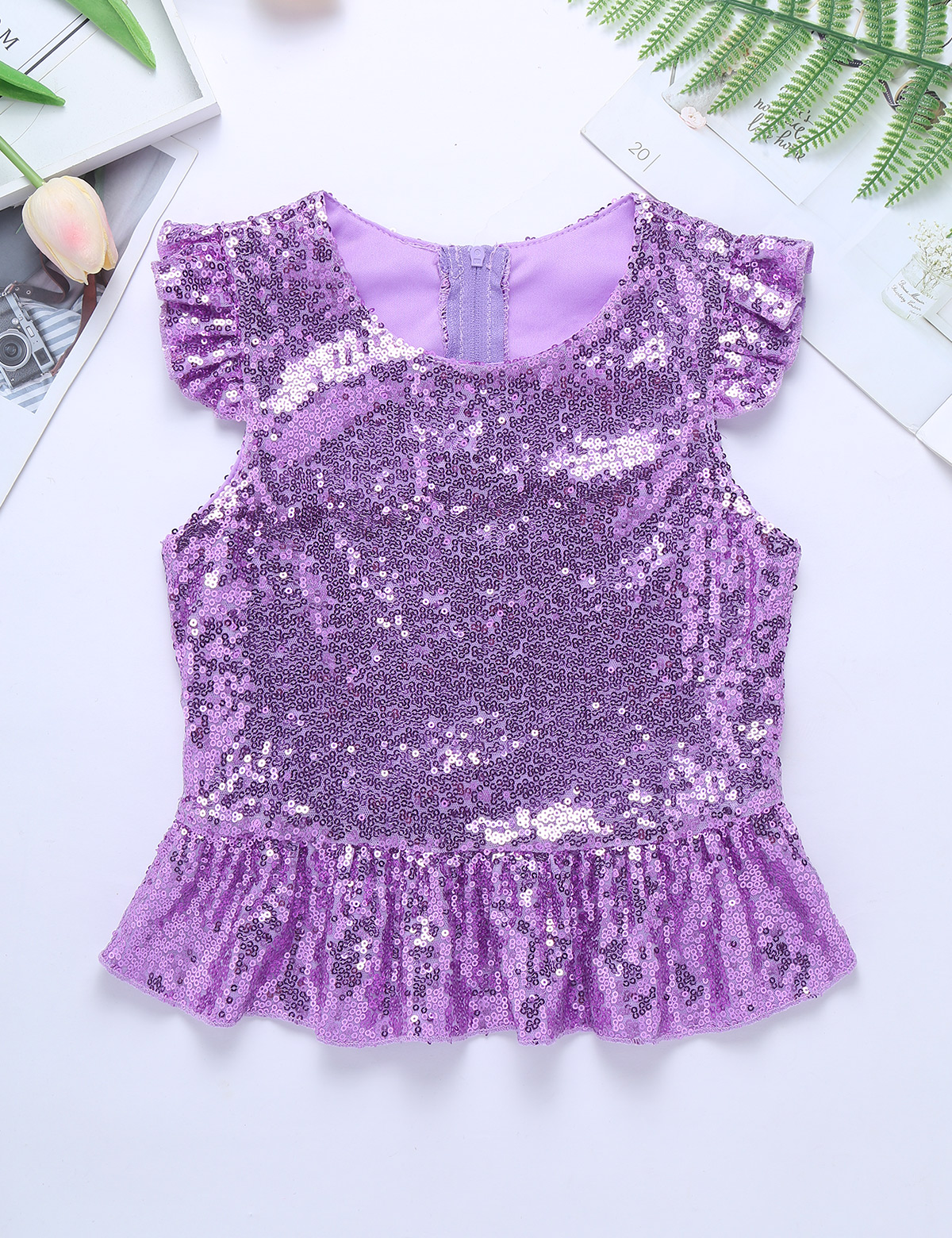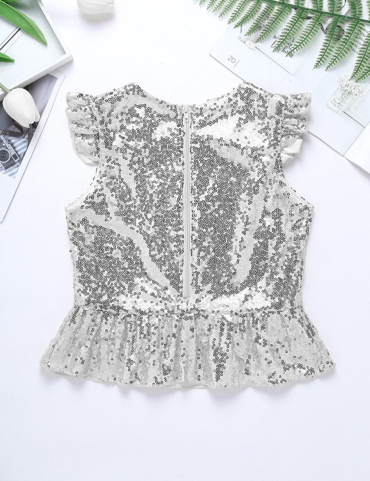 Застежка-молния сзади для удобного надевания. Полная подкладка для удобного ношения. Блестящий Топ для вашей девочки.