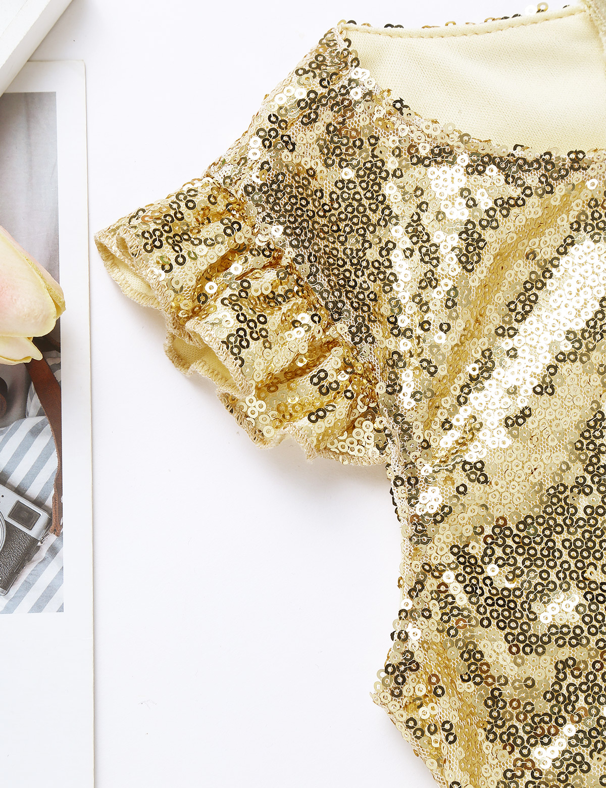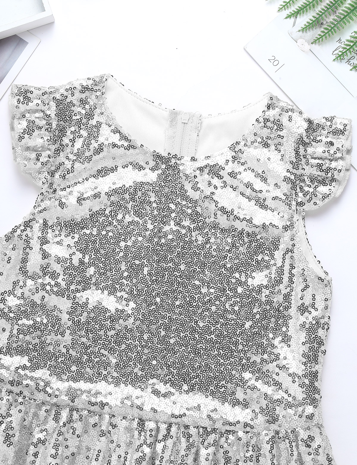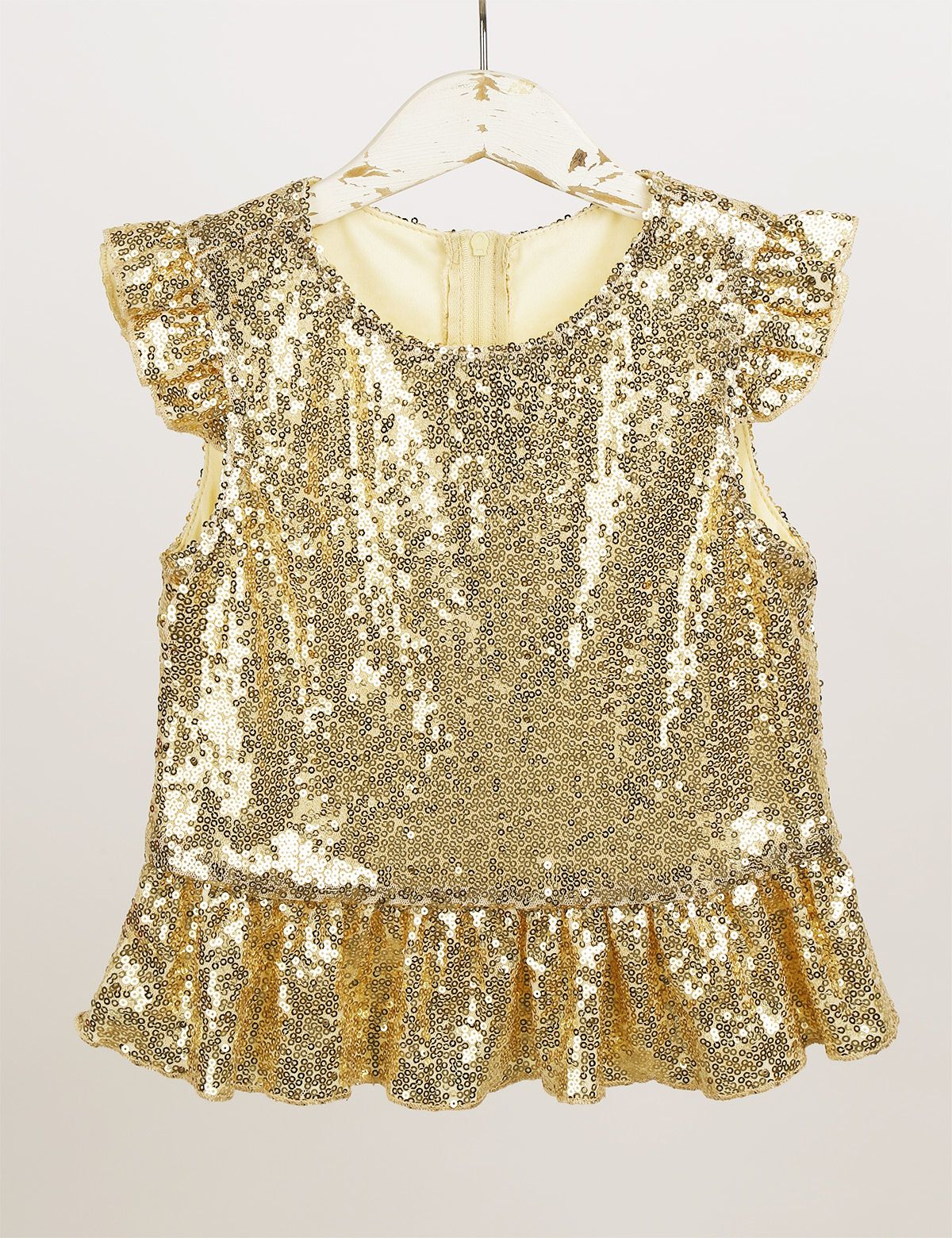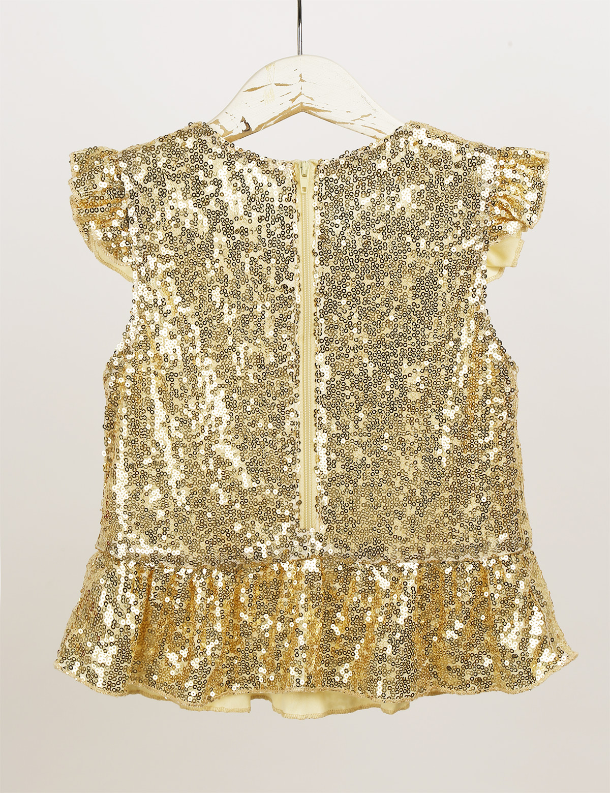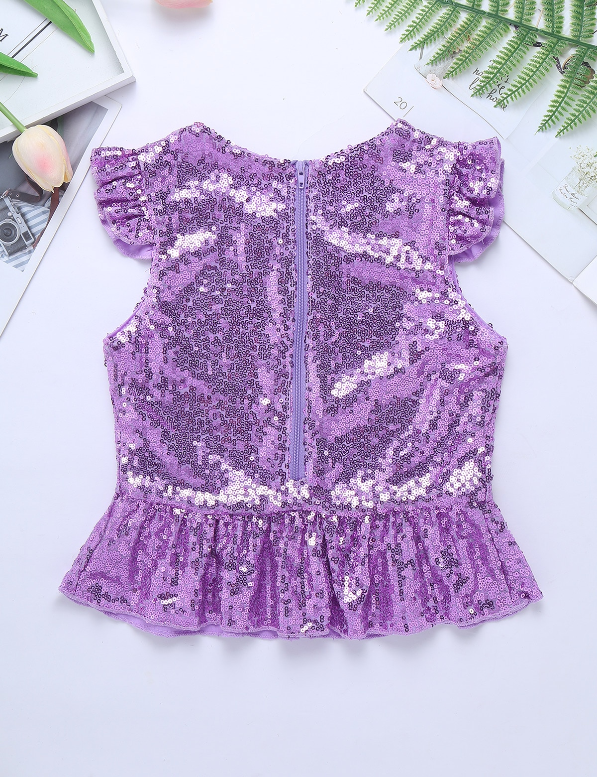 Застежка-молния сзади для удобного надевания. Полная подкладка для удобного ношения. Блестящий Топ для вашей девочки.