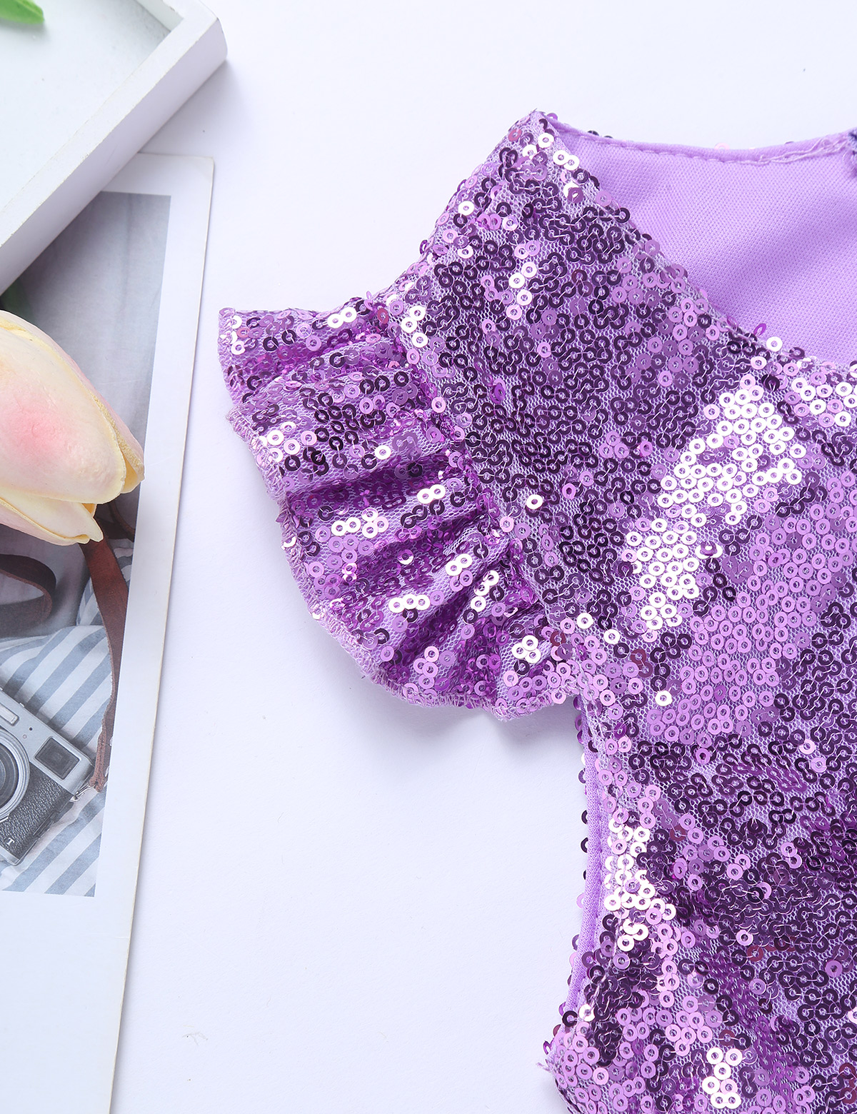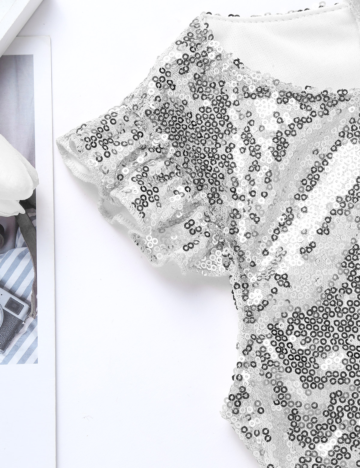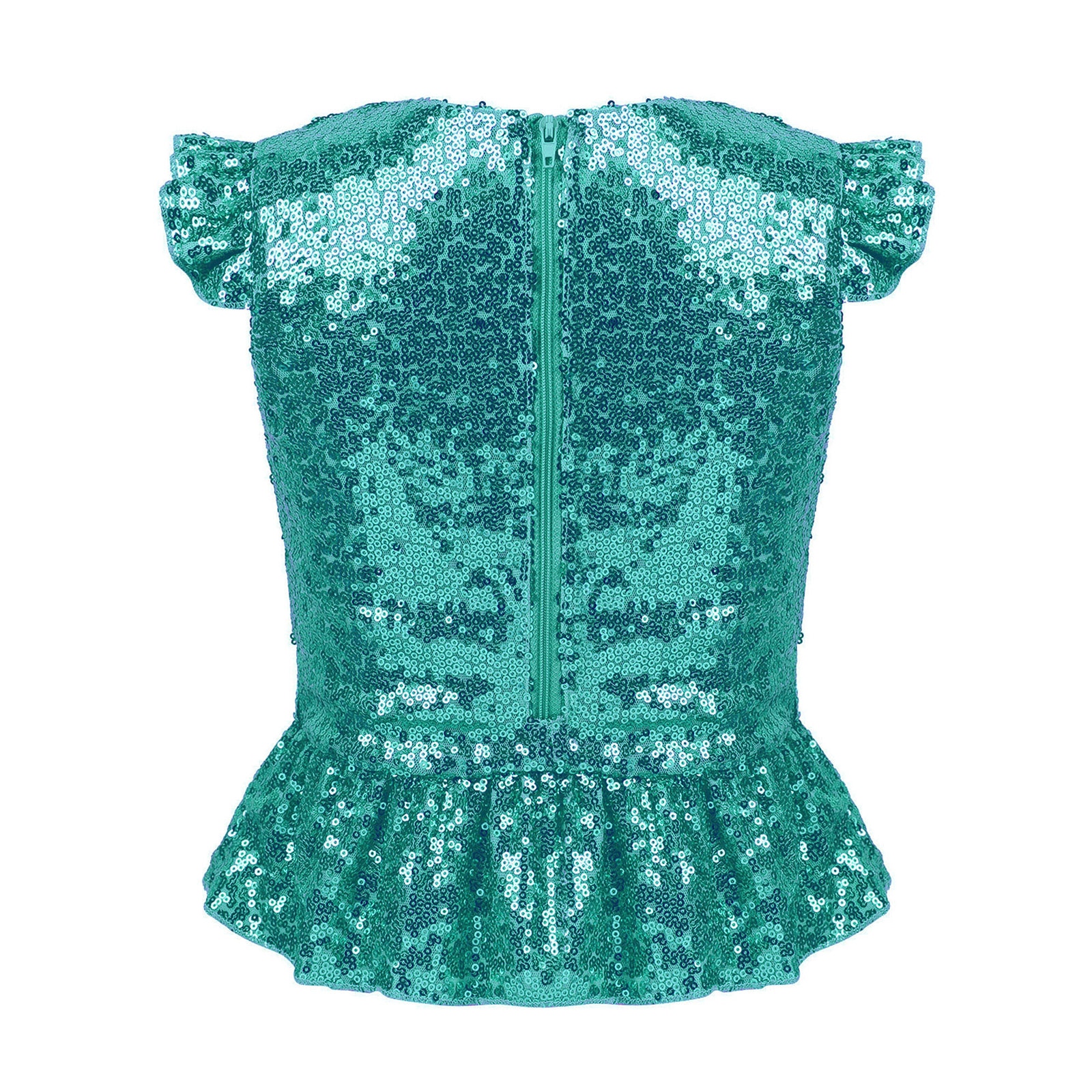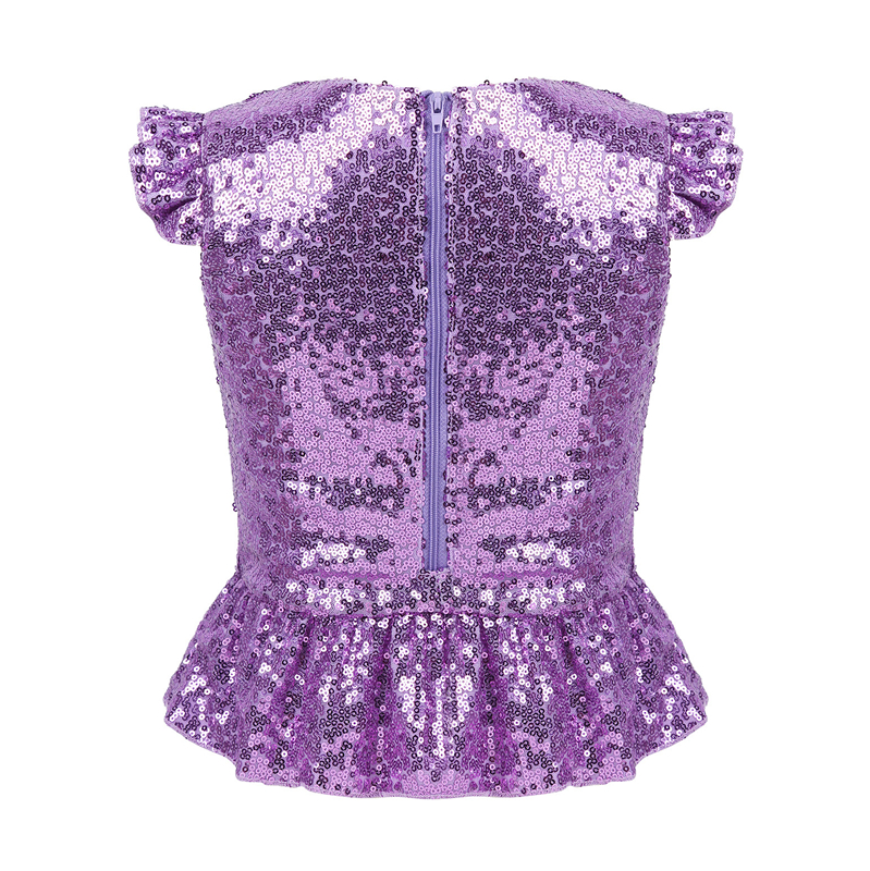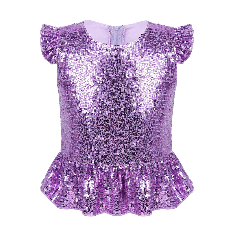 Детский Костюм Русалки для девочек, блестящие футболки с короткими рукавами с рюшами и блестками, топы для танцев, выступлений, карнавала, дня рождения