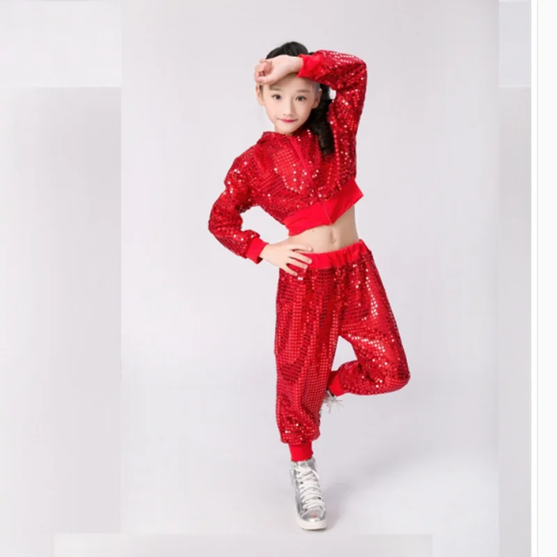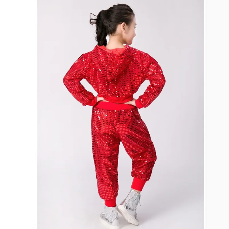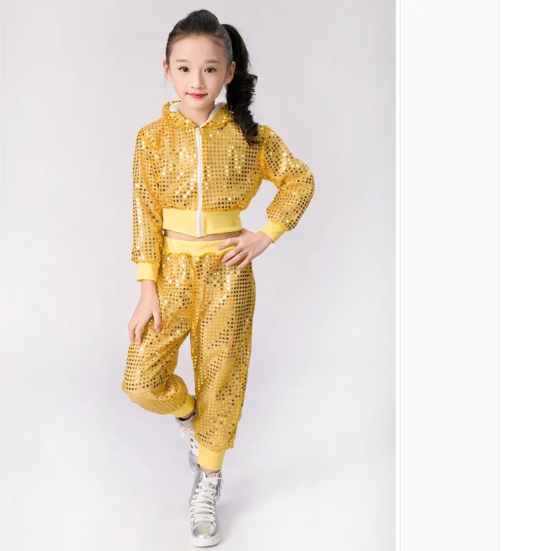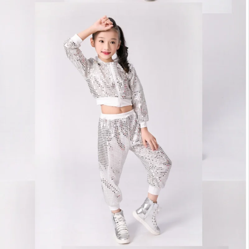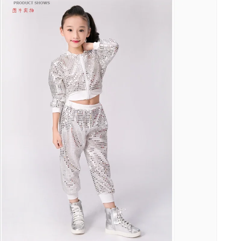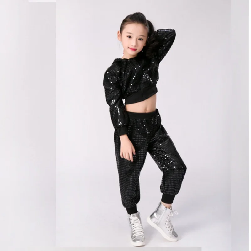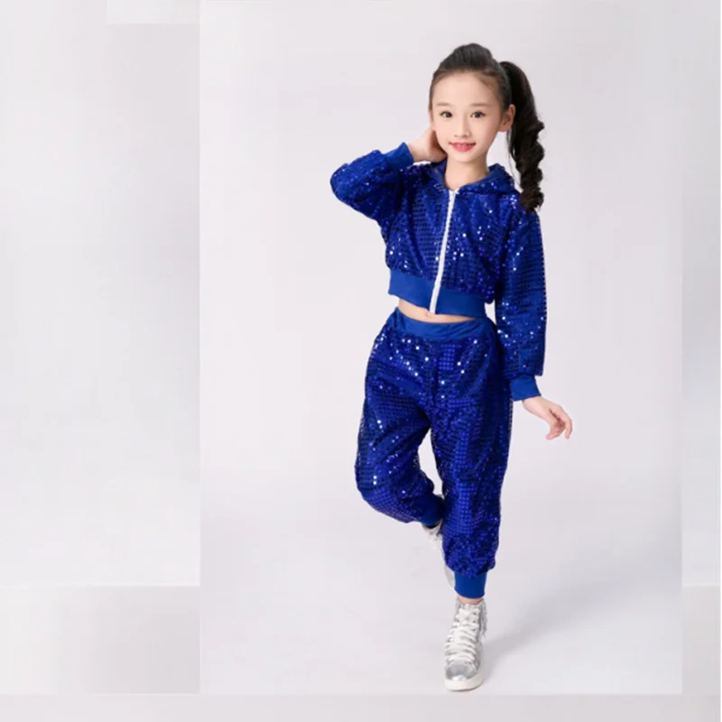 Детские танцевальные костюмы в стиле хип-хоп для девочек и мальчиков, современные костюмы для джазовых танцев, Бальные вечерние худи для танцев с блестками + штаны