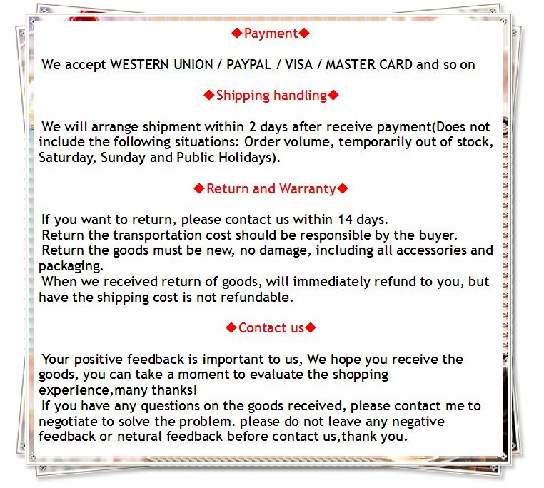 2. Реальный цвет может немного отличаться от изображений из-за разрешения экрана компьютера, яркости, контрастности и т. д. надеемся на понимание. Приятных покупок!