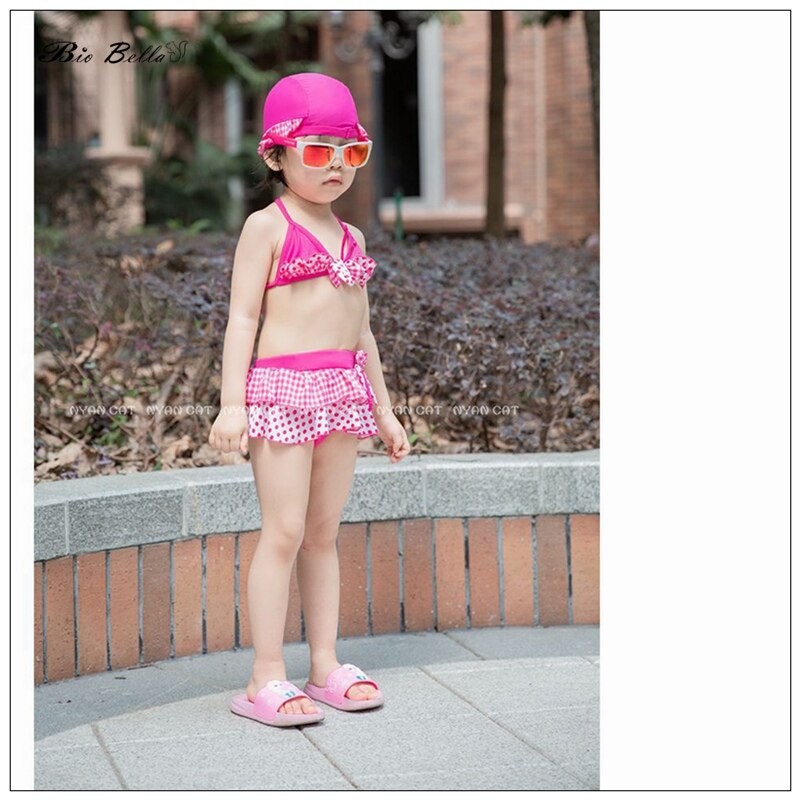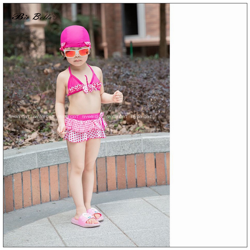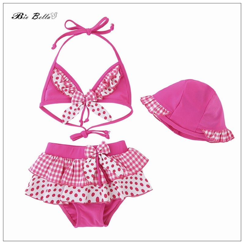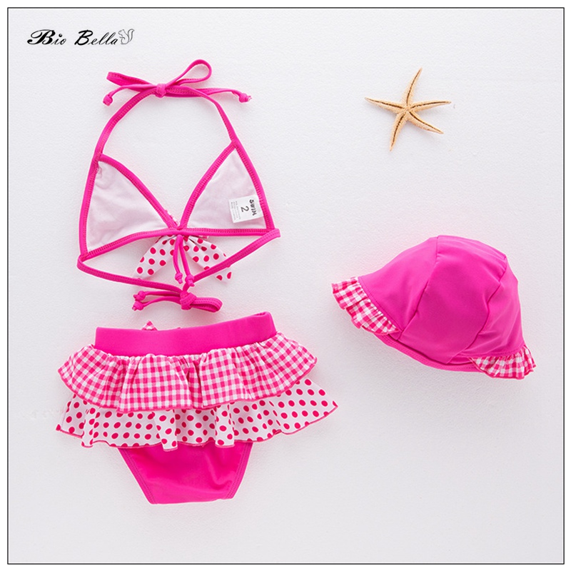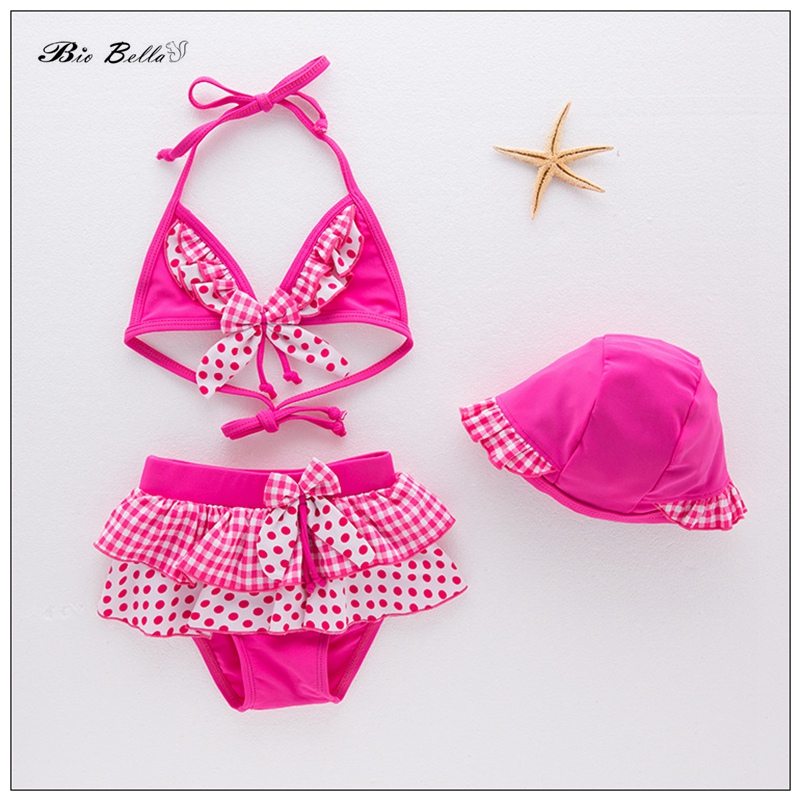 Детский купальник для девочек, модные детские бикини, топы + брюки + Кепка, детские летние купальники для водных игр, бикини