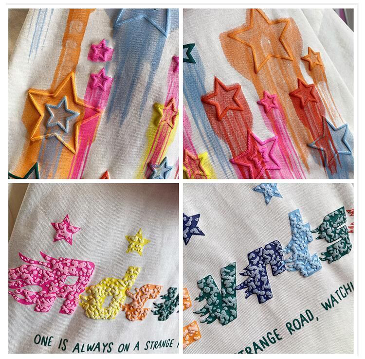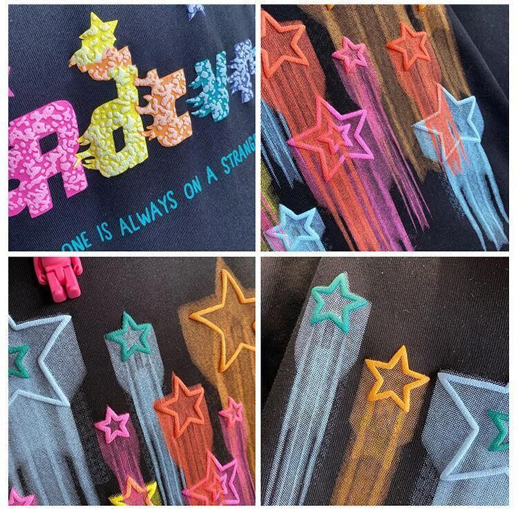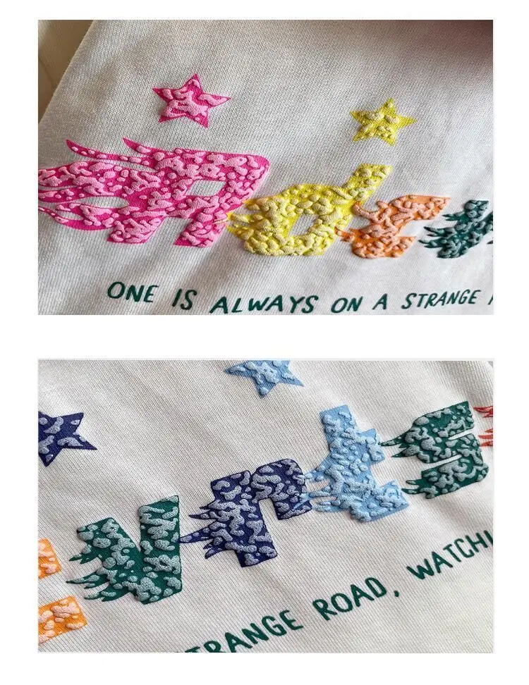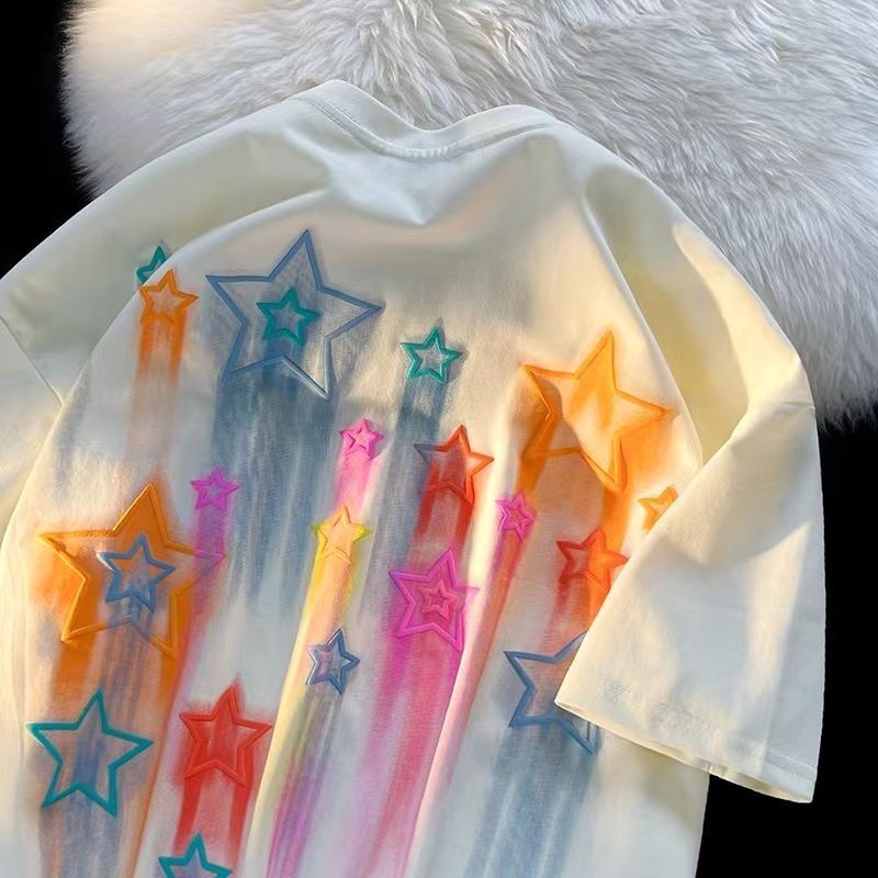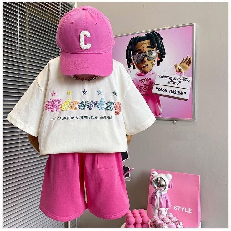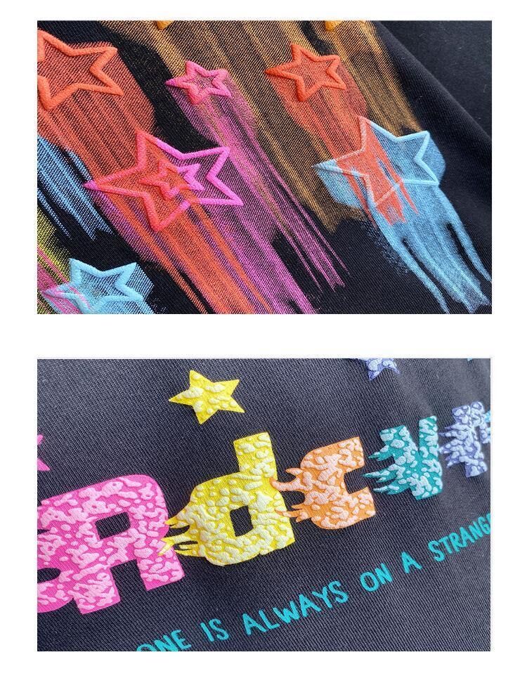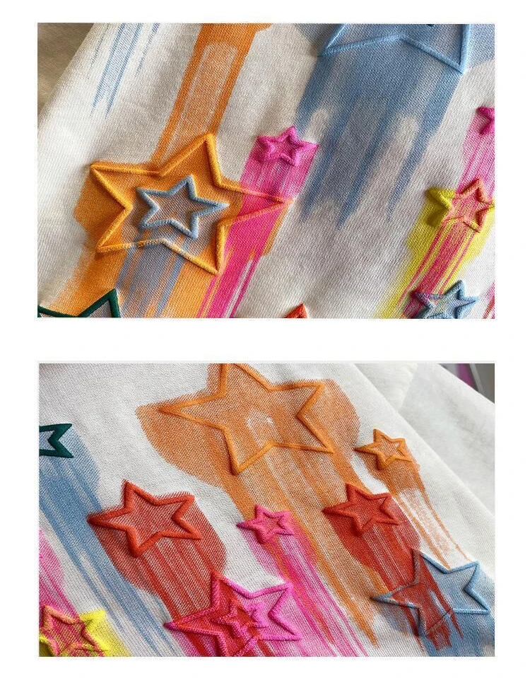 Детский летний комплект для мальчиков и девочек, красочная футболка с принтом пять звезд и коротким рукавом, Модный хлопковый Свободный Повседневный комплект из двух предметов