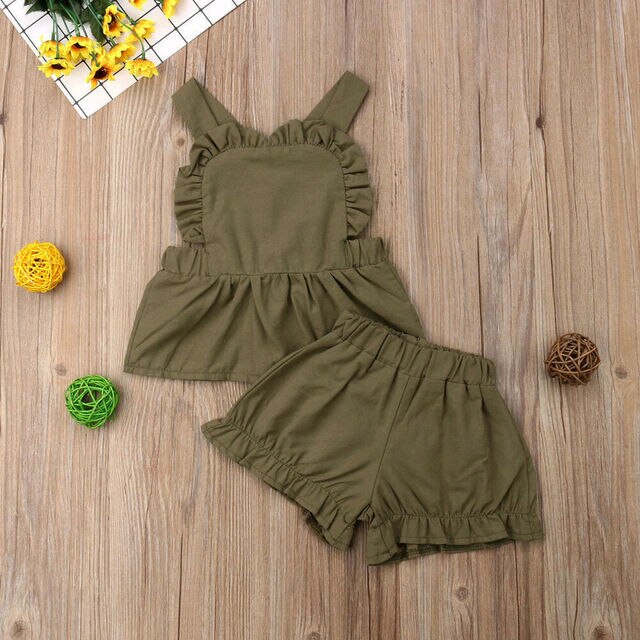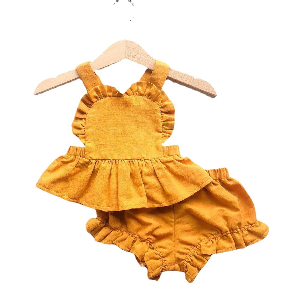 Детский летний комплект из двух предметов, топ с рукавами-фонариками из хлопка и конопли и популярные штаны, 2023