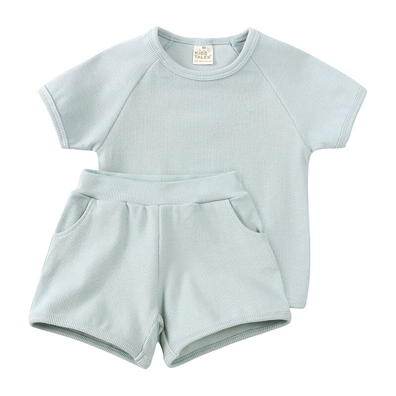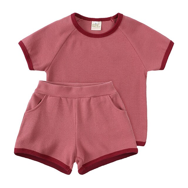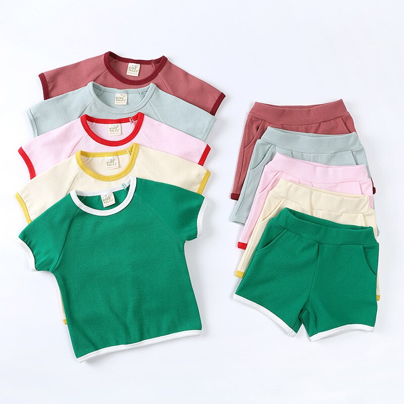 Детский летний комплект с коротким рукавом, детский однотонный комплект из двух предметов, повседневная оптовая продажа