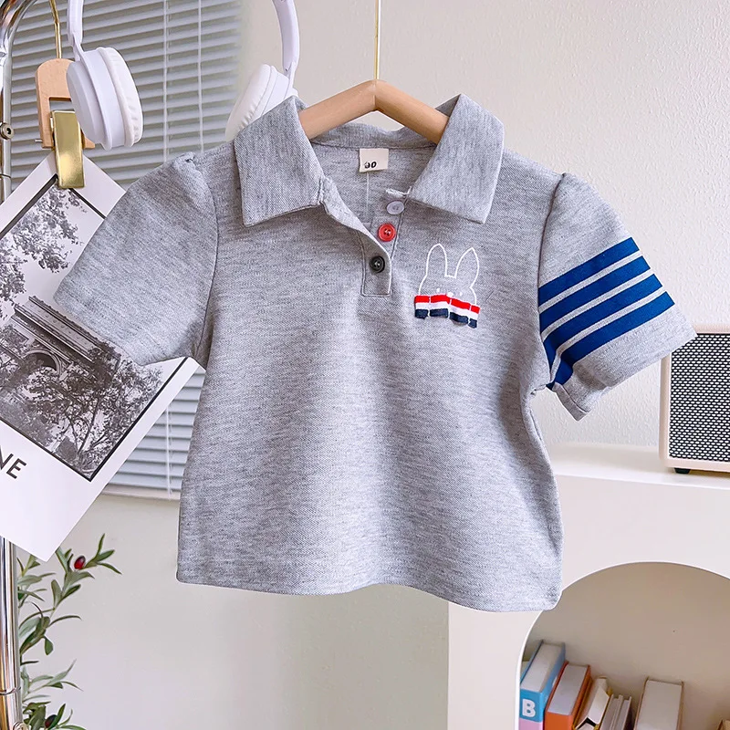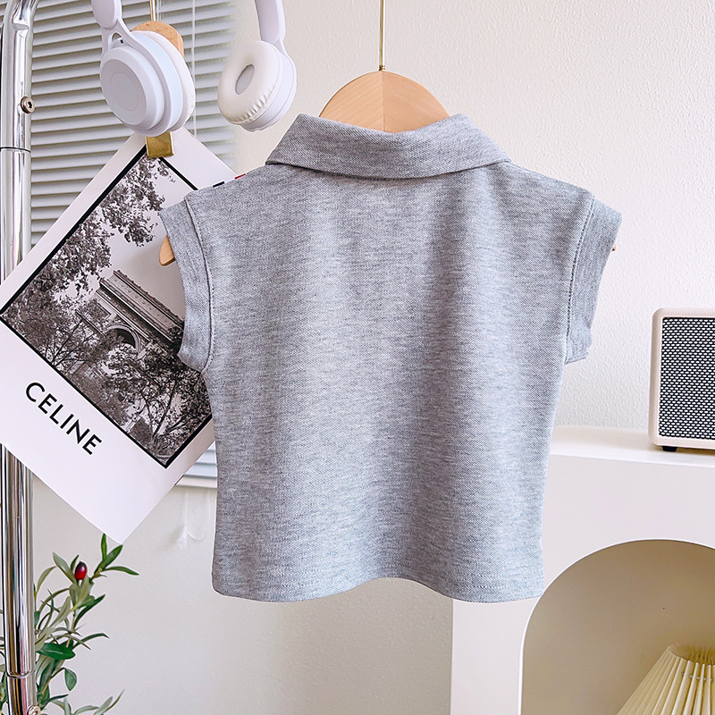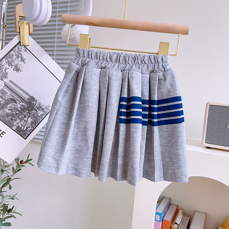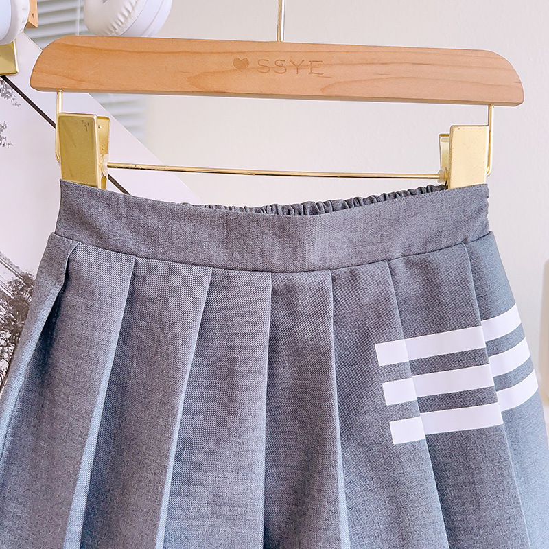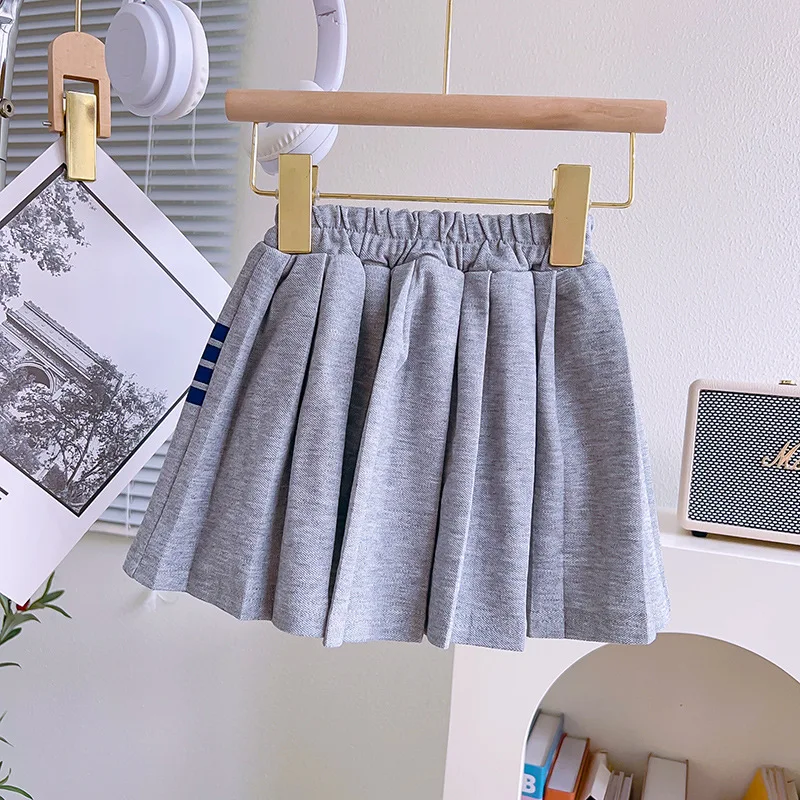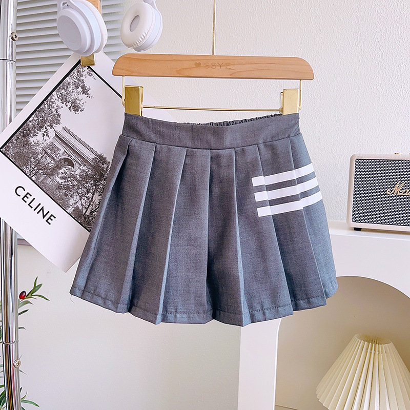 Детский летний костюм для девочек, однотонный костюм из двух предметов в английском студенческом стиле с отложным воротником и коротким рукавом + плиссированная юбка
