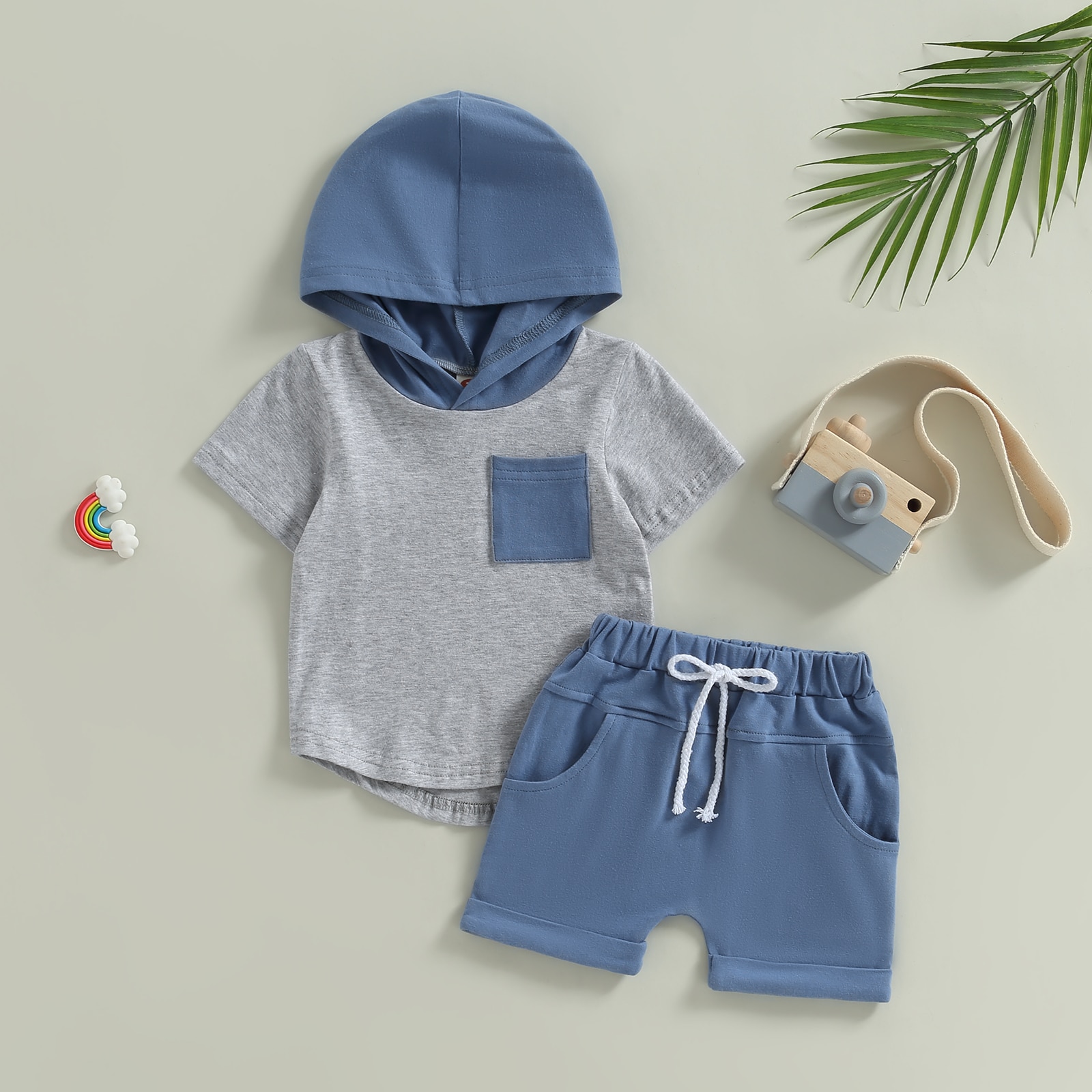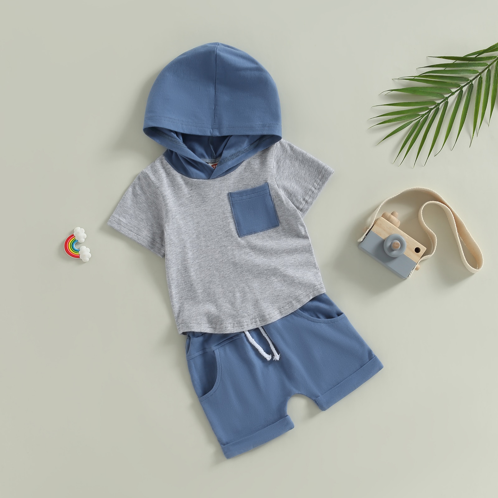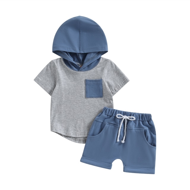 Детский летний костюм с капюшоном, футболка с коротким рукавом и шорты